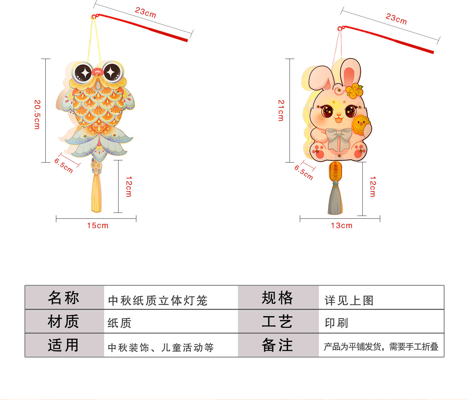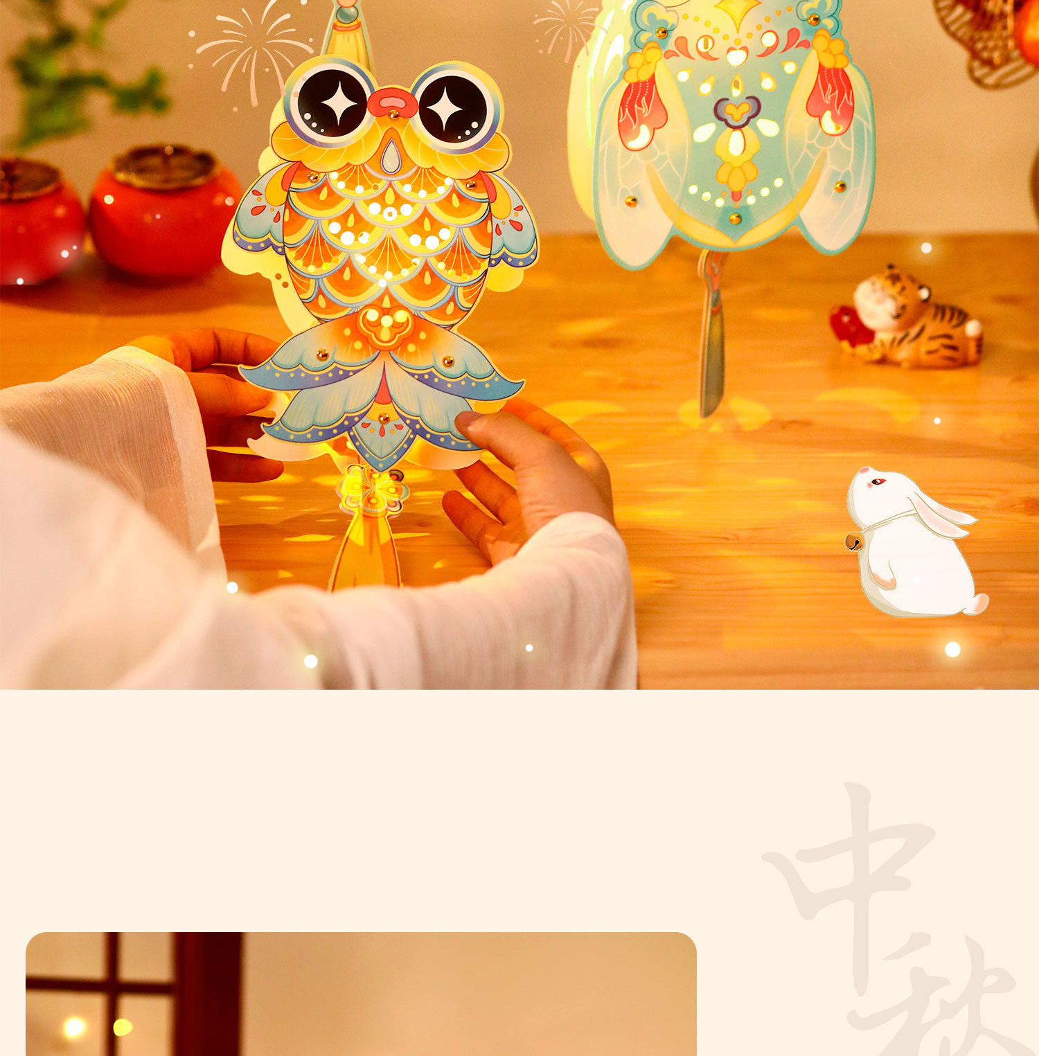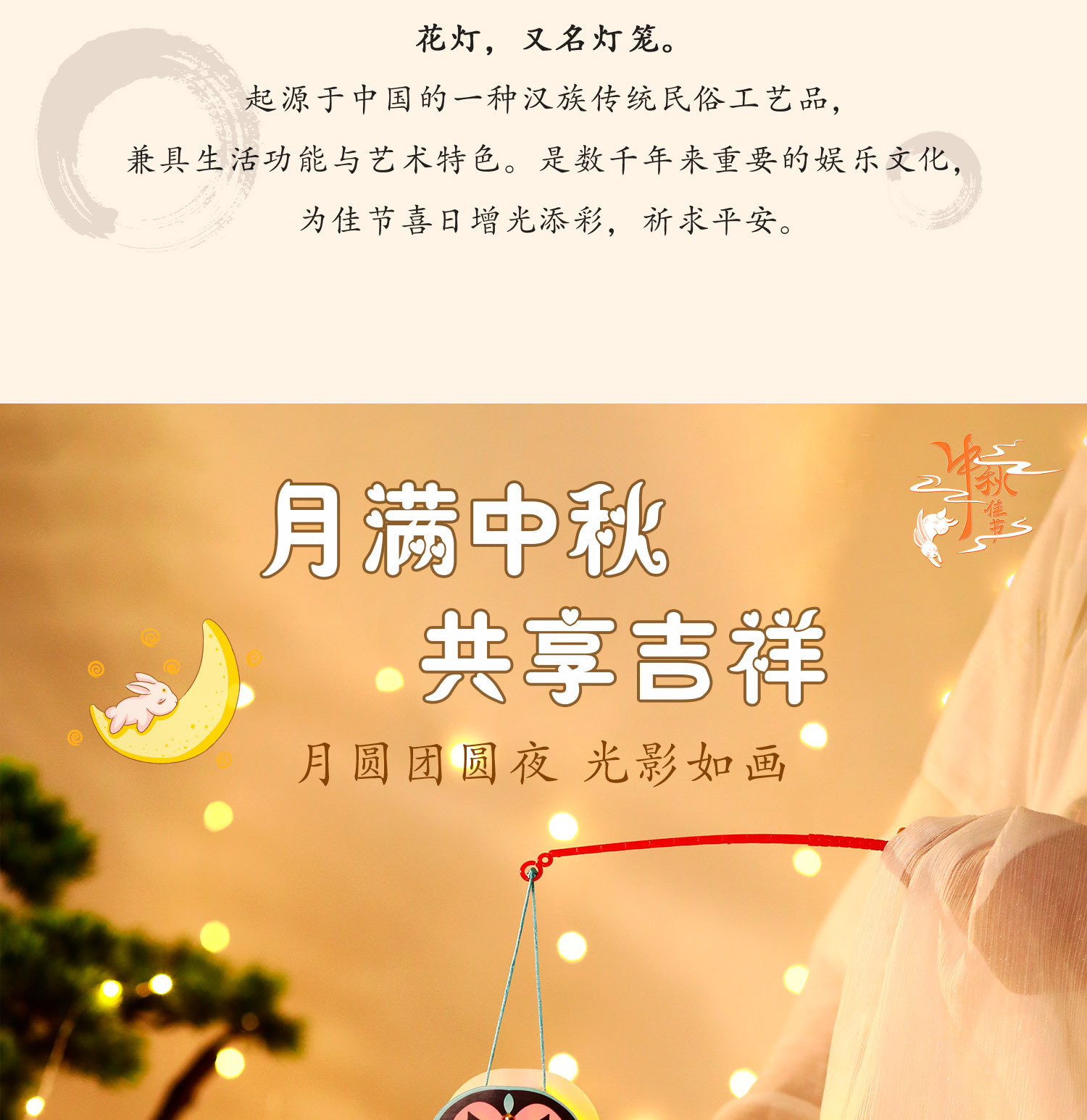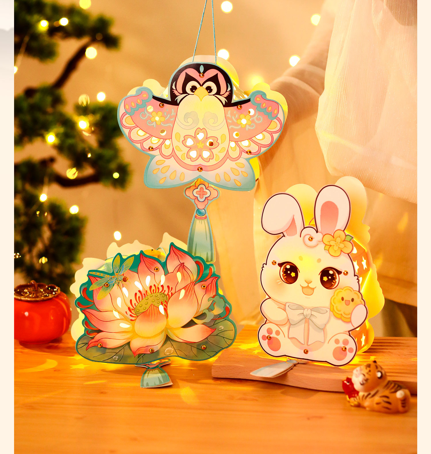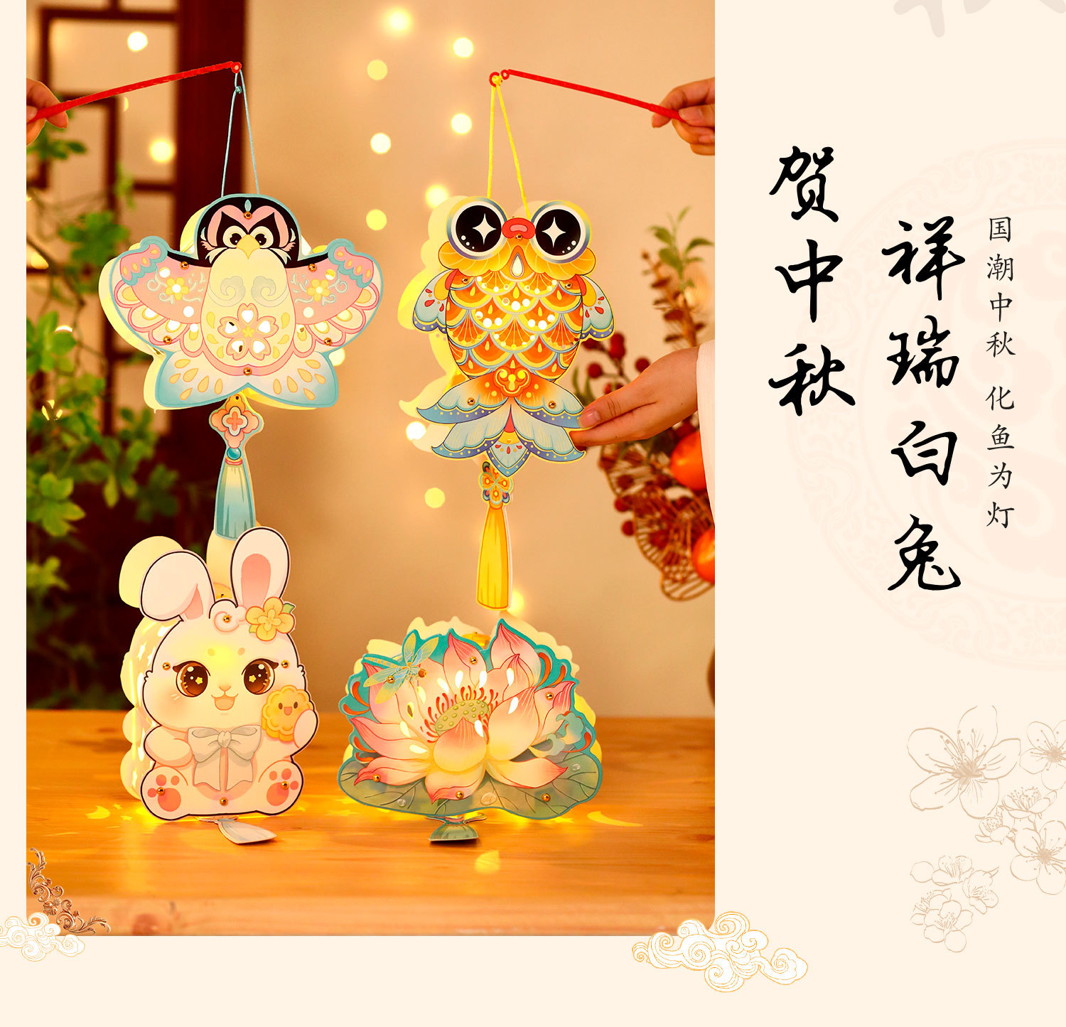 中秋节儿童手提灯笼发光古风花灯手工制作挂饰2024新款玉兔小花灯