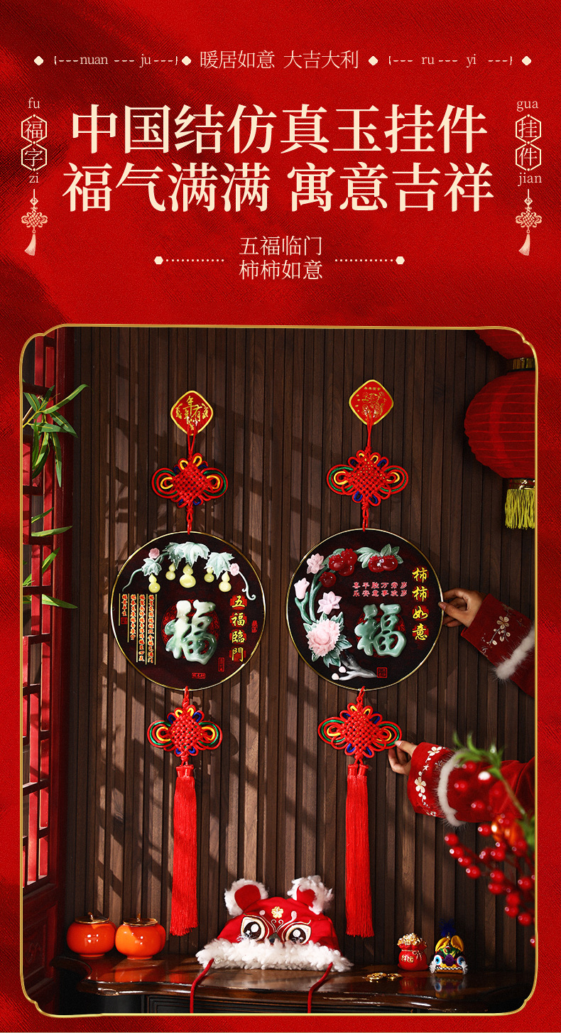 2024新款中国结福字挂件新年背景墙玄关挂饰客厅高档过年春节装饰