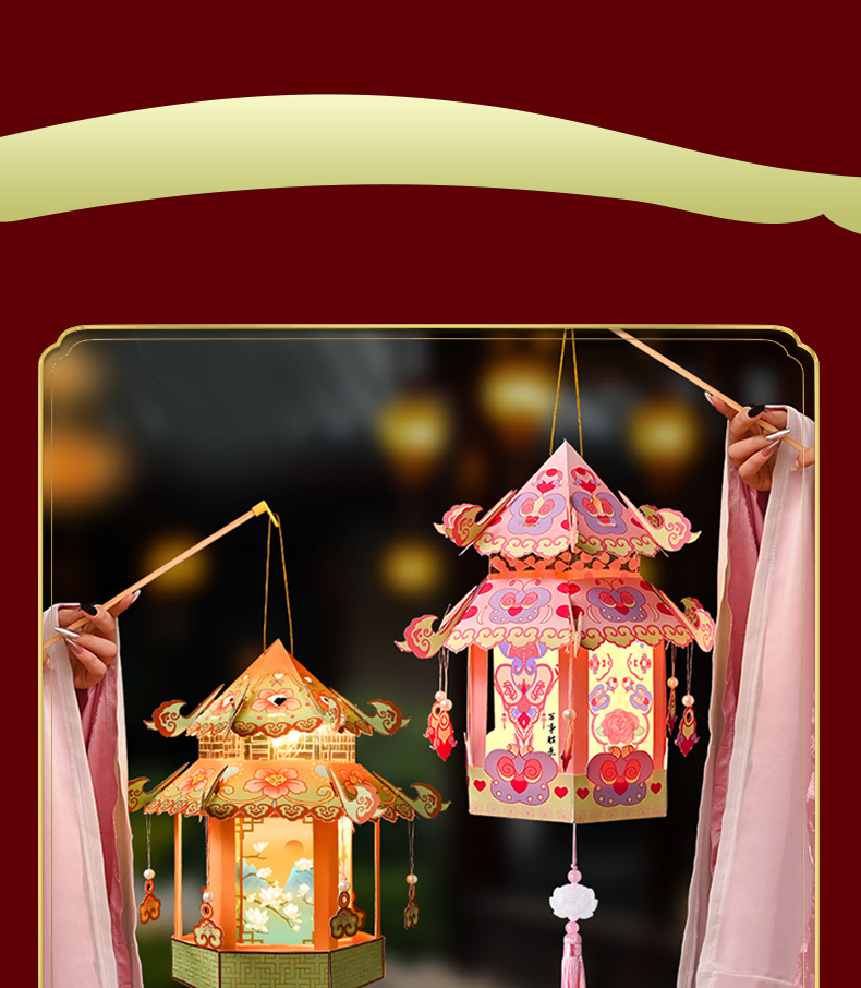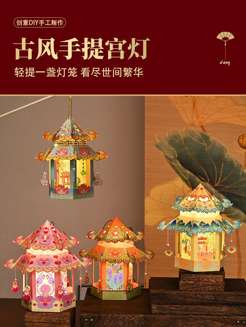 中秋节灯笼2024新款儿童手提发光玉兔花灯手工diy材料包兔子宫灯