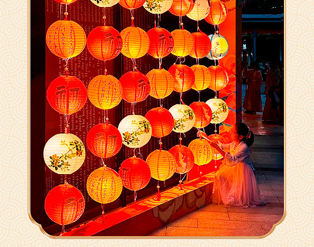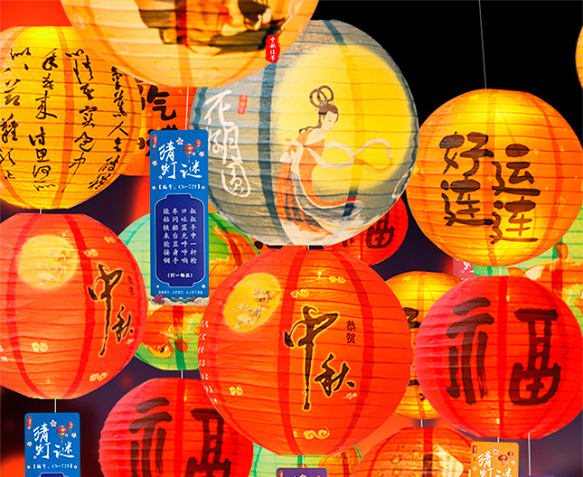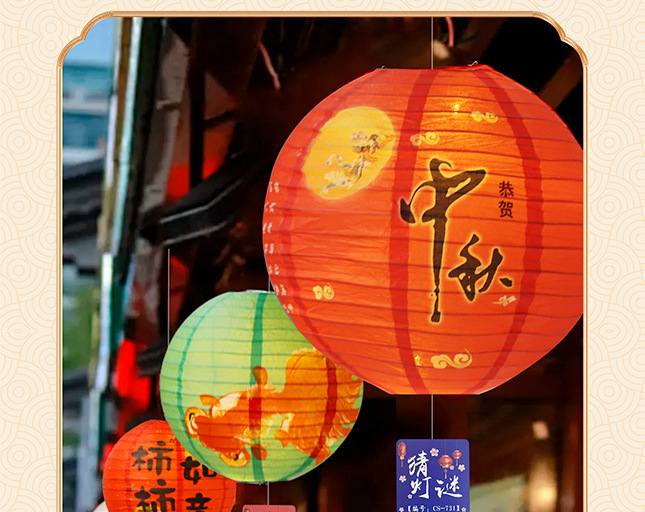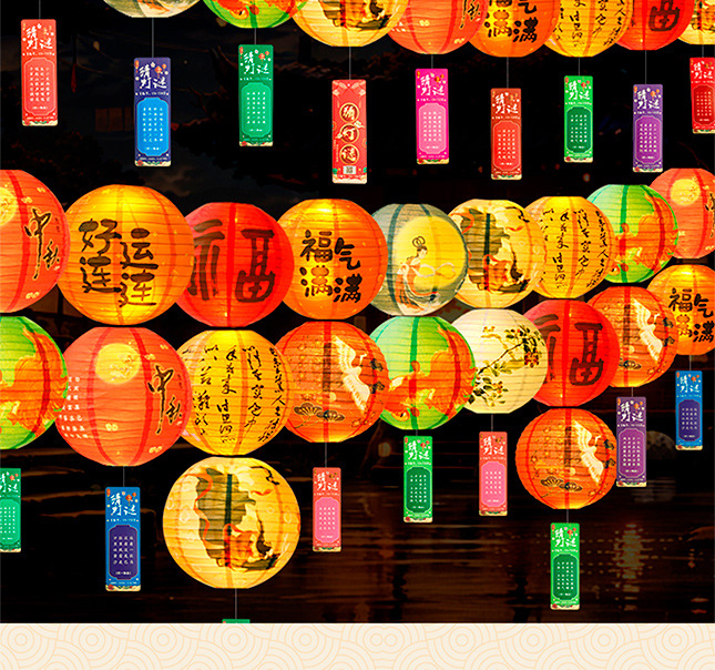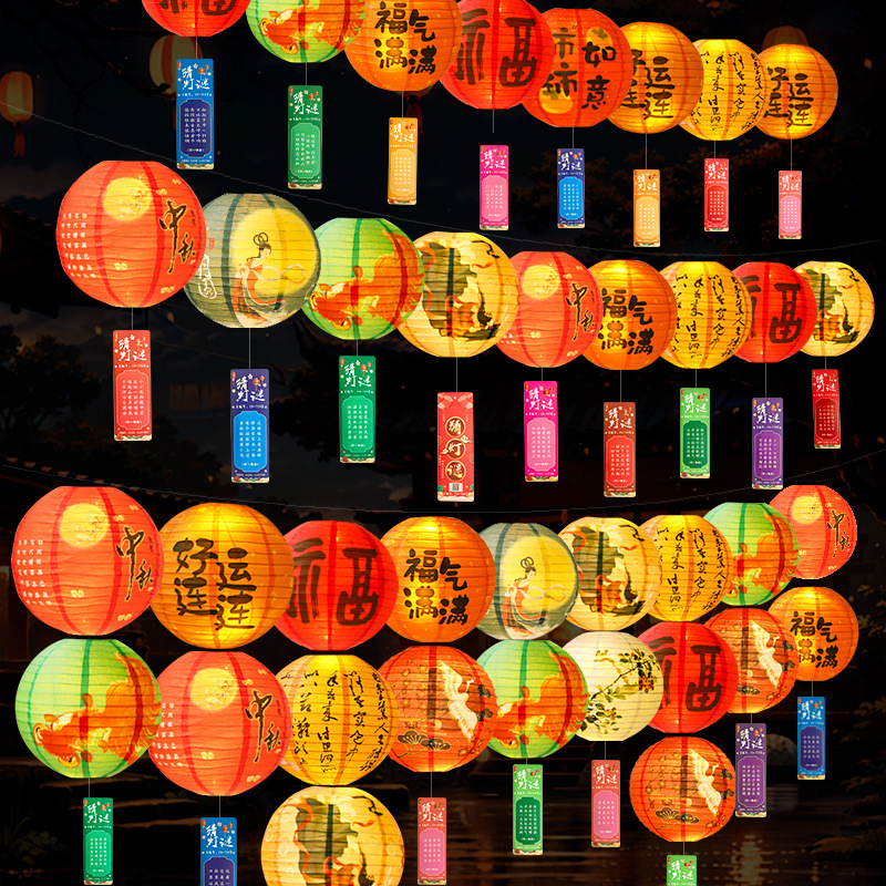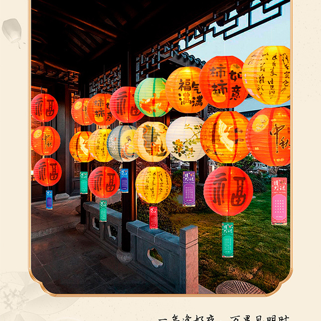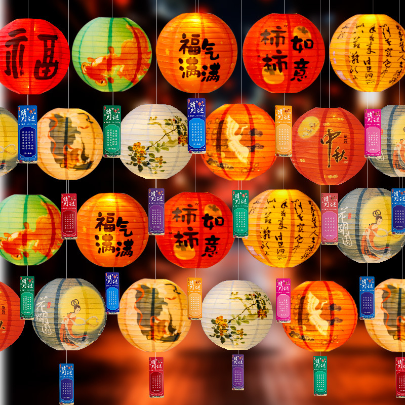 商场喜庆场景氛围挂饰古风折叠纸福字灯笼中秋节猜灯谜国风装饰品