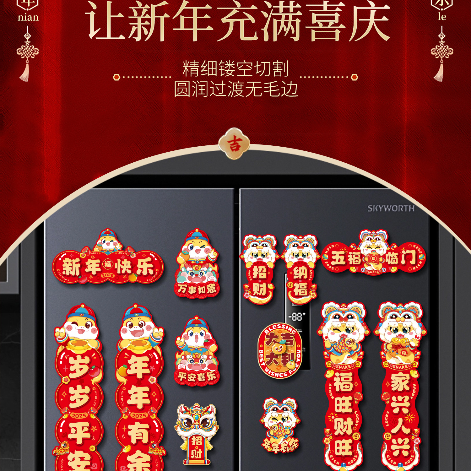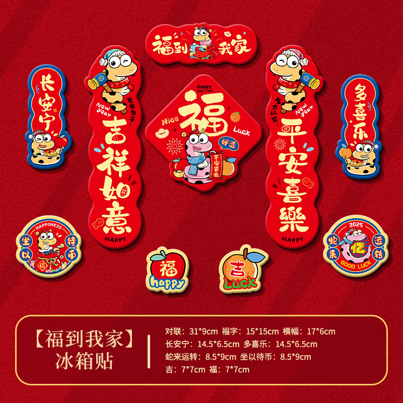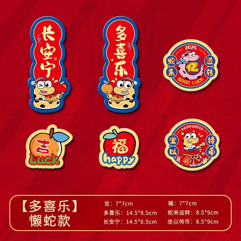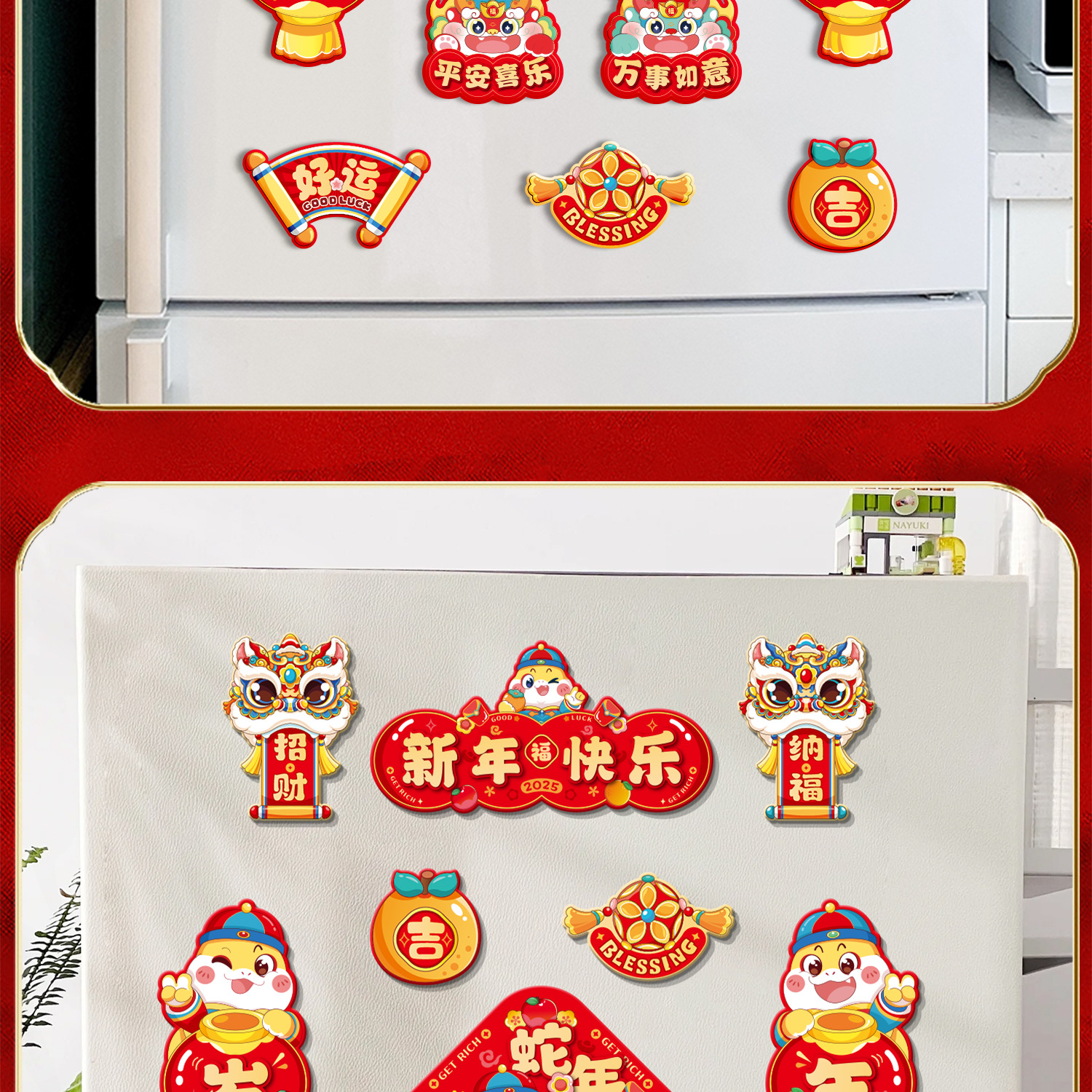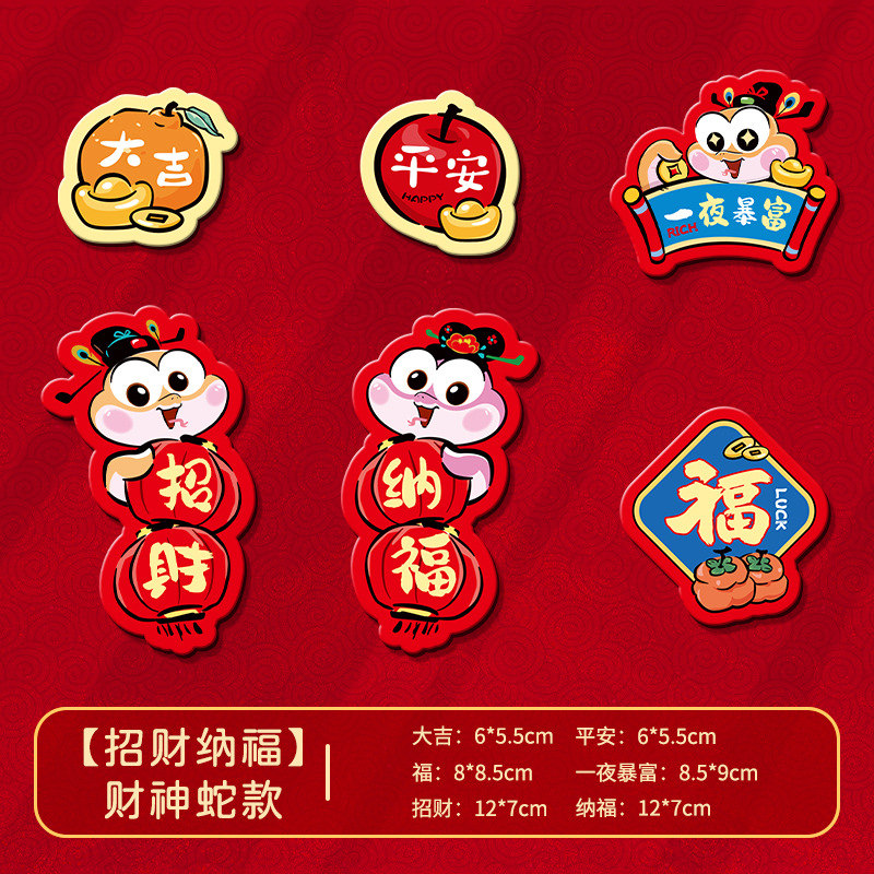 2025蛇年新款福字门贴新年装饰品春节过年创意卡通生肖磁吸冰箱贴