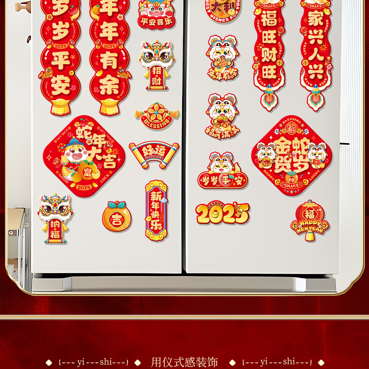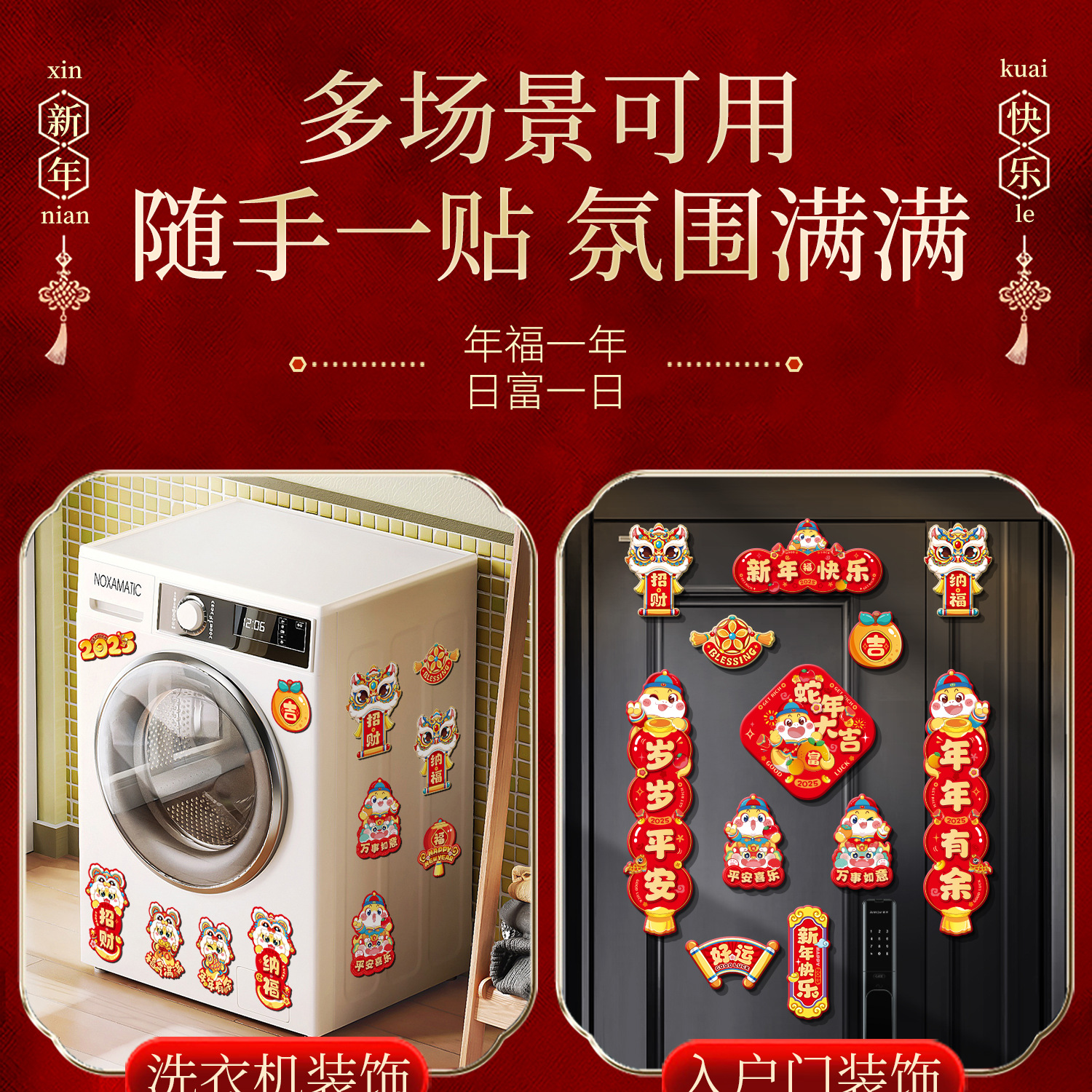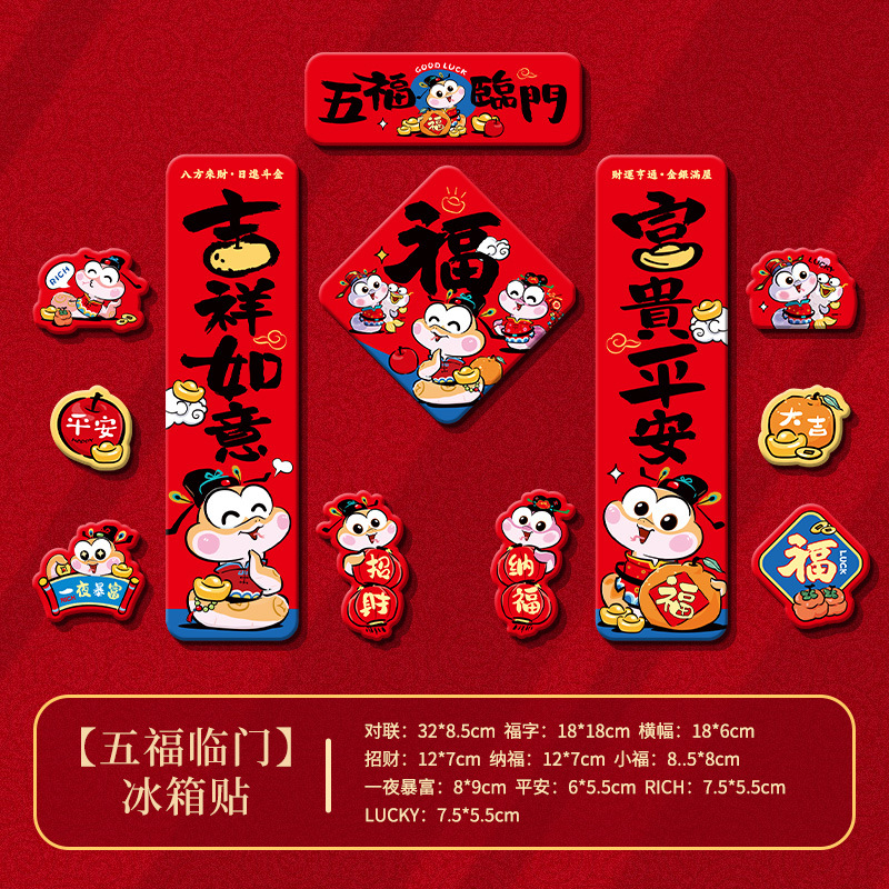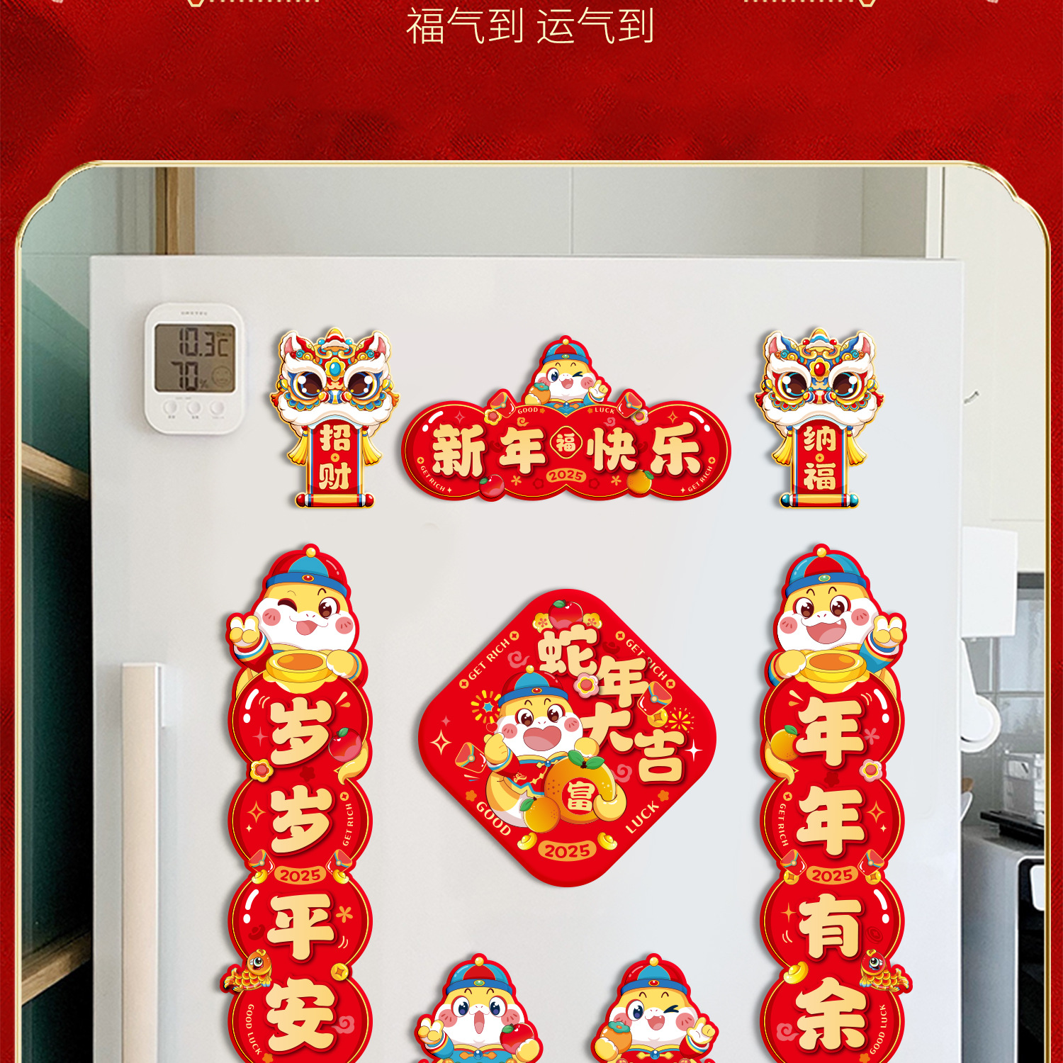 2025蛇年新款福字门贴新年装饰品春节过年创意卡通生肖磁吸冰箱贴