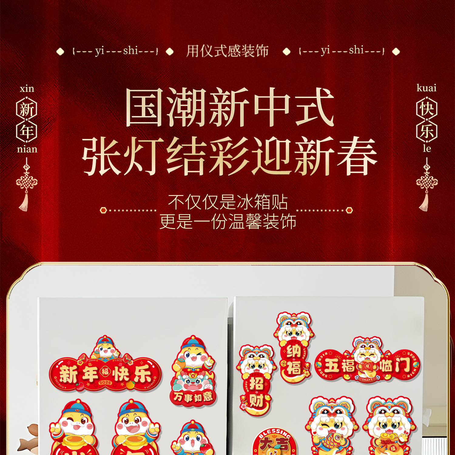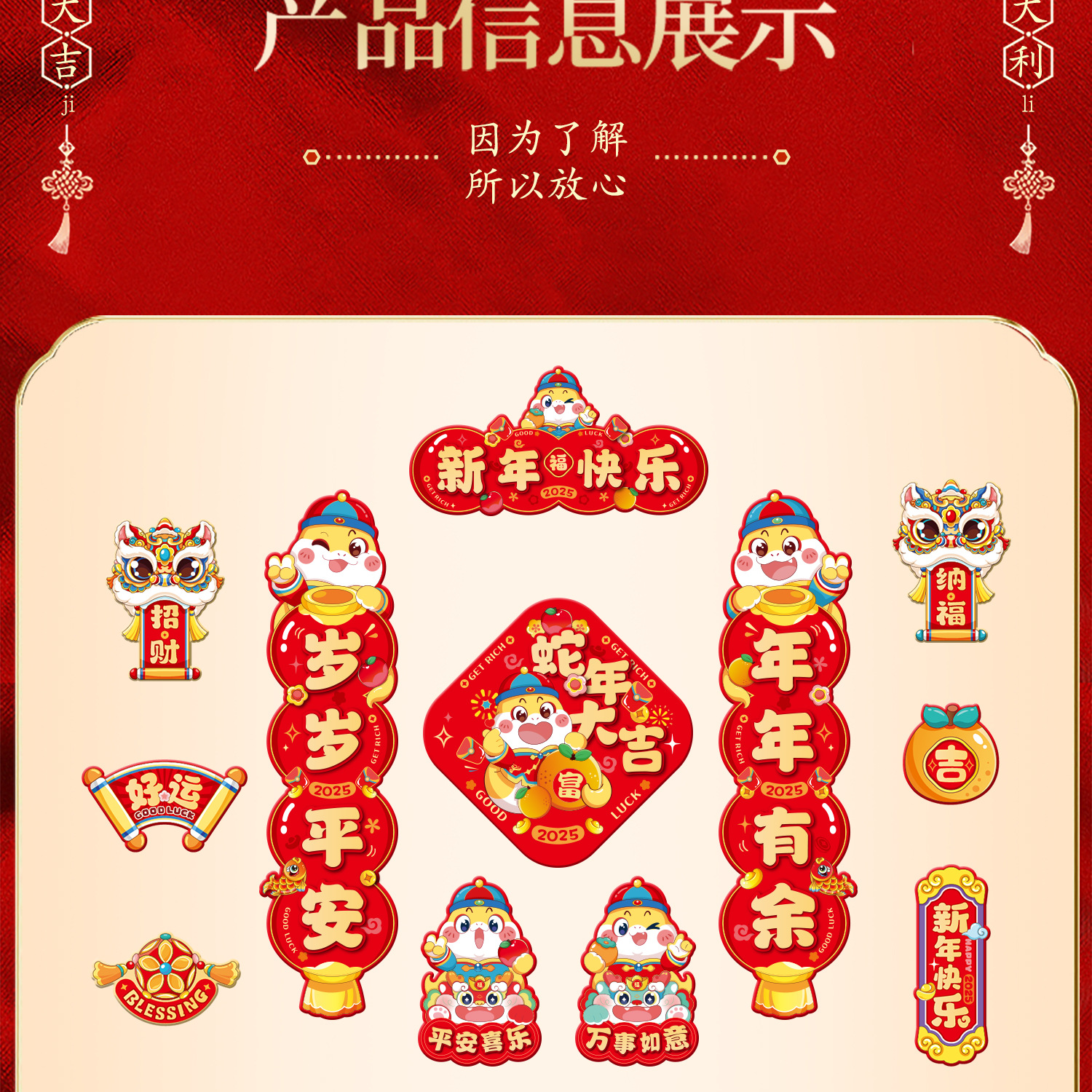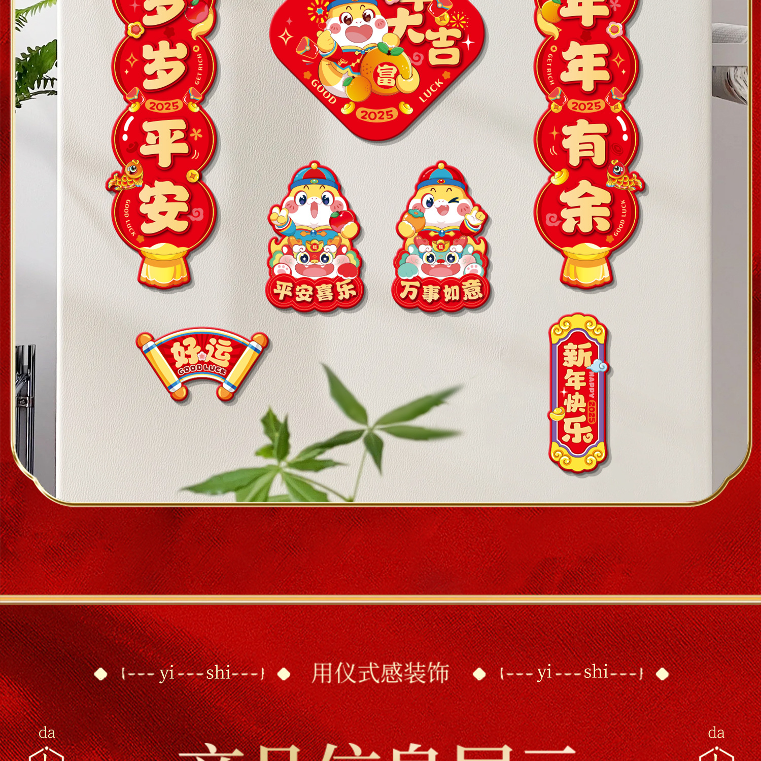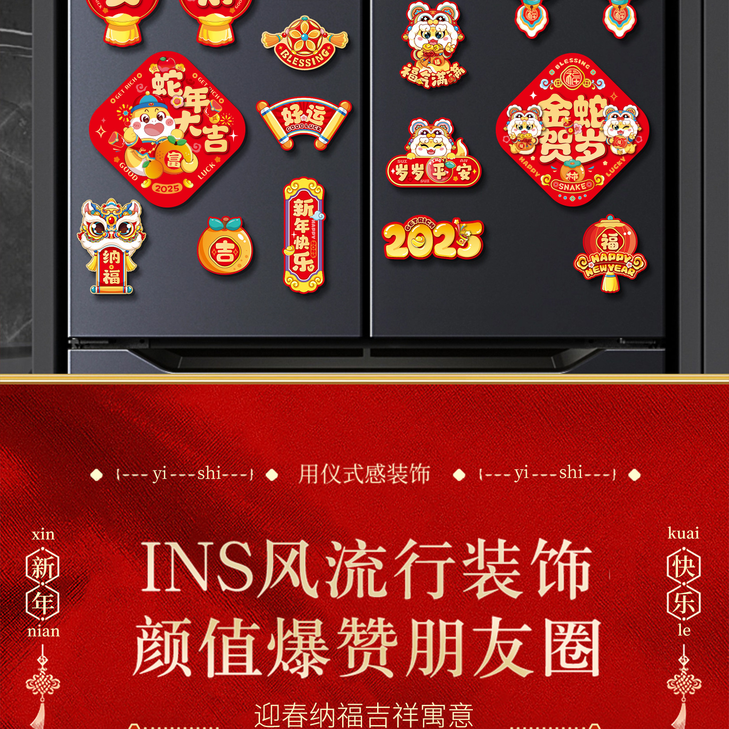 2025蛇年新款福字门贴新年装饰品春节过年创意卡通生肖磁吸冰箱贴