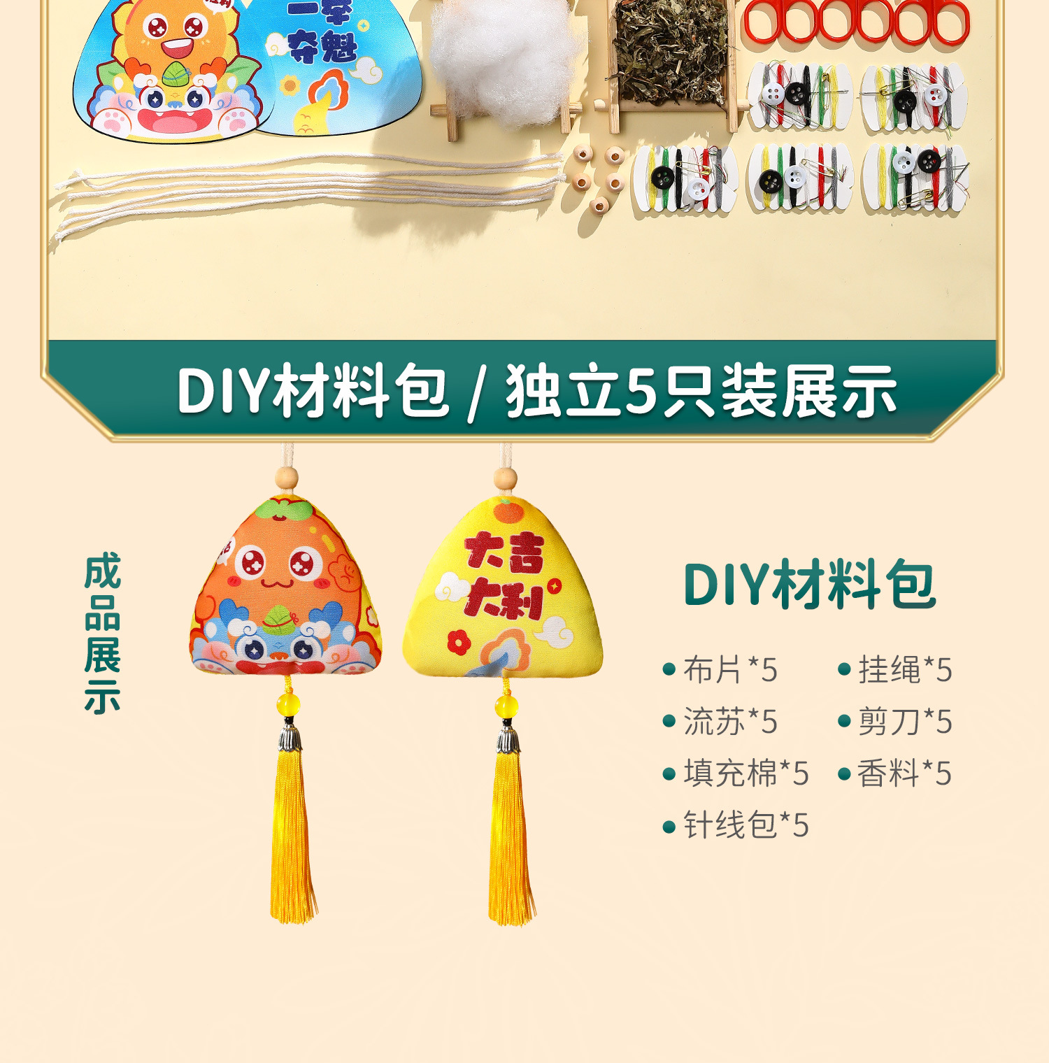 端午节粽子挂件礼品手工diy材料包礼物儿童艾草驱蚊驱蚊香包香囊