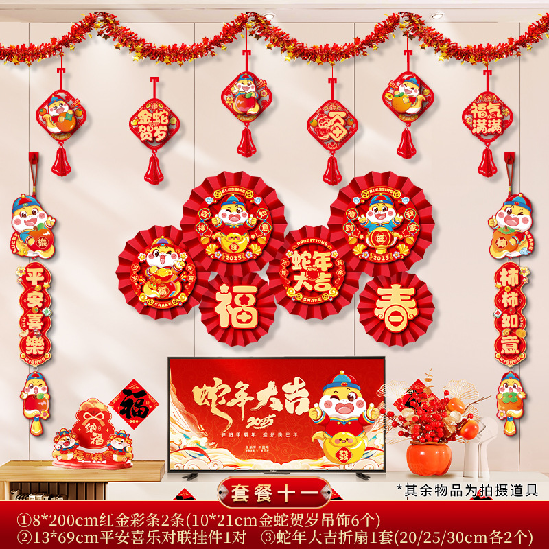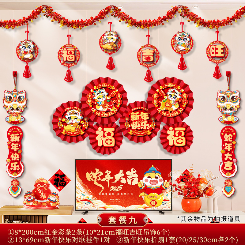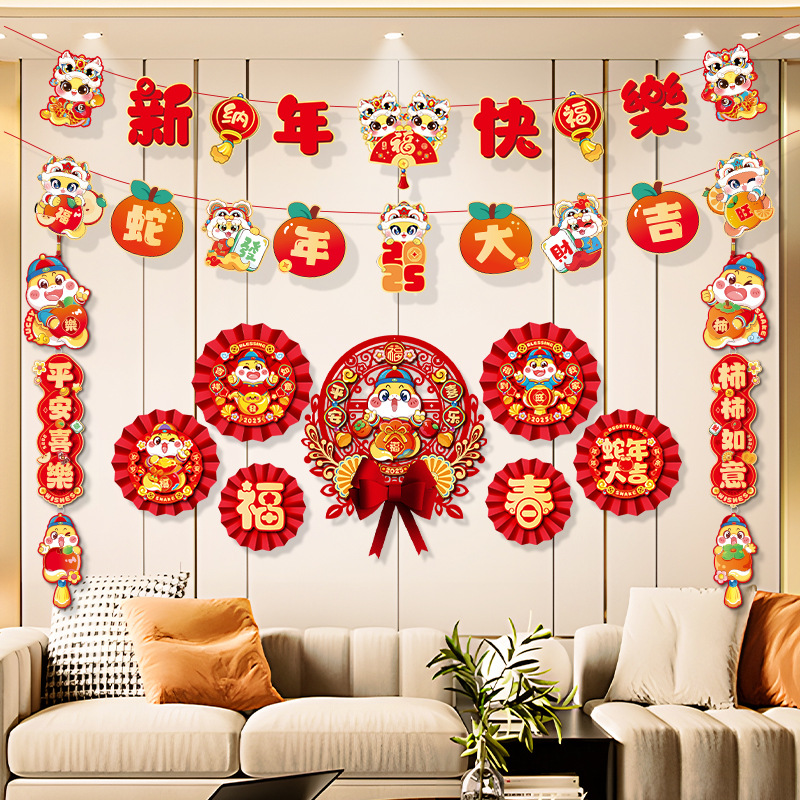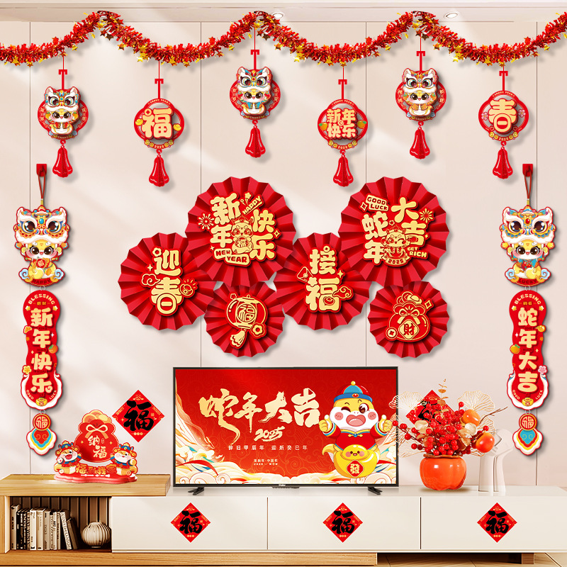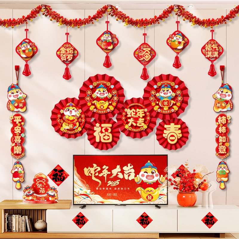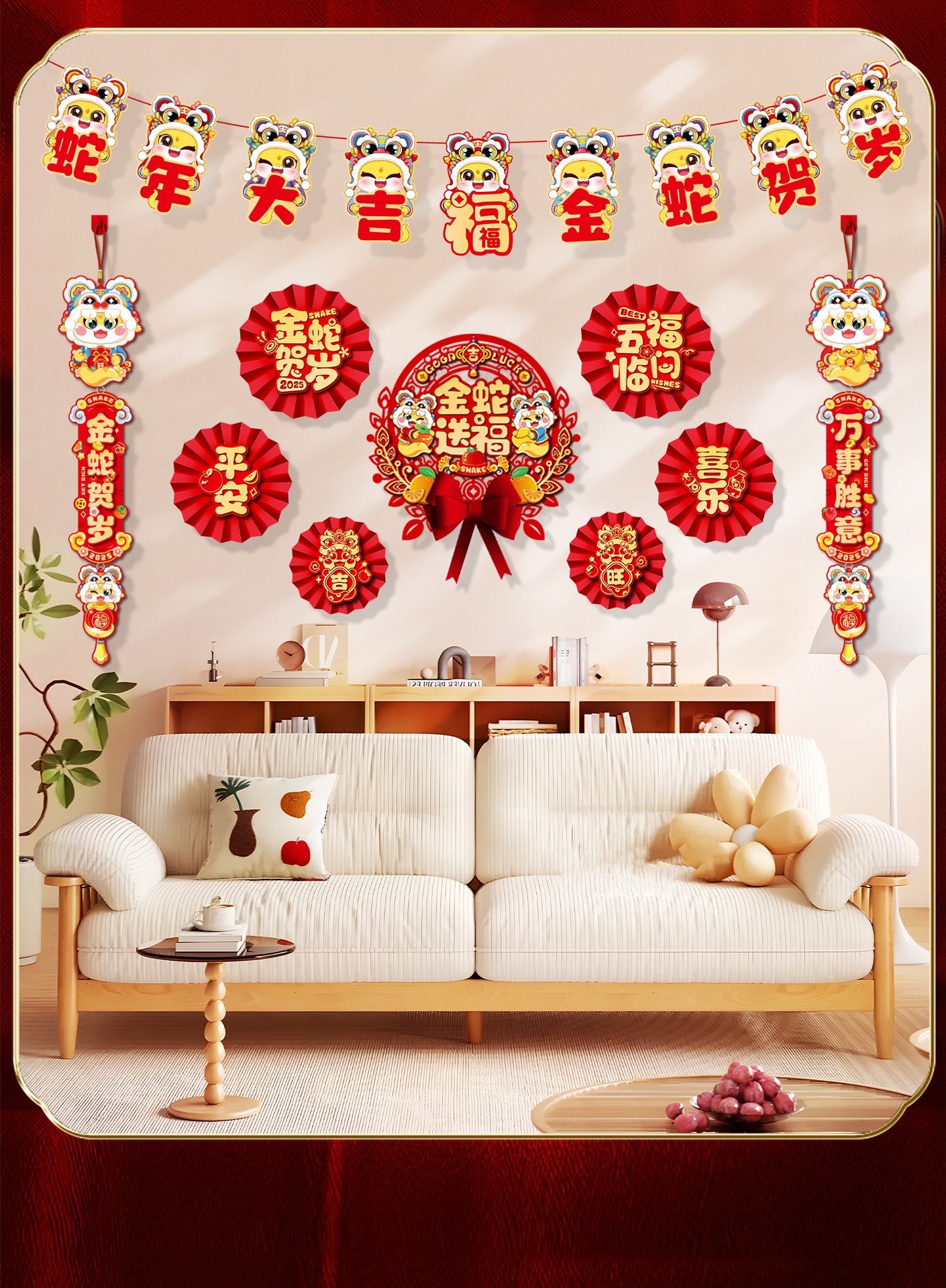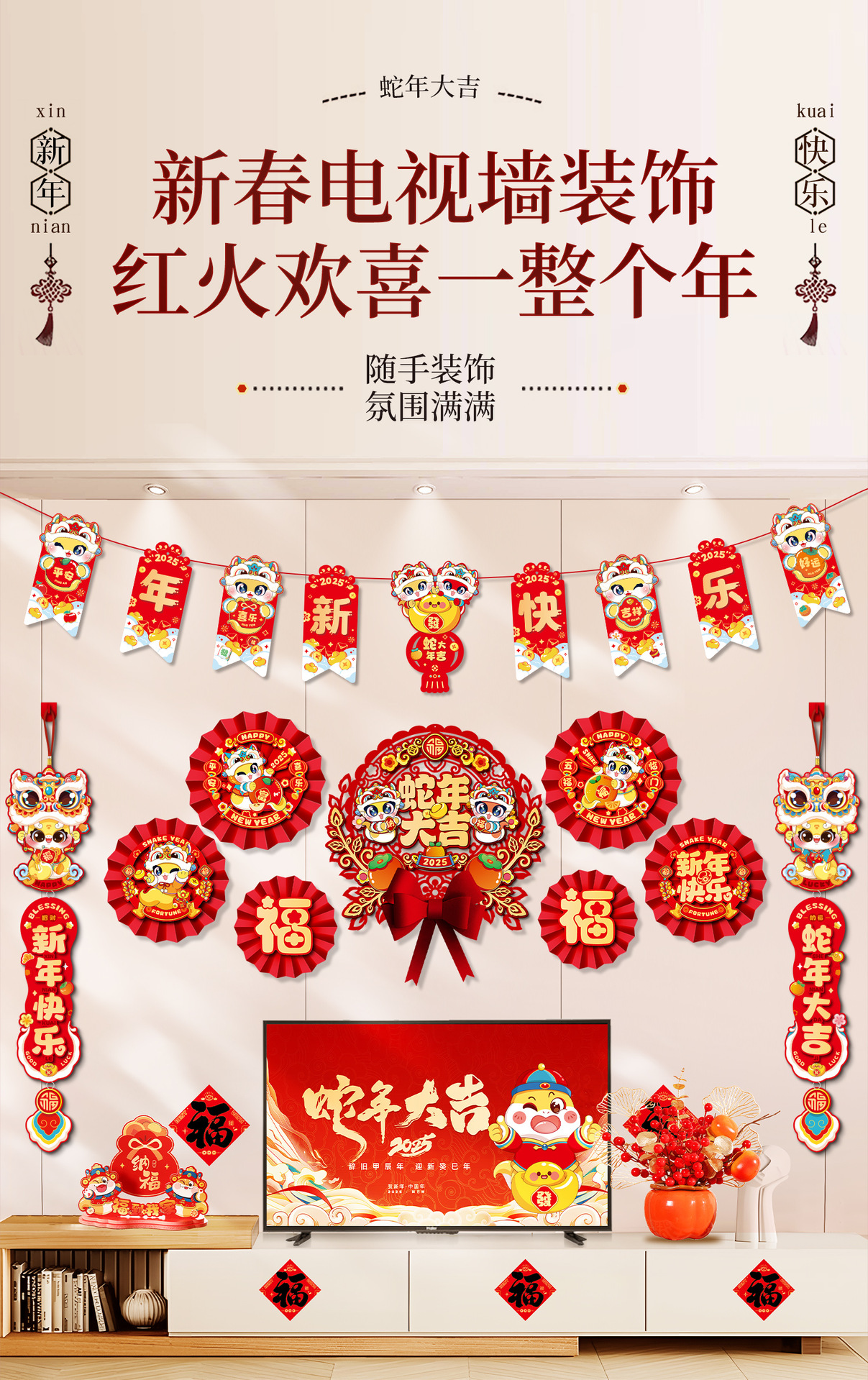 2025新款新年电视背景墙装饰品蛇年客厅挂件春节氛围场景布置用品
