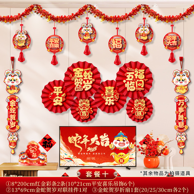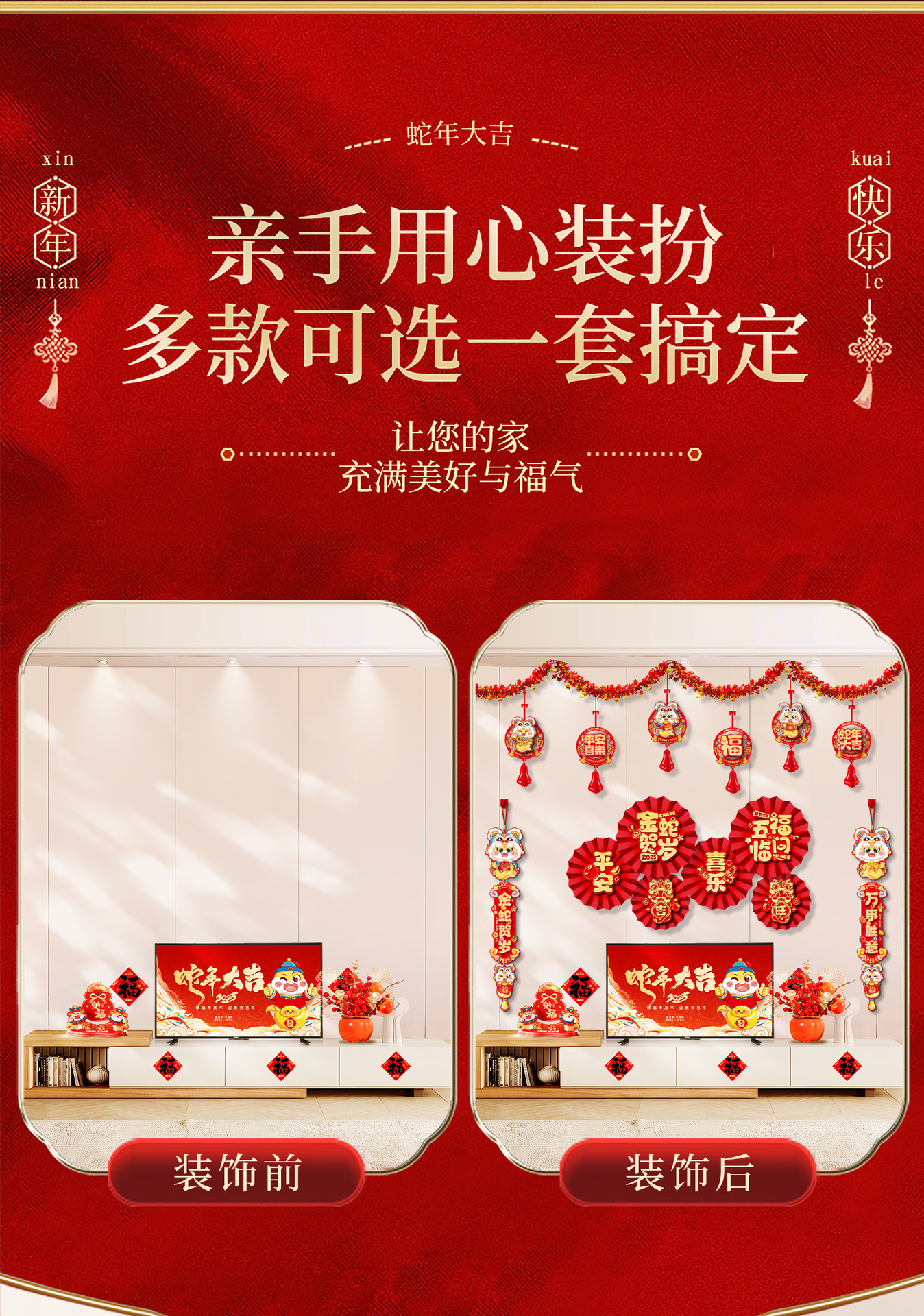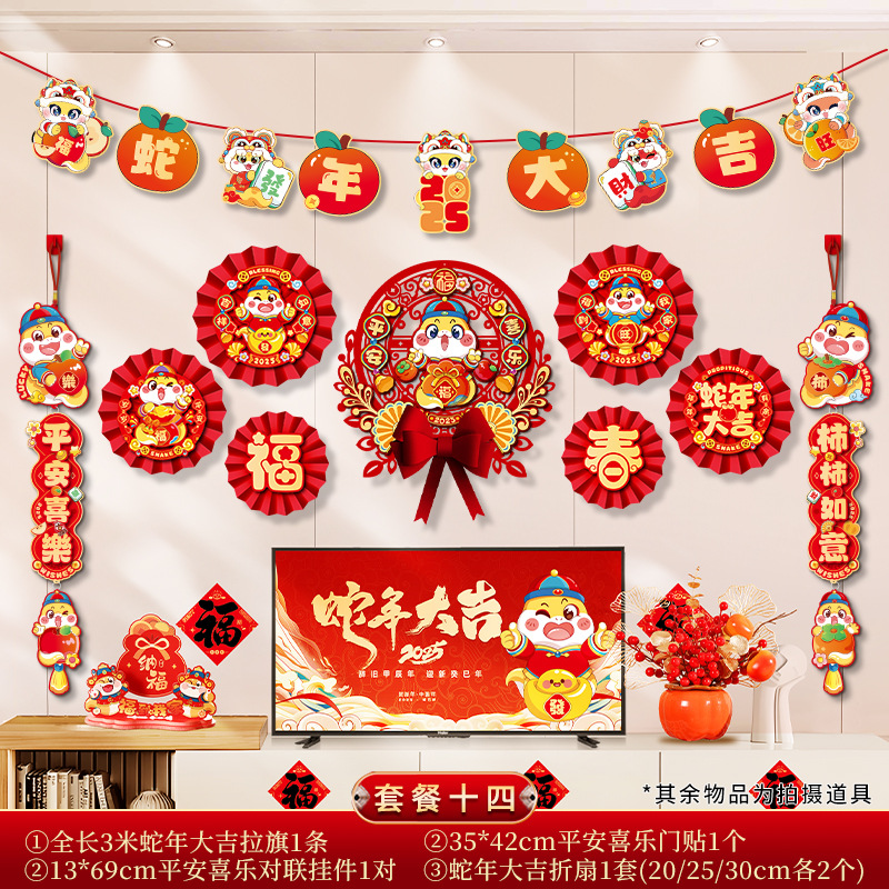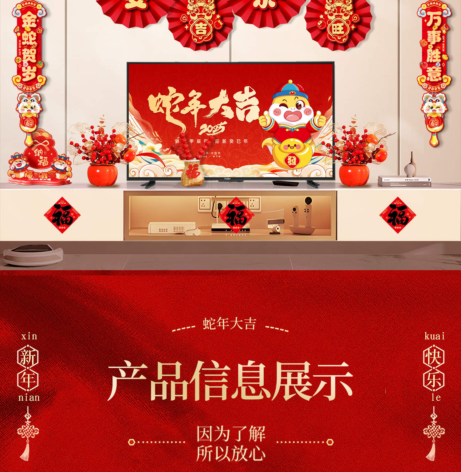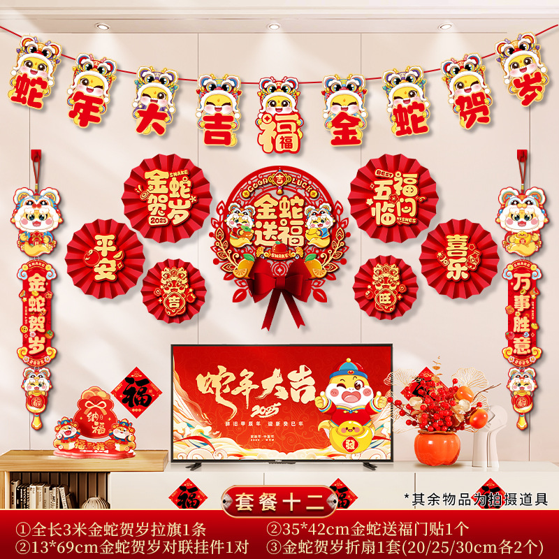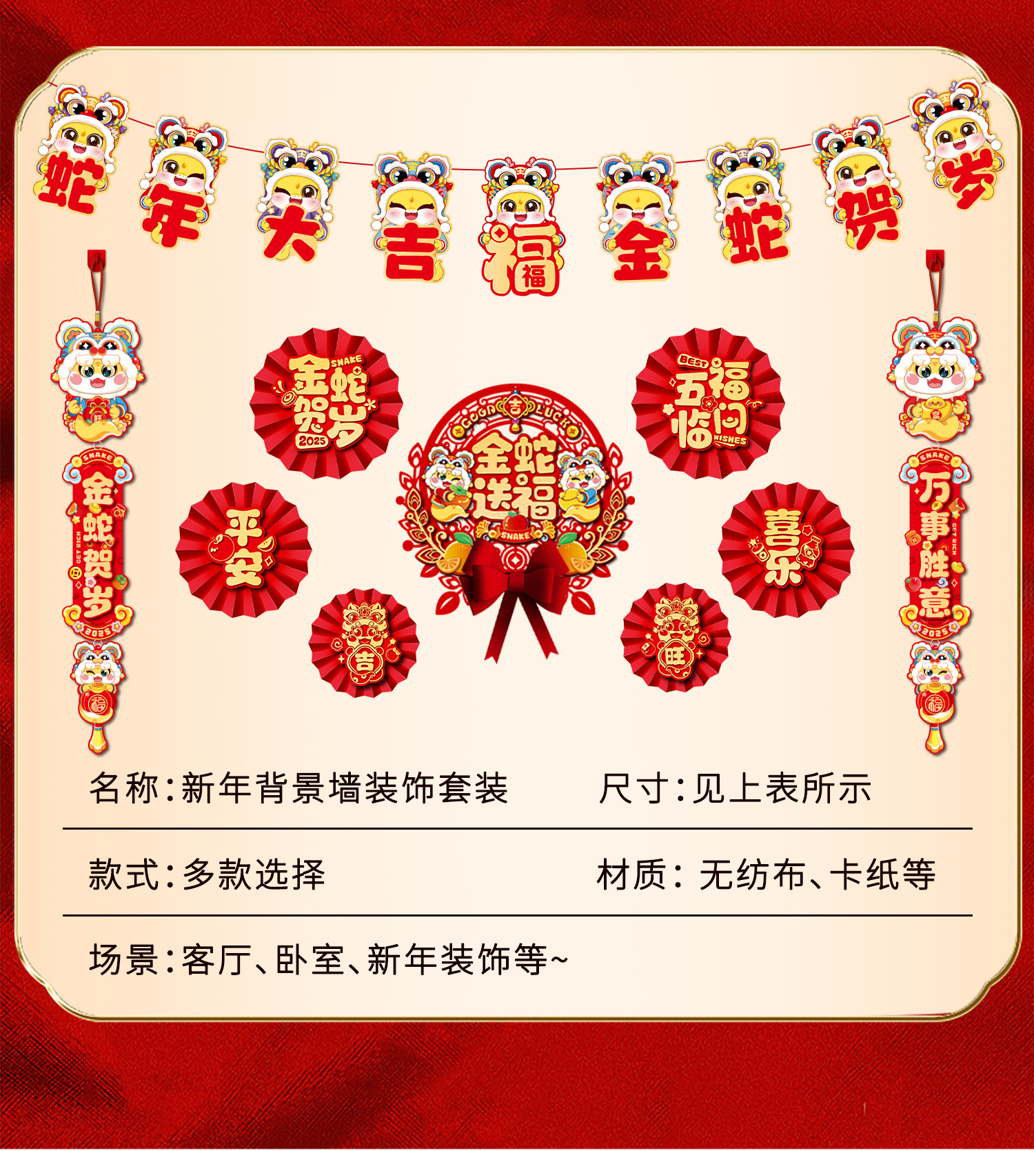 2025新款新年电视背景墙装饰品蛇年客厅挂件春节氛围场景布置用品