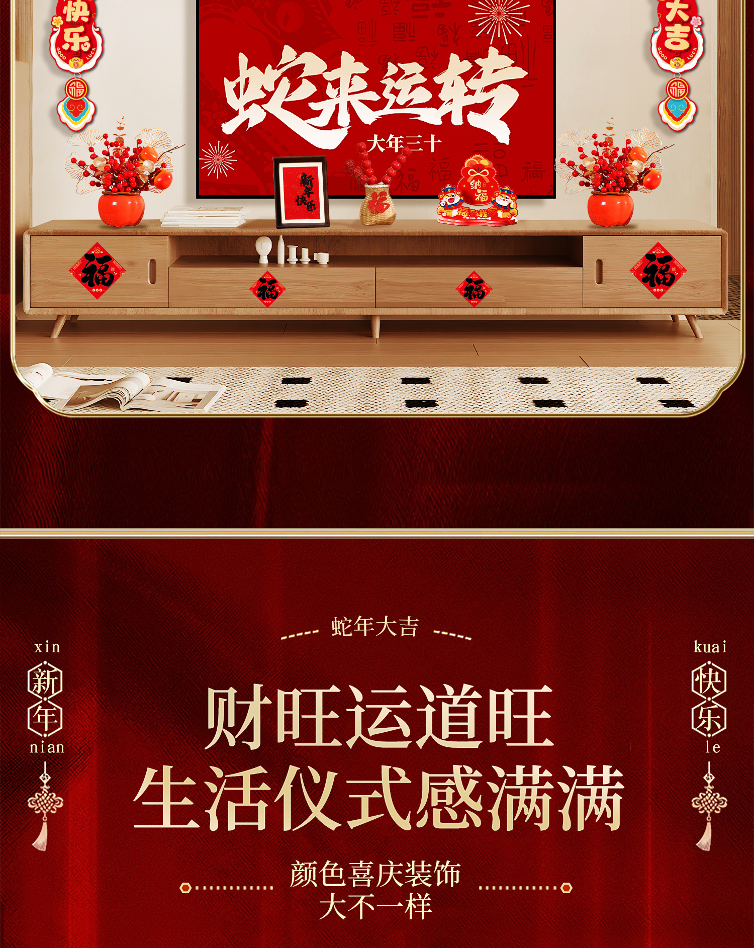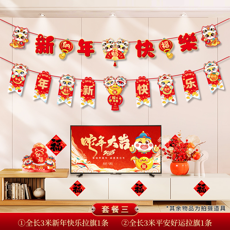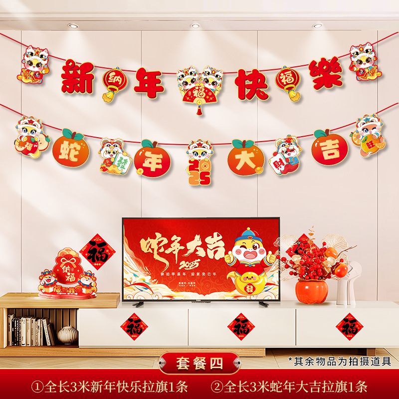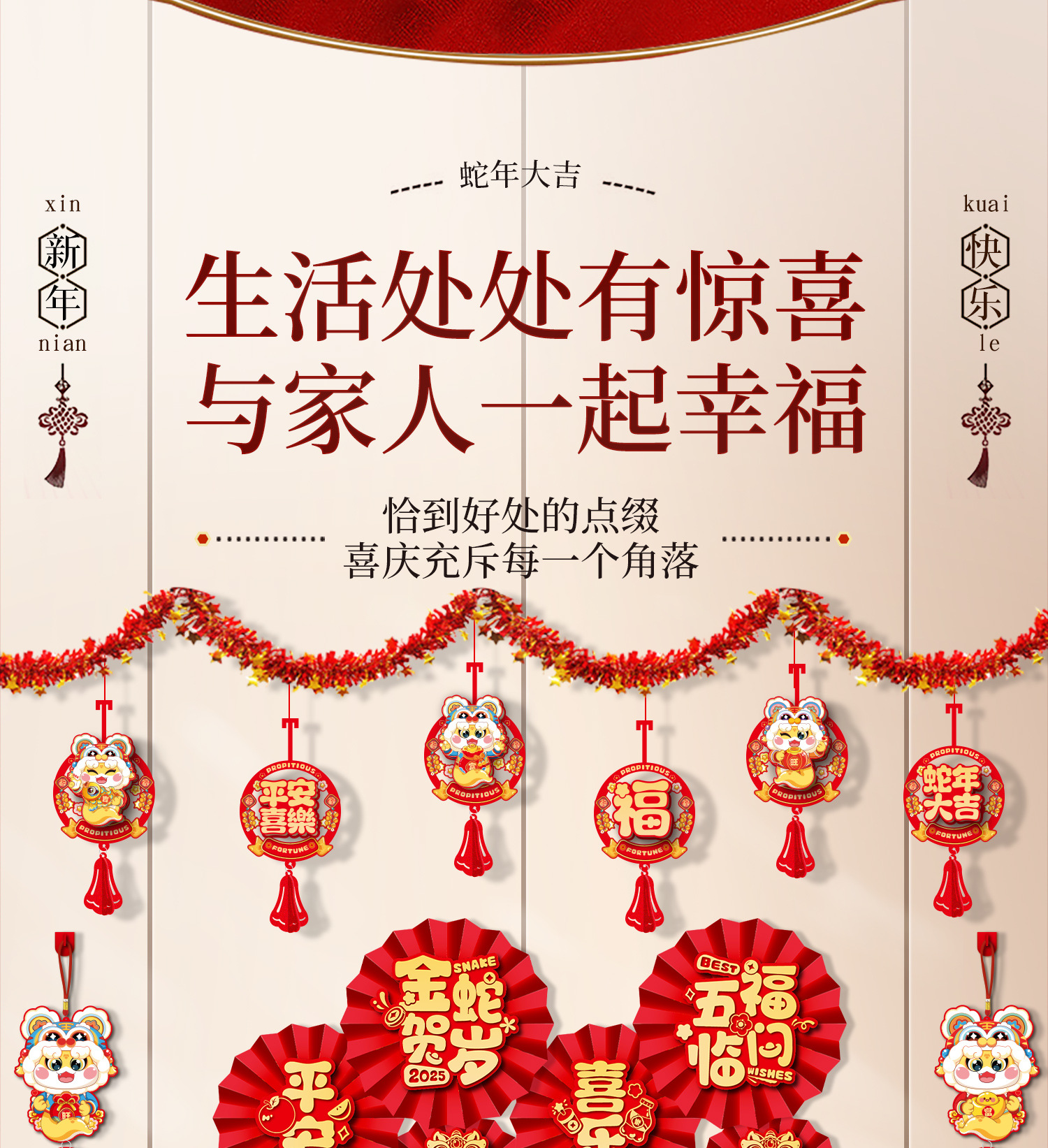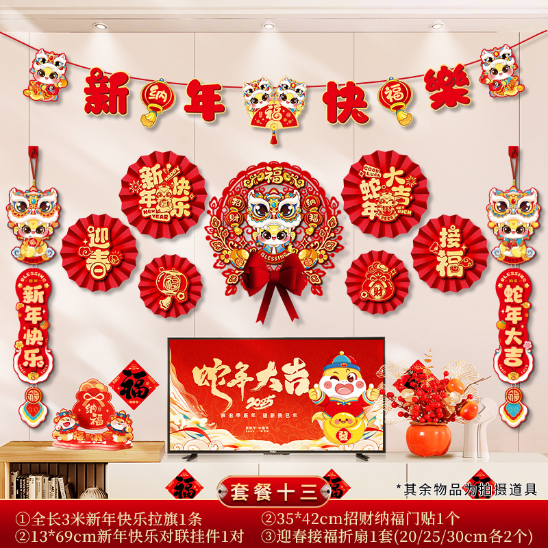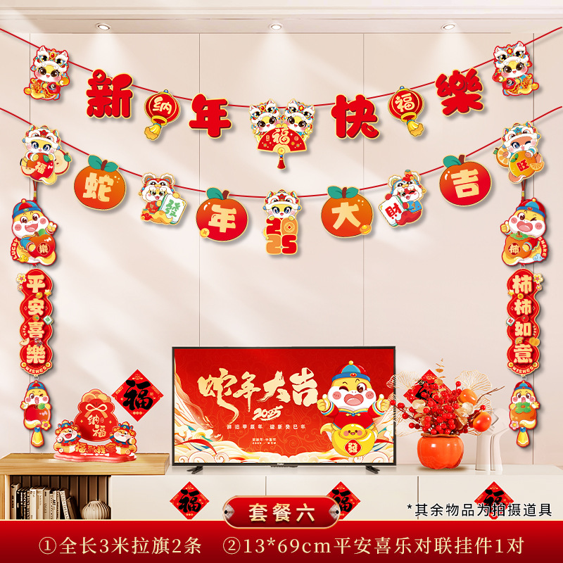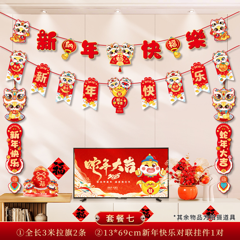 2025新款新年电视背景墙装饰品蛇年客厅挂件春节氛围场景布置用品