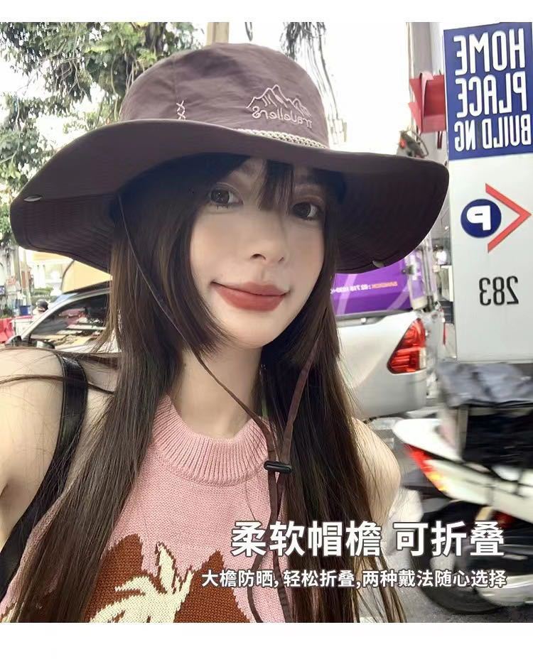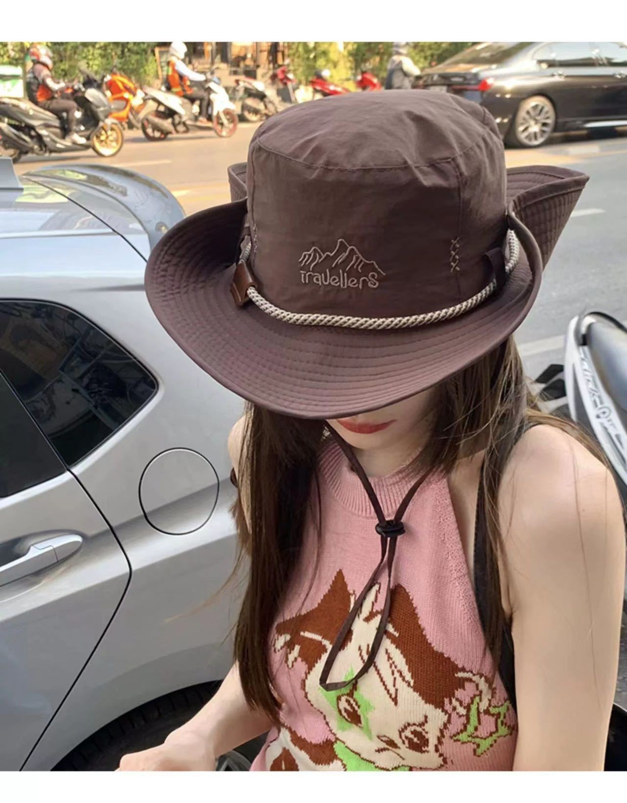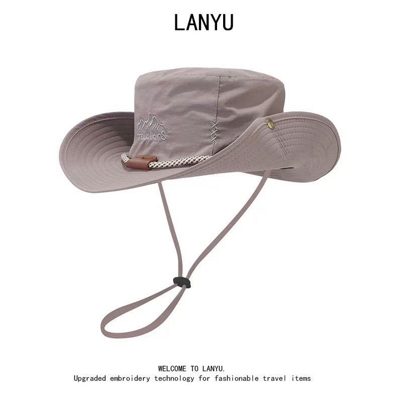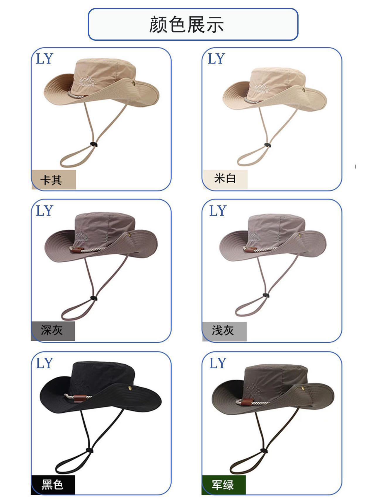 户外速干露营帽男女夏季钓鱼登山遮阳渔夫帽日系抽绳西部牛仔帽子