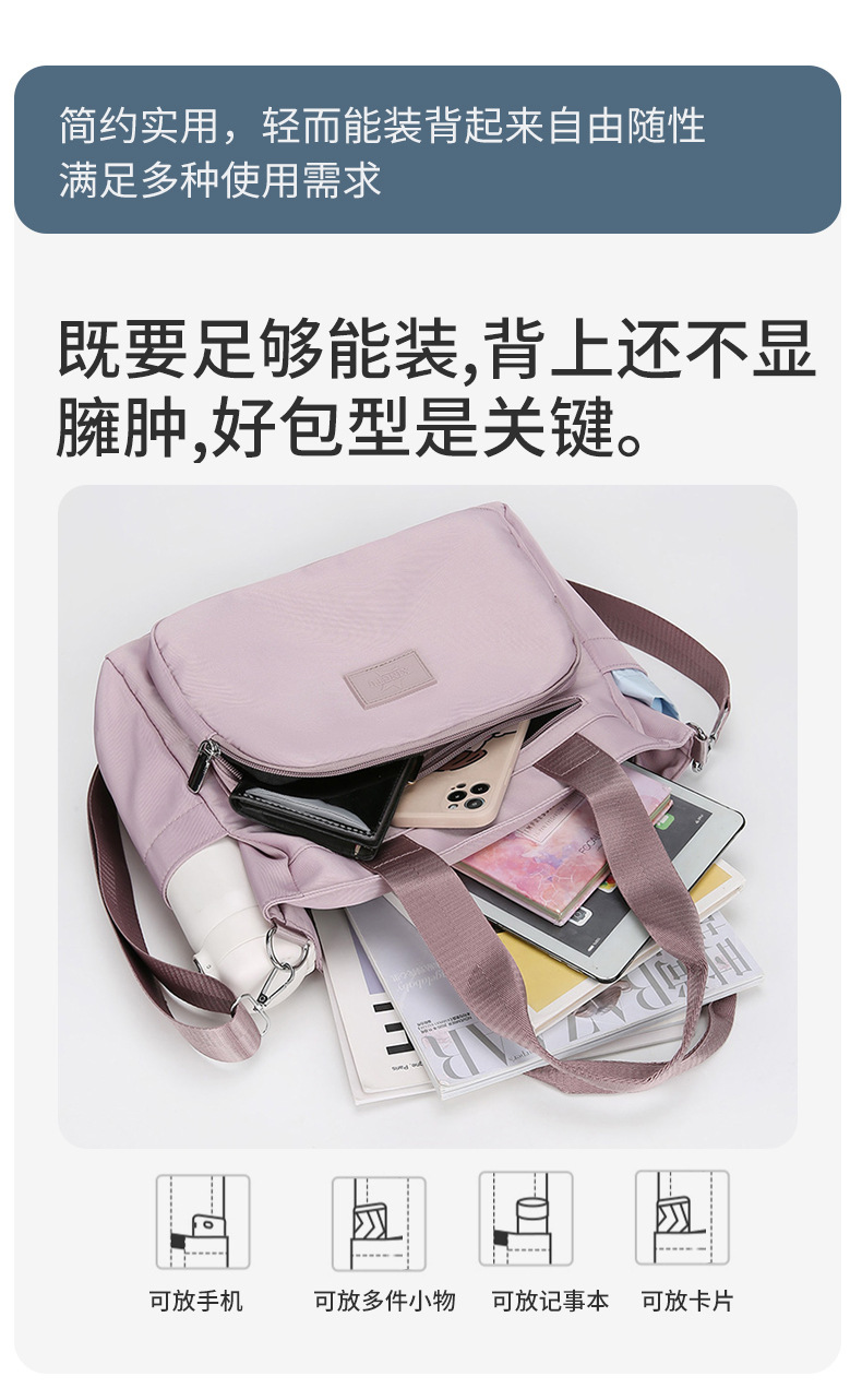 2024新款大容量尼龙牛津布斜挎包女士单肩手提帆布通勤旅行妈妈包