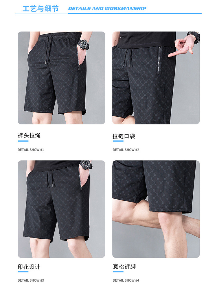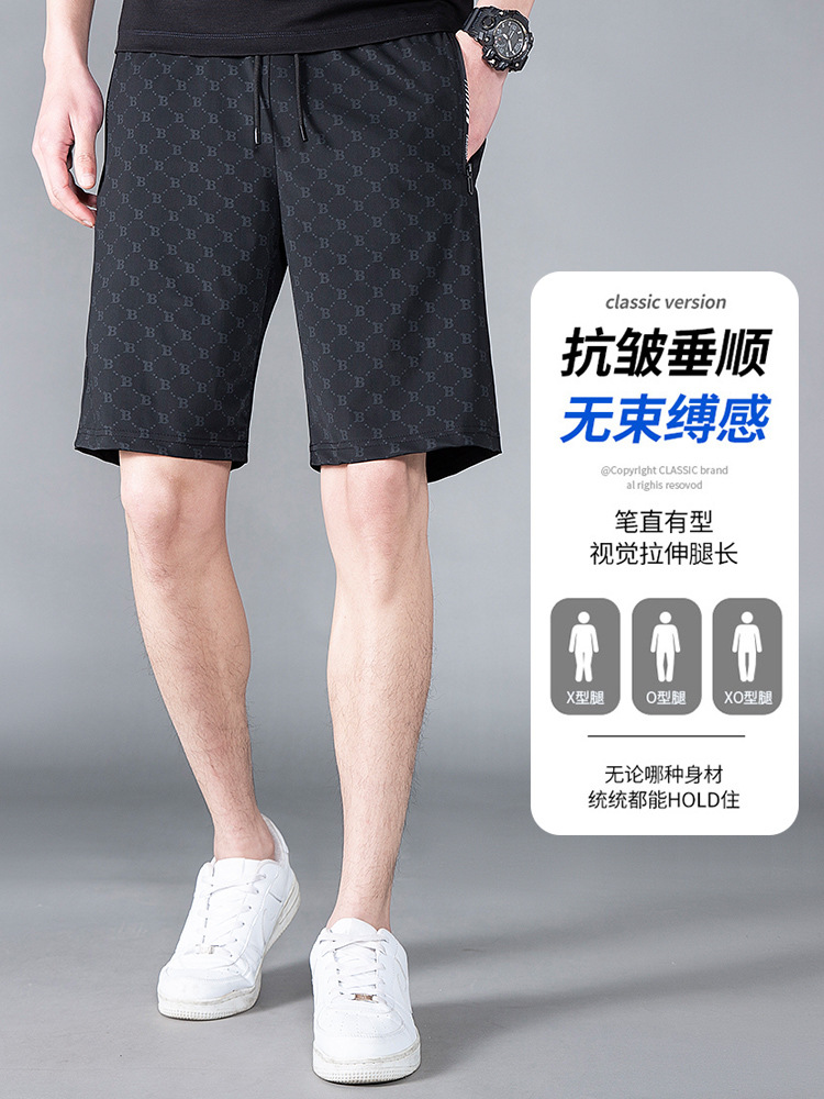 男士短裤新款透气B字夏季冰丝裤子沙滩休闲五分潮流3色运动短裤男