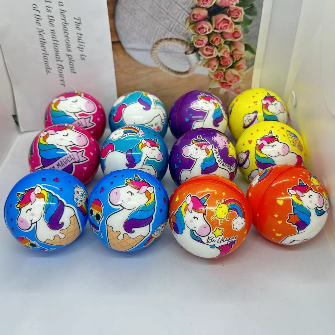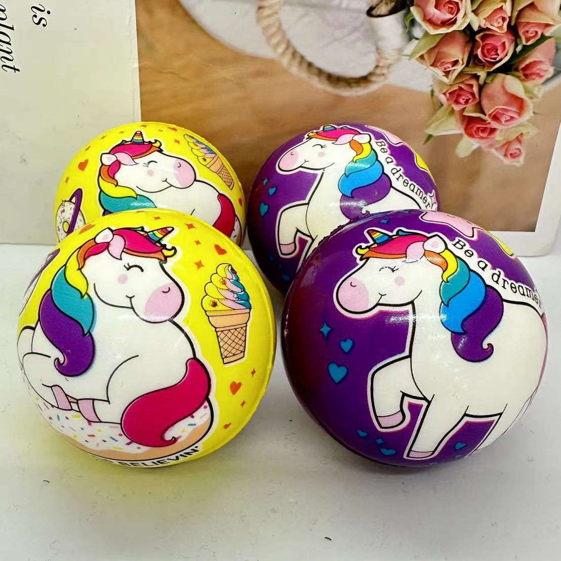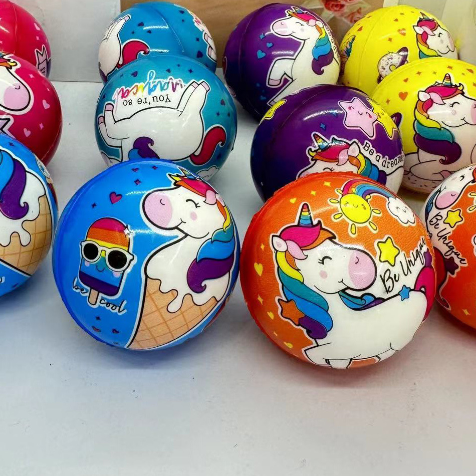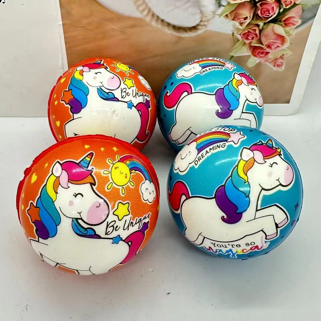 跨境新款解压发泄63mmPU球独角兽发泡海绵压力球颜色丰富儿童玩具