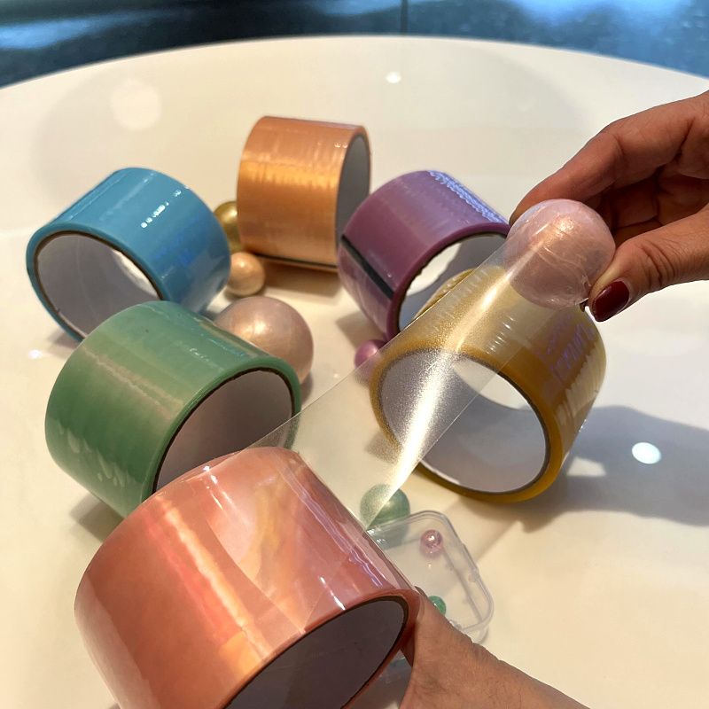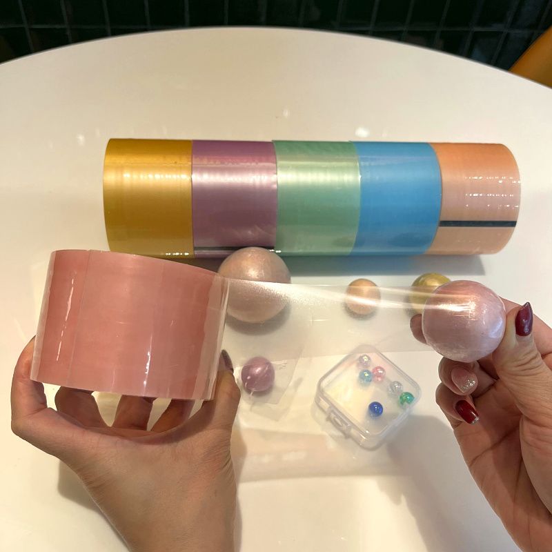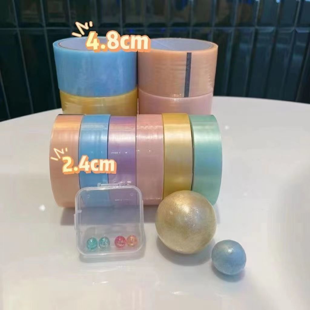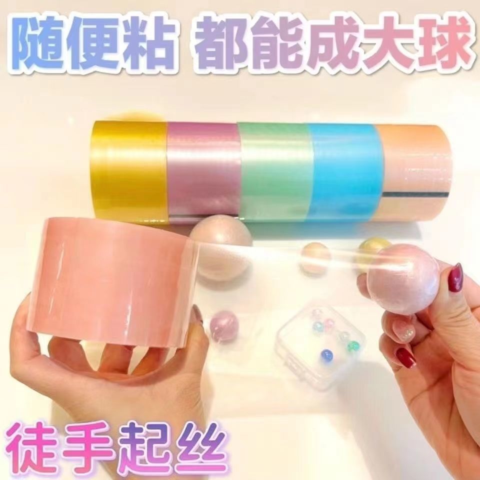 珠光粘粘球胶带徒手起丝透明网红解压超大超宽马卡龙专用宝宝胶布