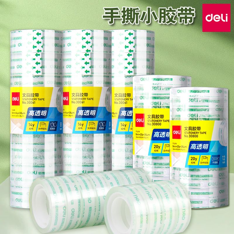 得力透明文具胶带学生用胶纸12mm高粘度18mm外卖封口小号手撕胶布