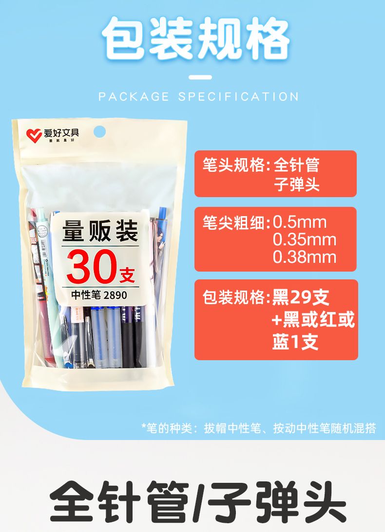 爱好学生福袋中性笔简约高颜值30支可爱黑色签字笔红笔笔芯刷题笔