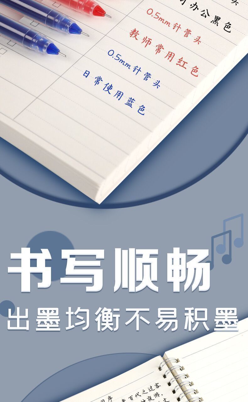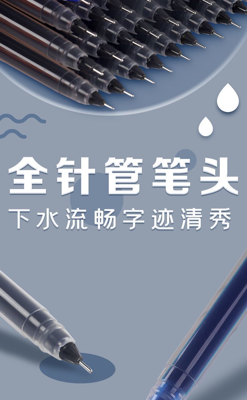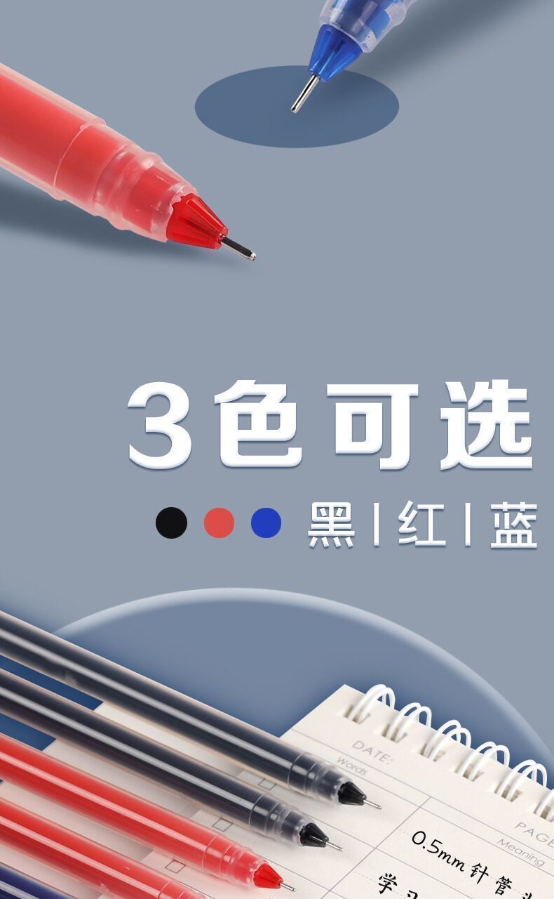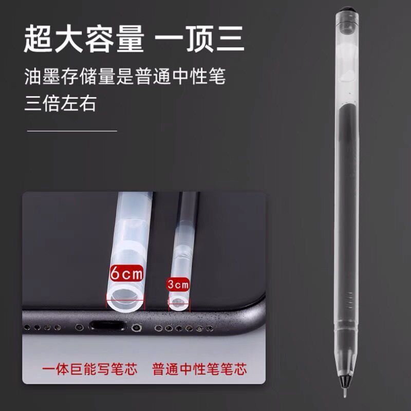 大容量直液式中性笔巨能写全针管笔黑红蓝 0.5学生用碳素笔签字笔