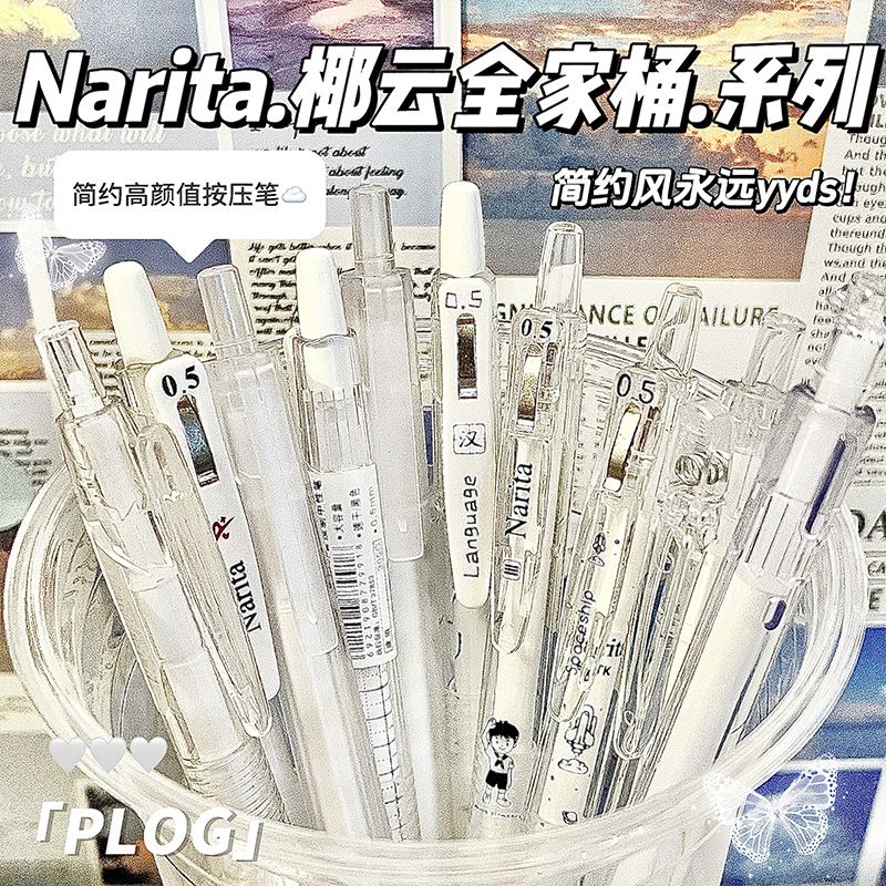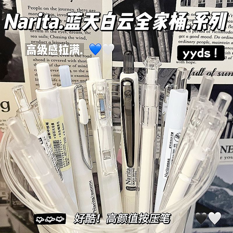 ins高颜值少女按动笔全家桶顺滑好写学生0.5顺滑刷题笔中性黑笔