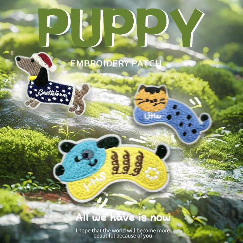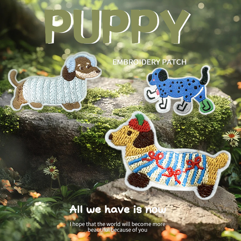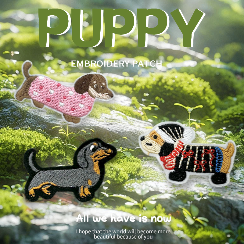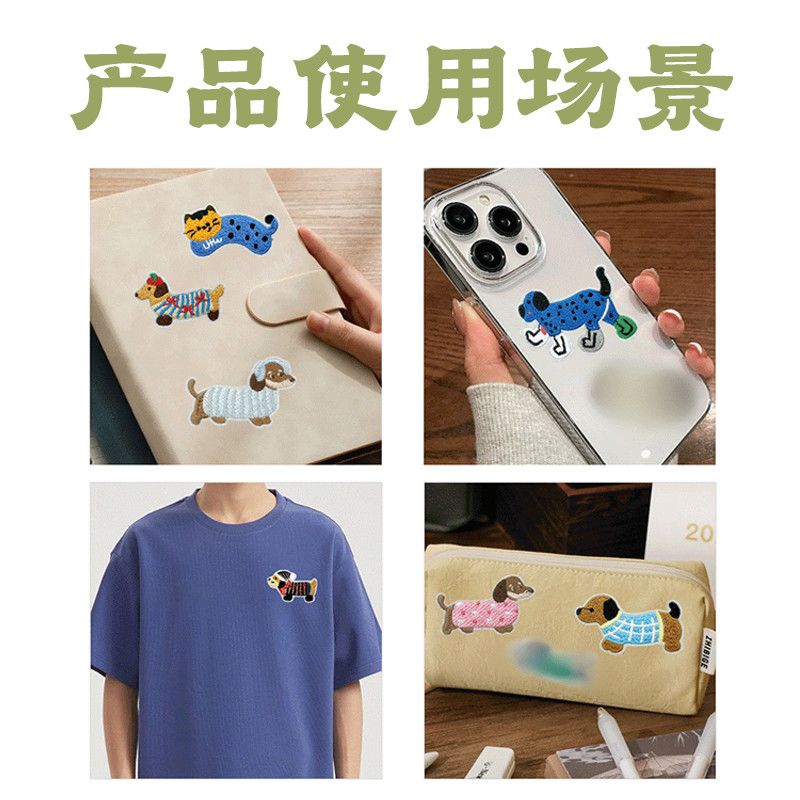 腊肠狗绣花自粘款书包手机壳刺绣贴卡通布贴围巾装饰刺绣补丁贴