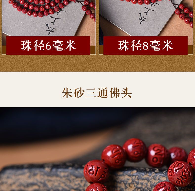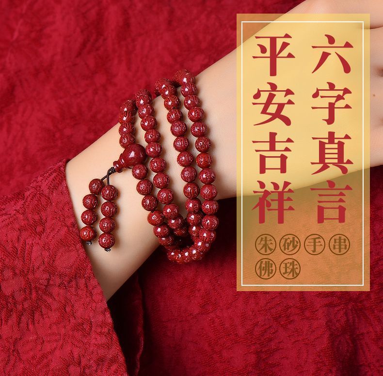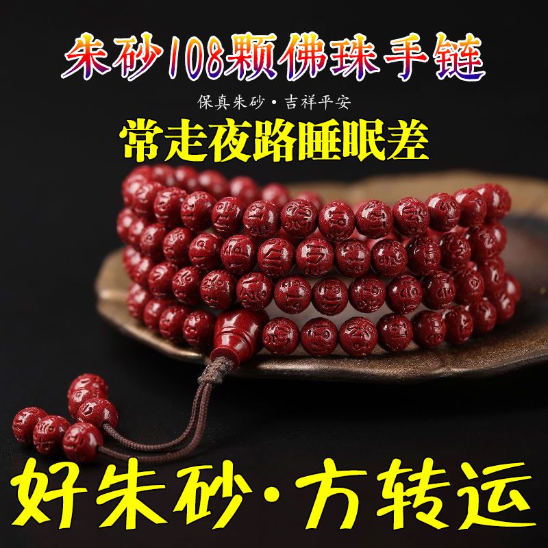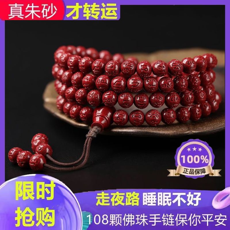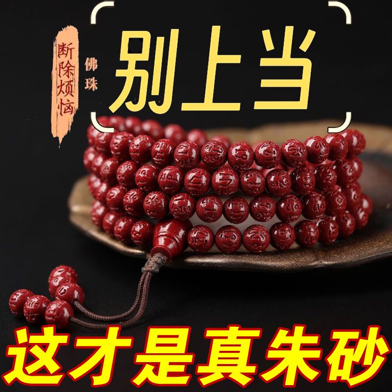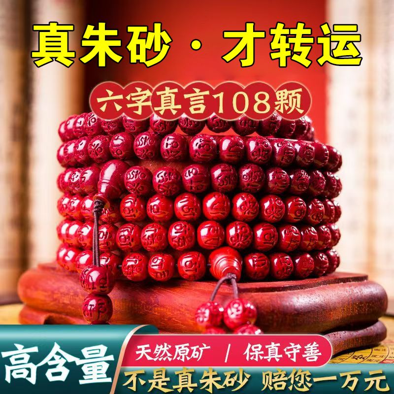高含量朱砂108颗佛珠念珠保真刻字六字真言手链手串天然原矿项链