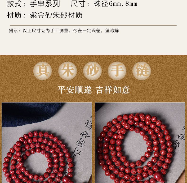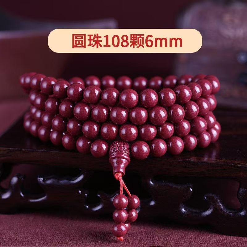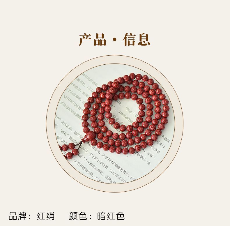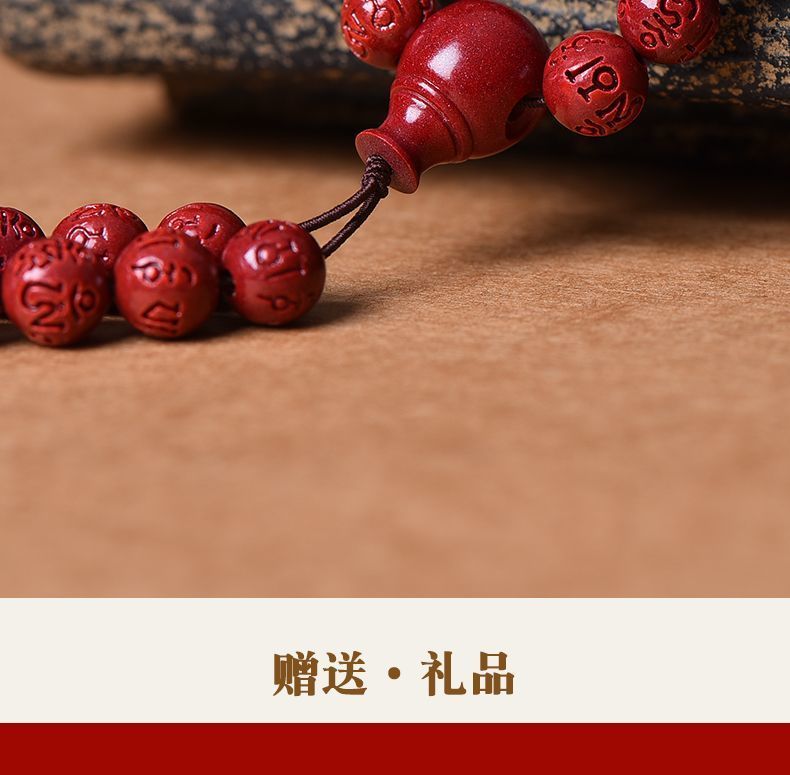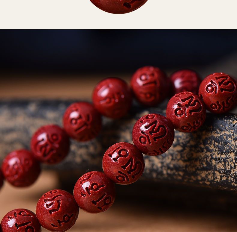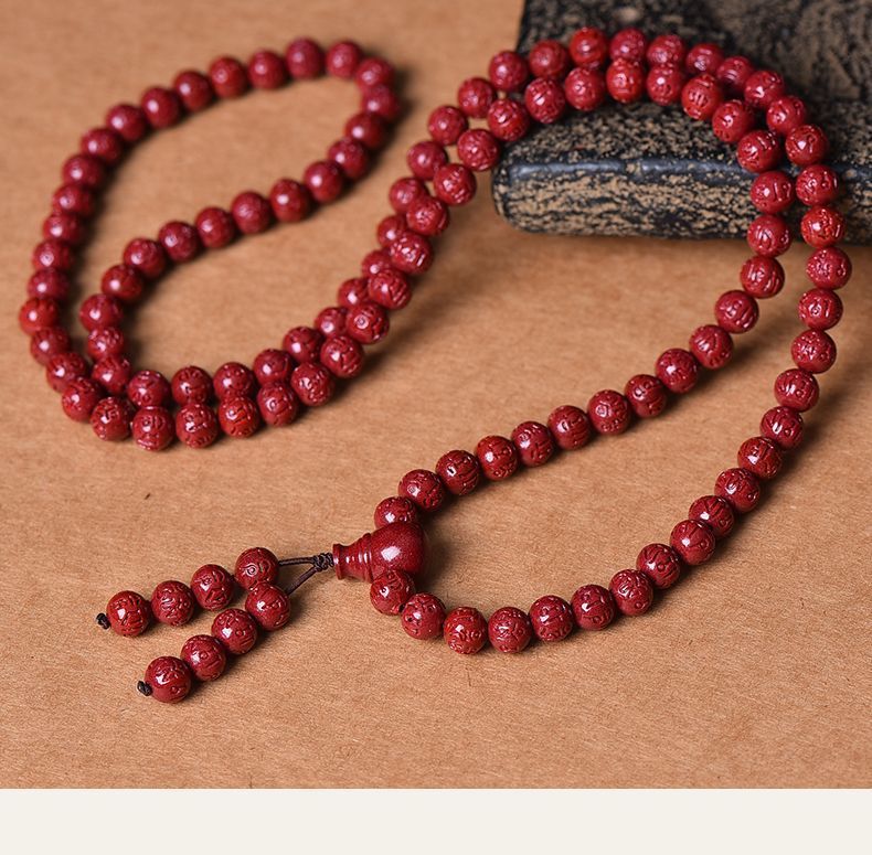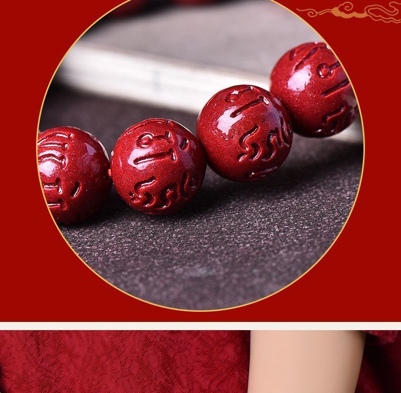 高含量朱砂108颗佛珠念珠保真刻字六字真言手链手串天然原矿项链