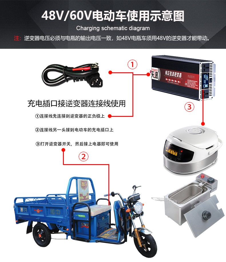 逆变器摆摊专用三轮车48v60v72v通用转220v纯正弦波电源转换器