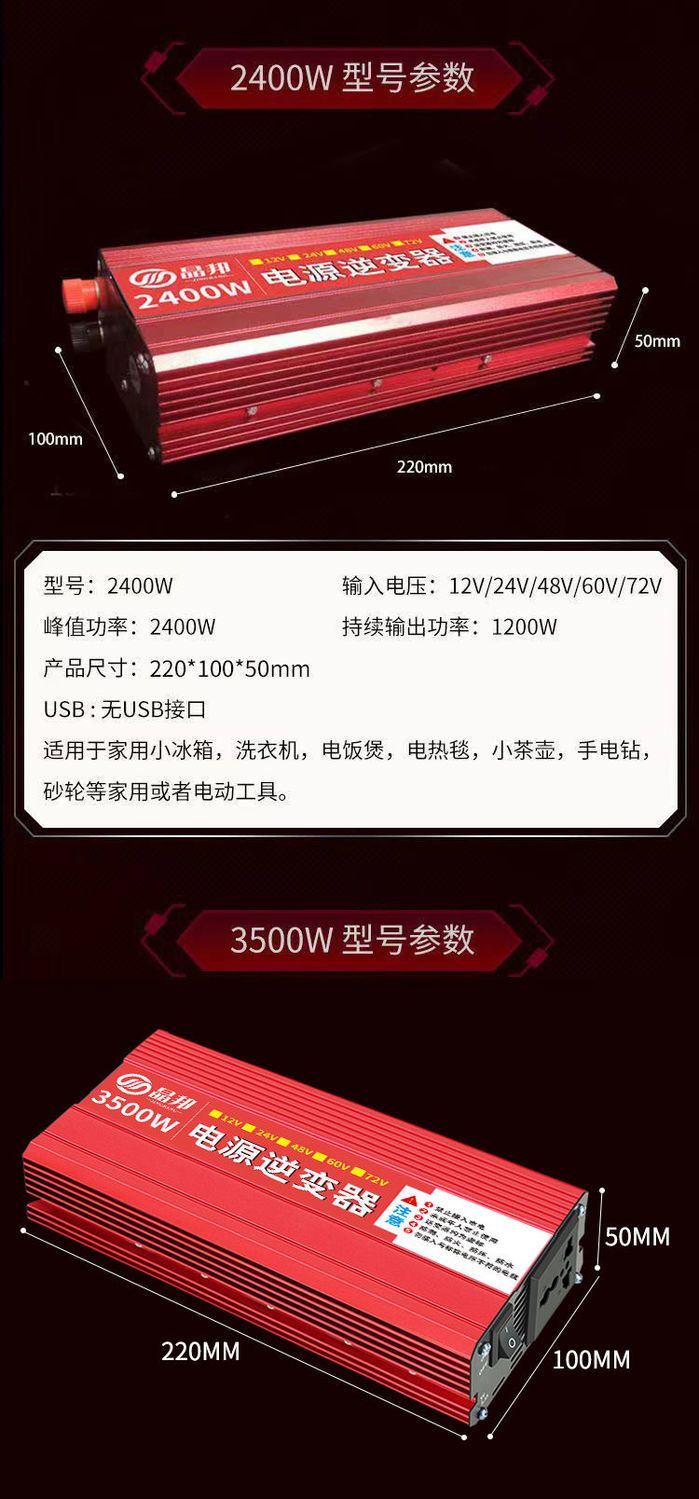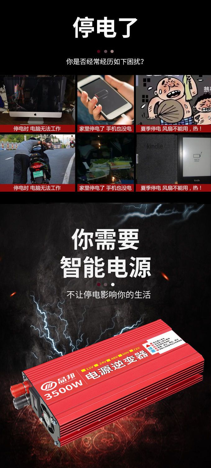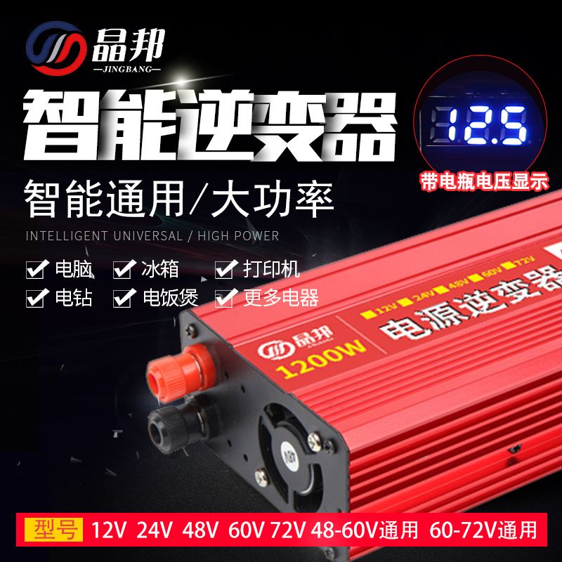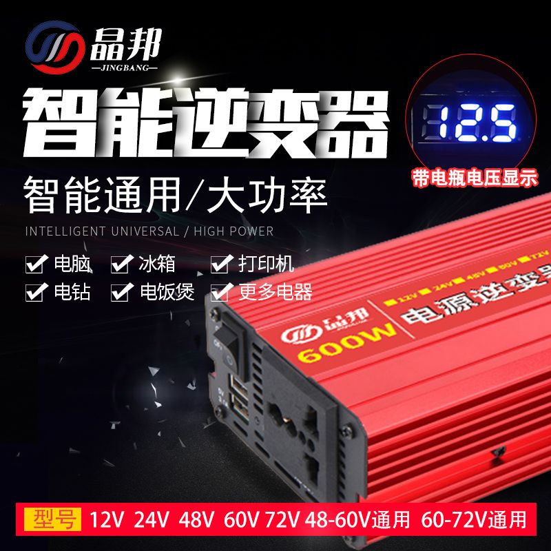 晶邦12V24V48V60V72V转220V600W3500W5500W大功率车载家用逆变器