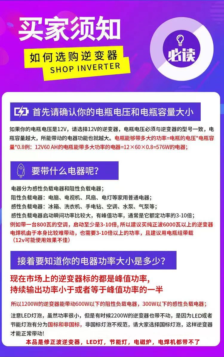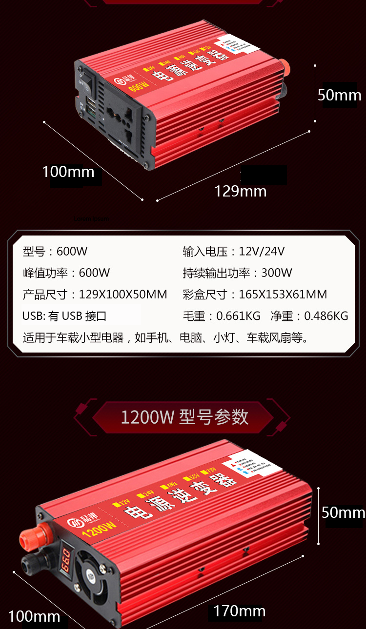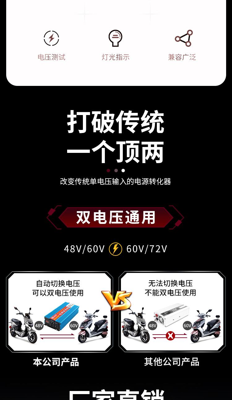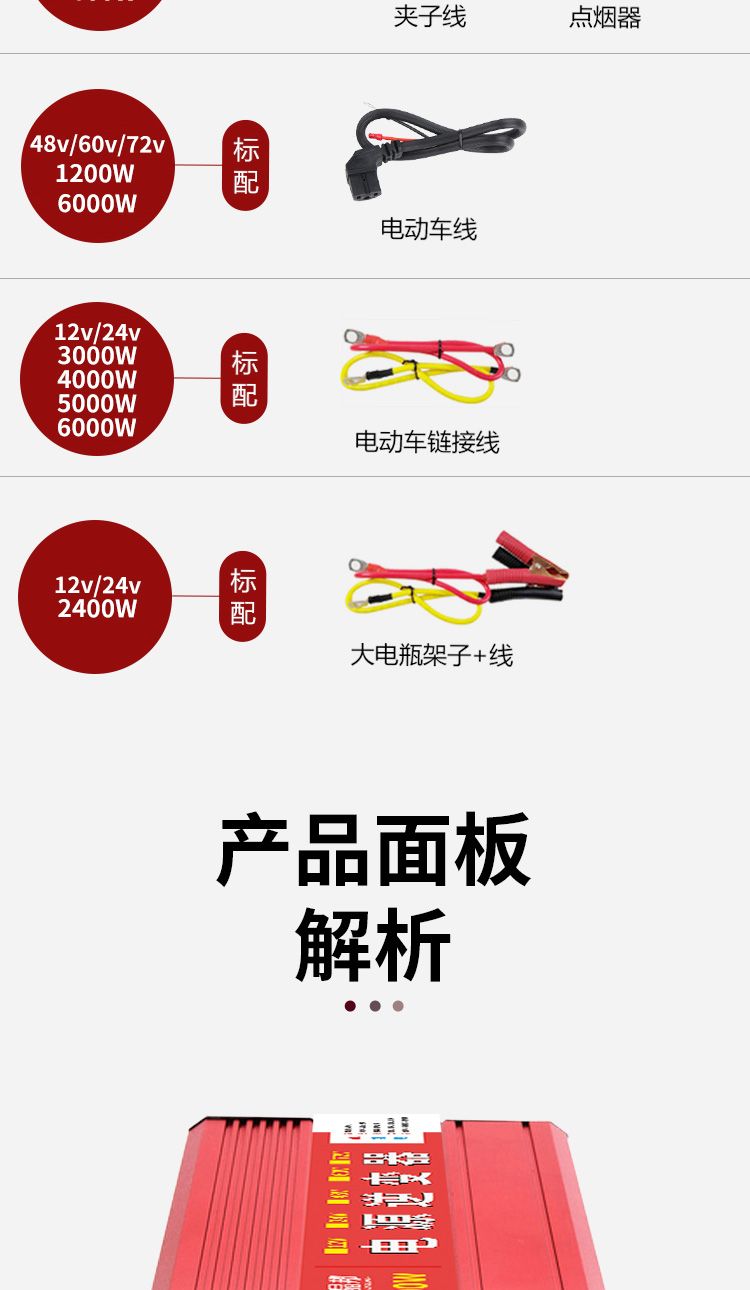 晶邦12V24V48V60V72V转220V600W3500W5500W大功率车载家用逆变器