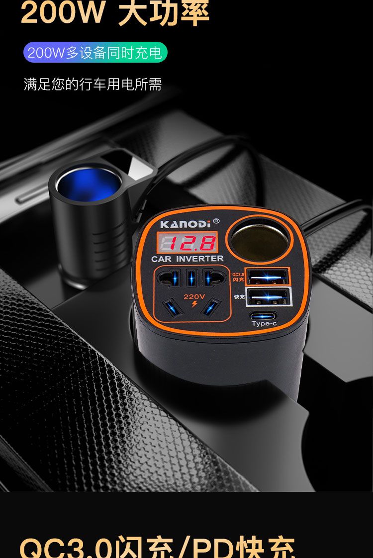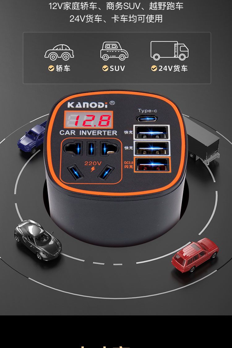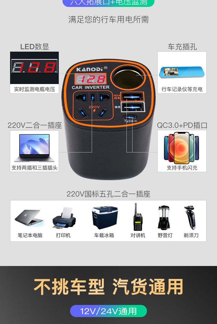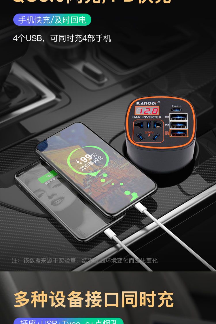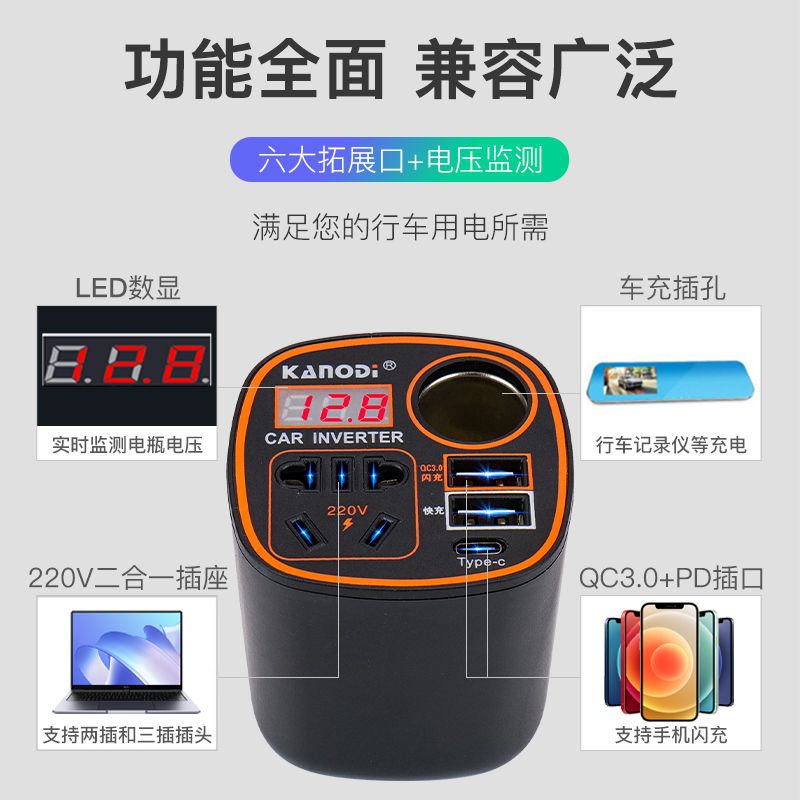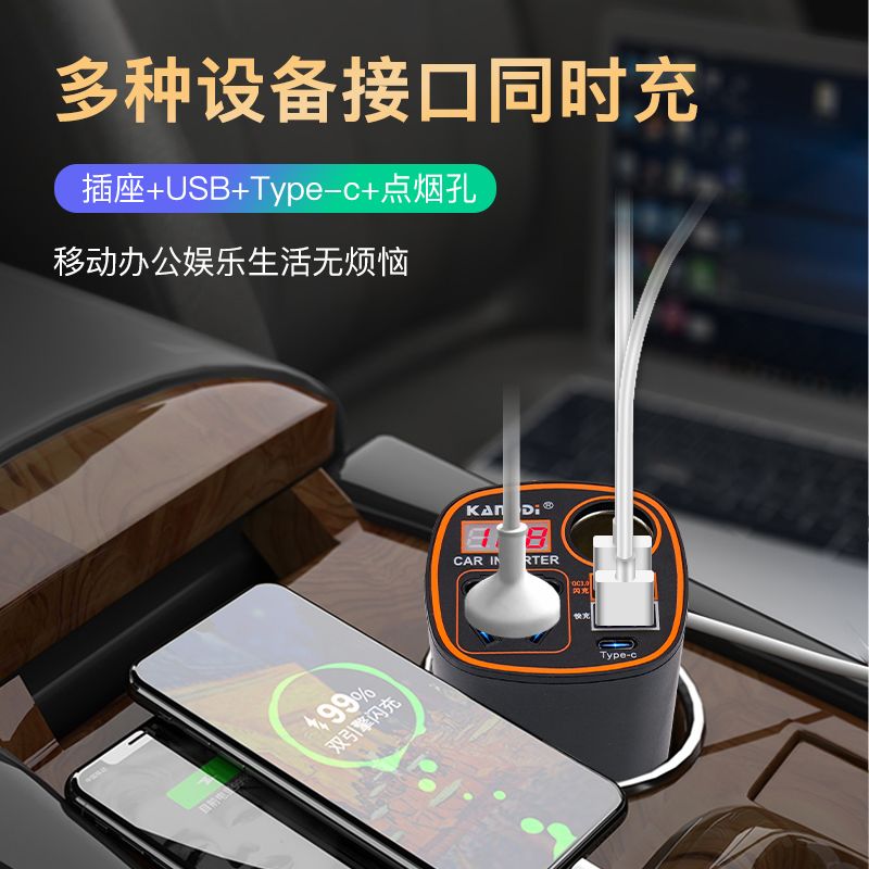 多功能车载逆变器220V大功率快充usb多用12v24v通用车用充电器