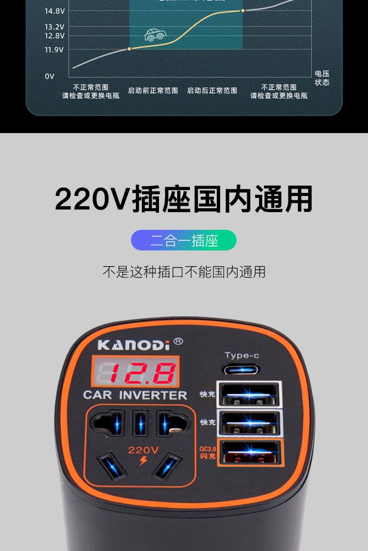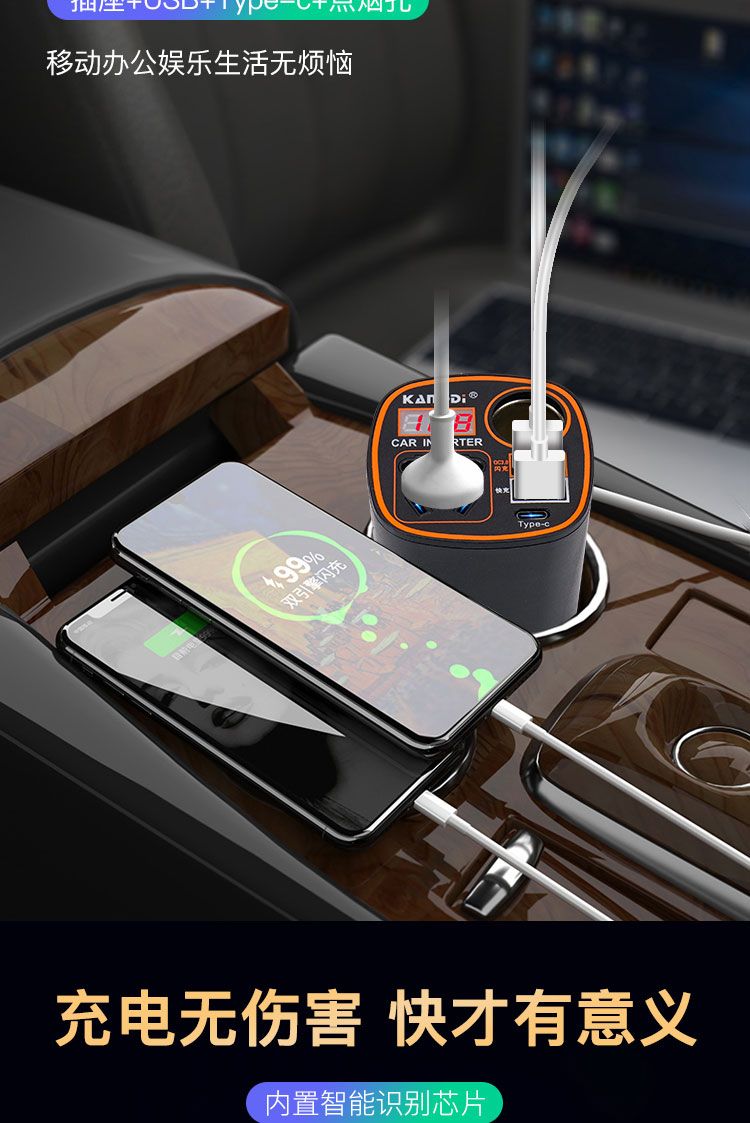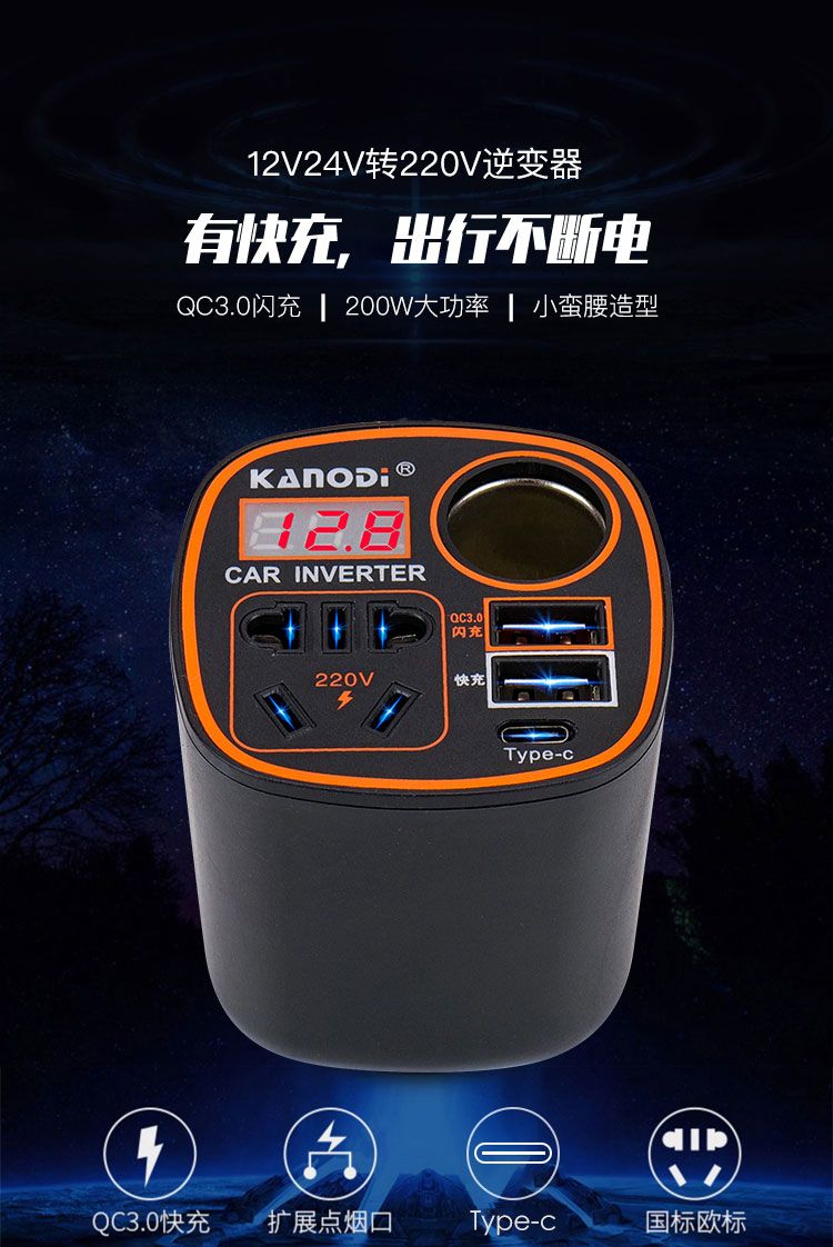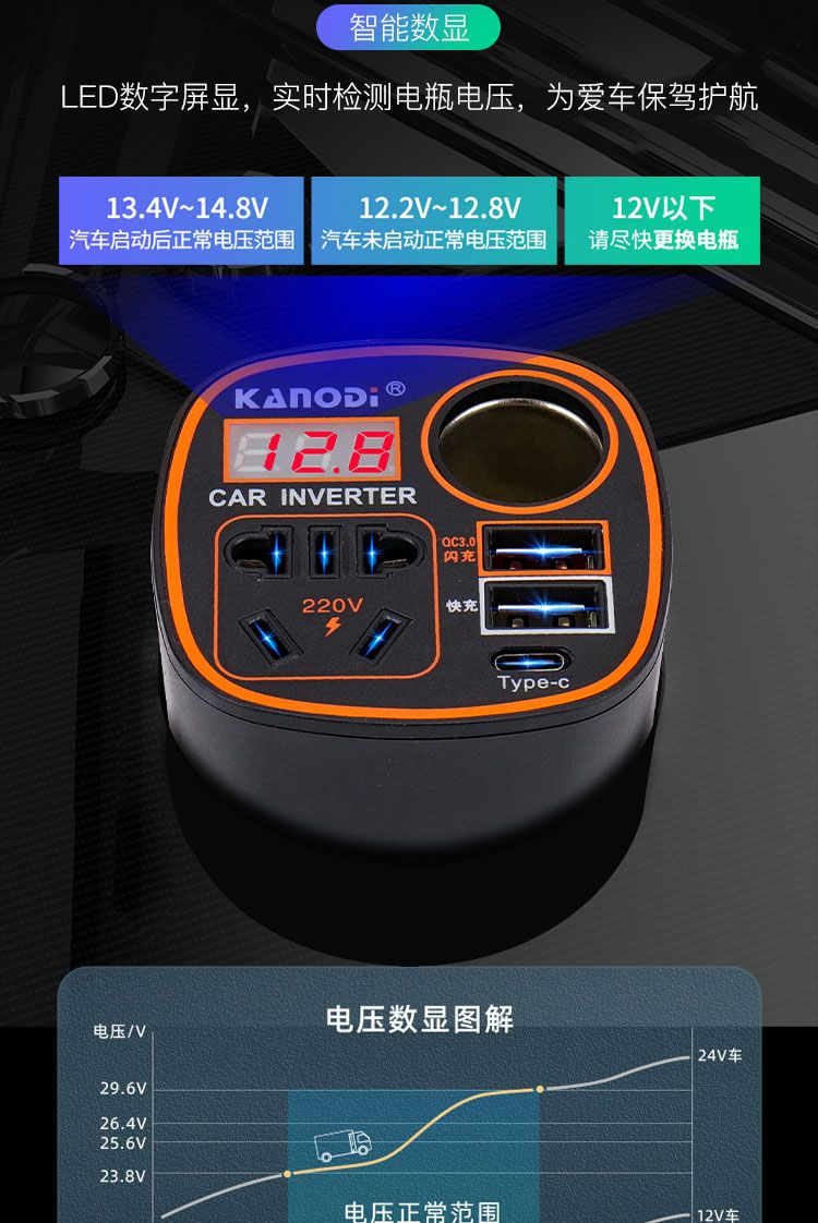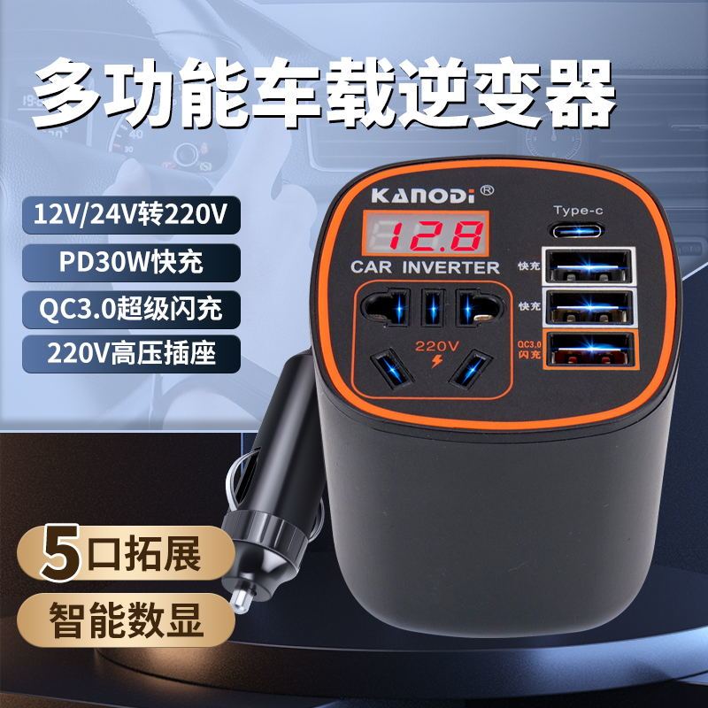 多功能车载逆变器220V大功率快充usb多用12v24v通用车用充电器