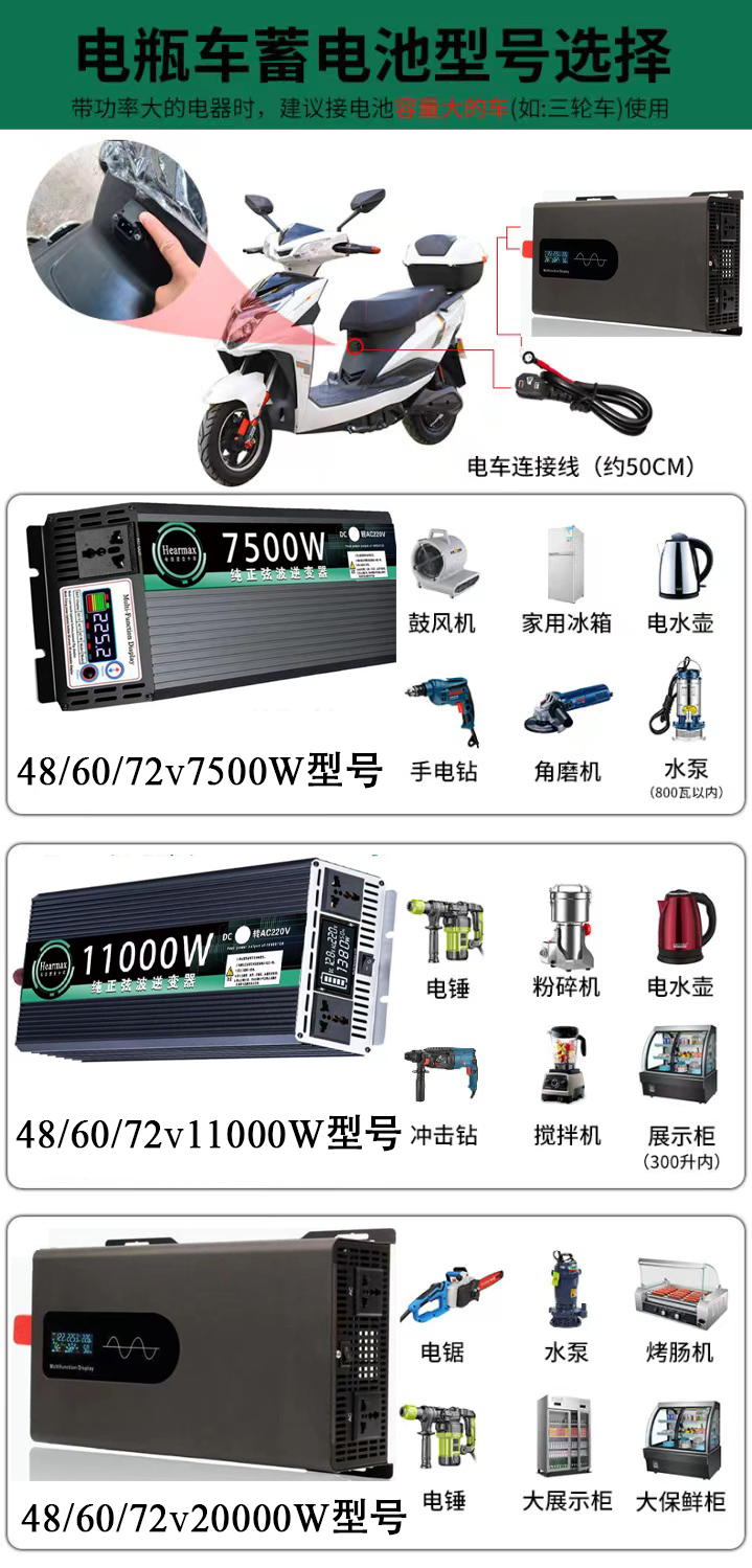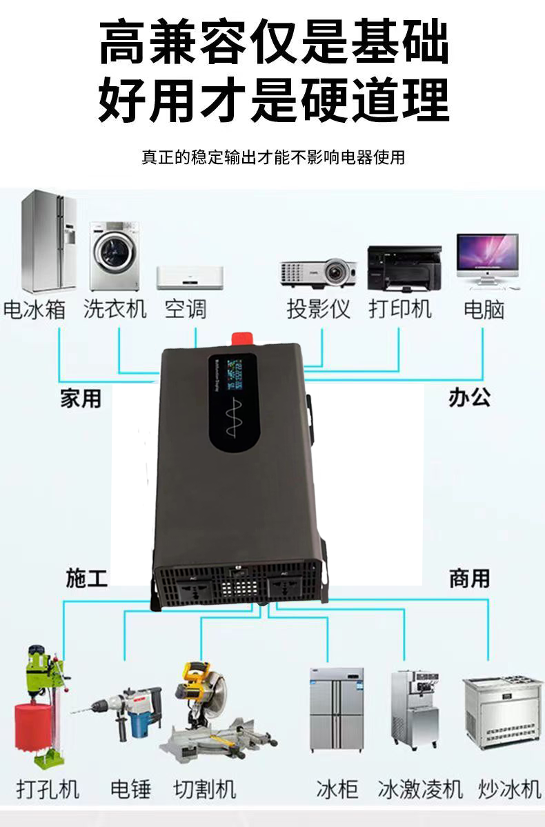 纯正弦波逆变器家用工业车载24v12v48v60v转220v电瓶转换器大功率