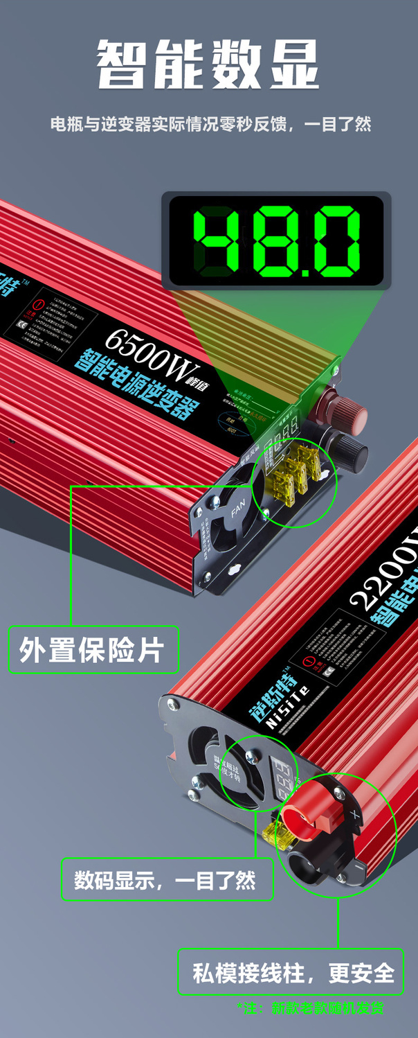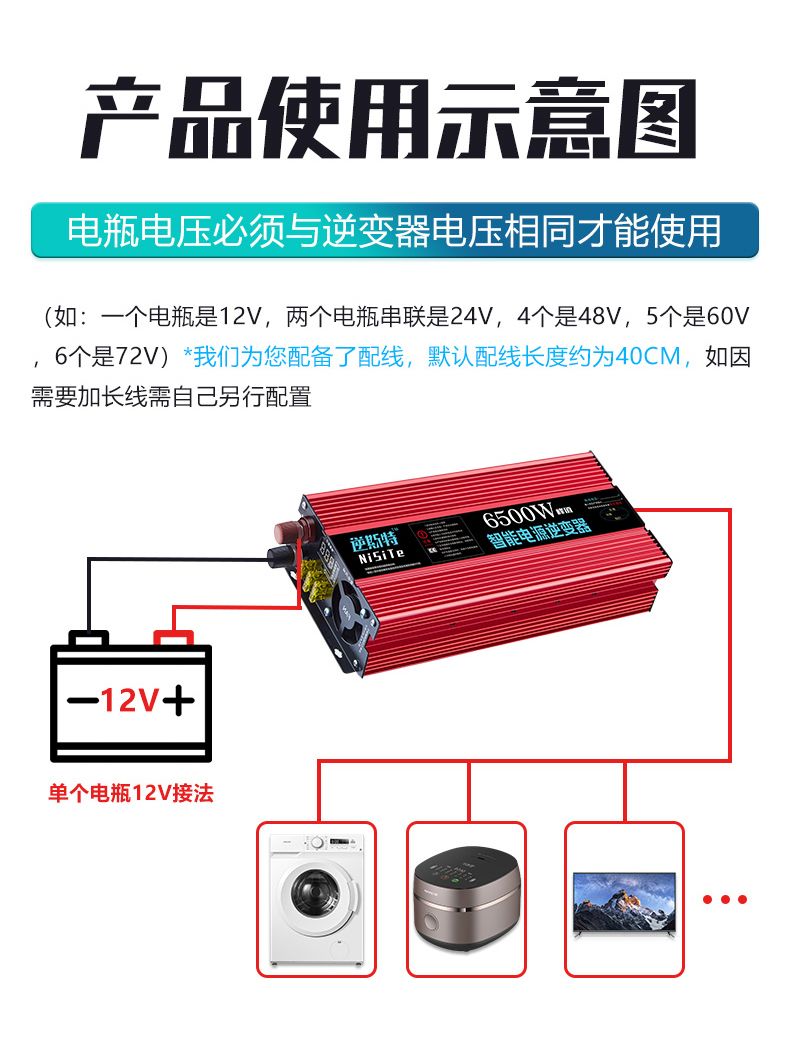 家用双压大功率逆变器12v24v48v60v72转220V电瓶车货车电源转换器