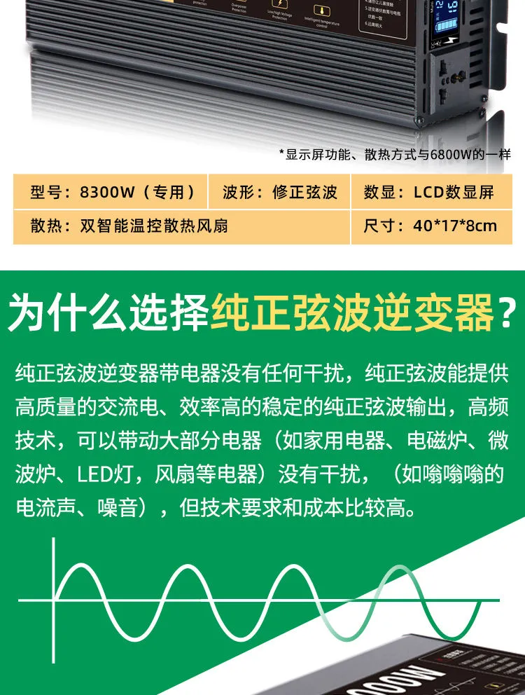 | 纯正弦波8300W+液晶显示+双插 | USD $148.39 | 99999 piece available |