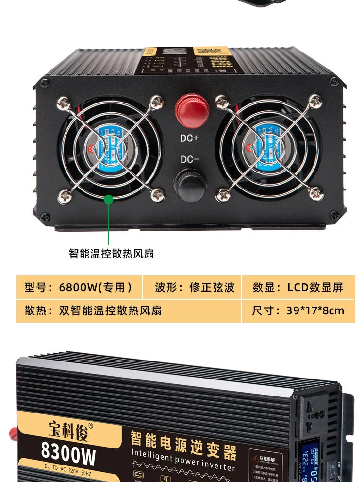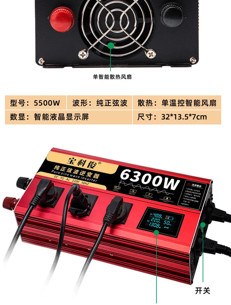 | 纯正弦波6300W+液晶显示+双插 | USD $115.77 | 99999 piece available |