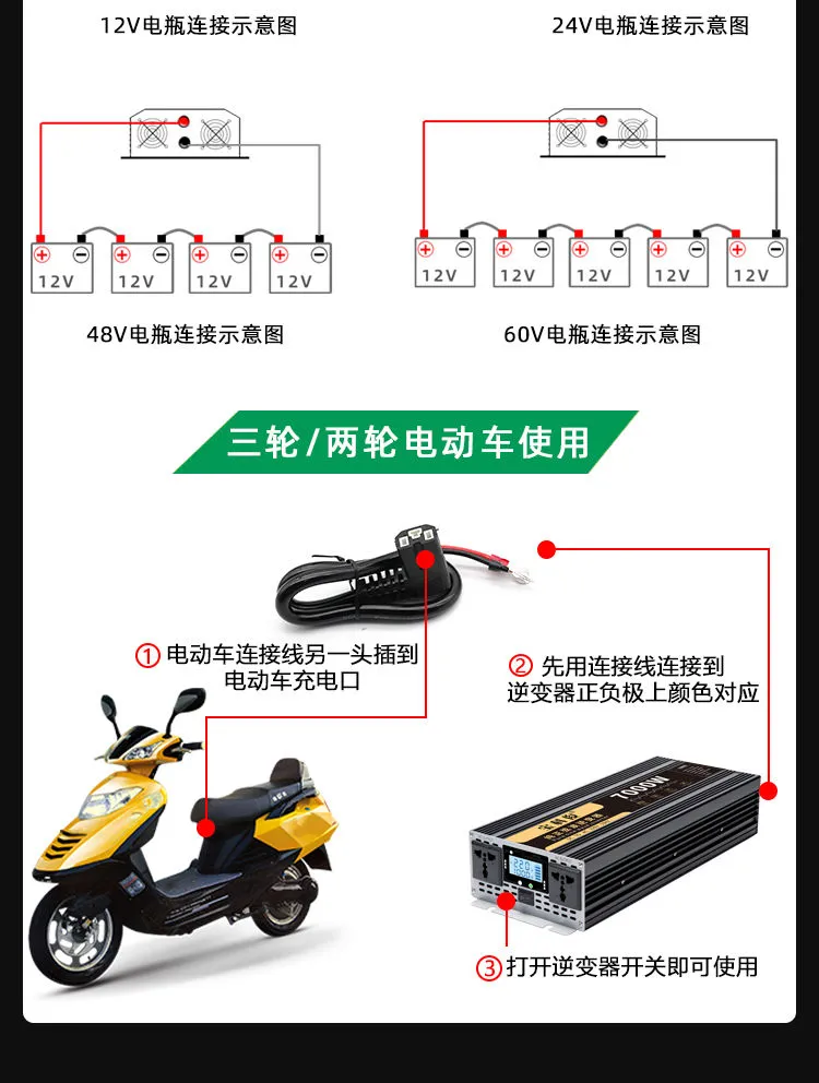 纯正弦波车载逆变器12v24v转220v变家用货车电瓶大功率电源转换器