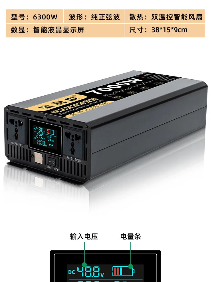 | 纯正弦波6300W+液晶显示+双插 | USD $107.62 | 99999 piece available |