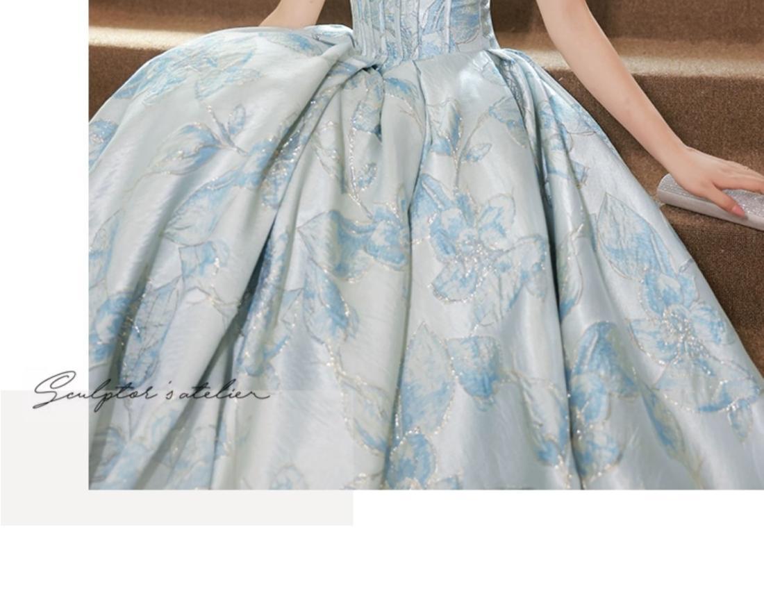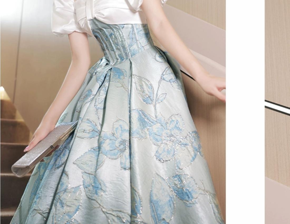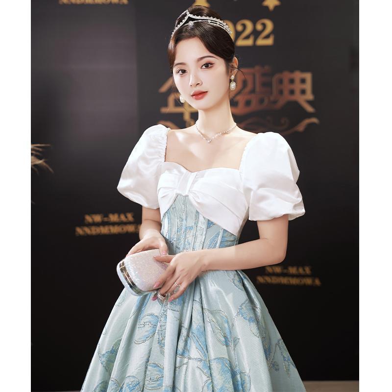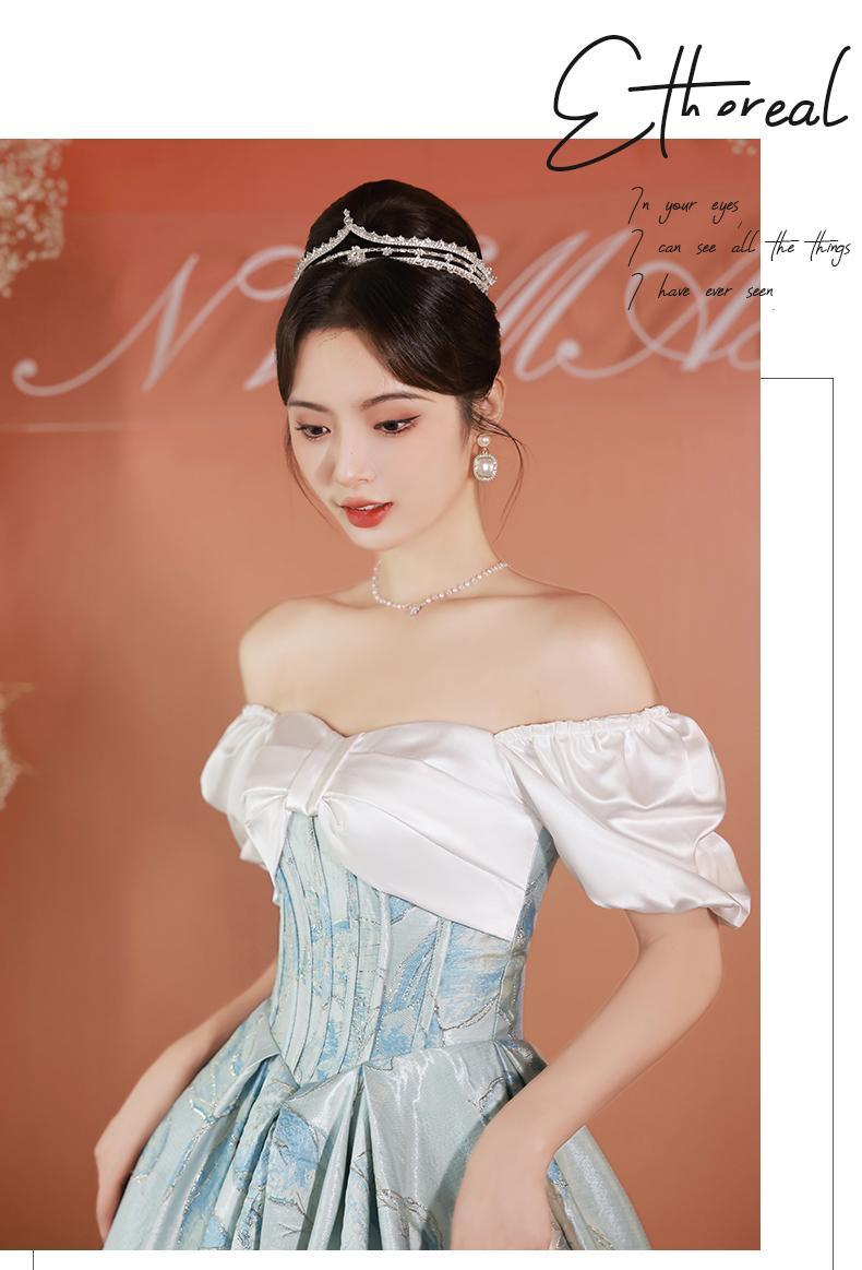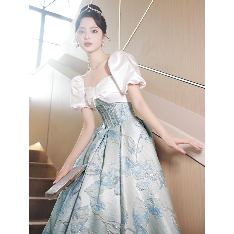 一字肩蓝色晚礼服女高级感连衣裙高端轻奢小众法式成人礼裙子夏季