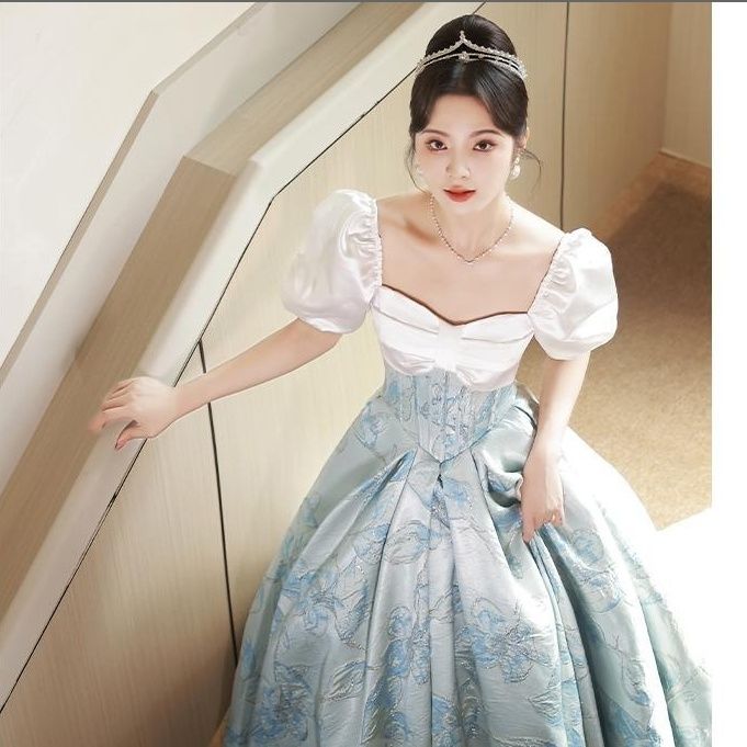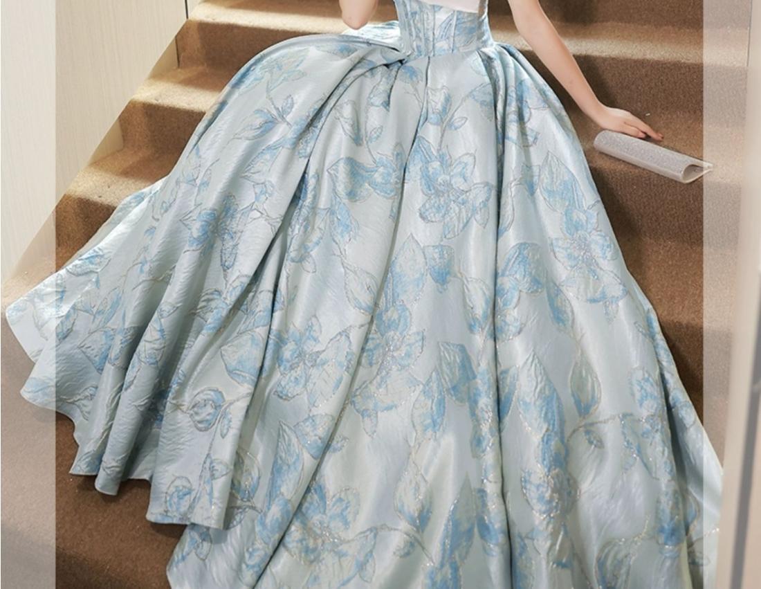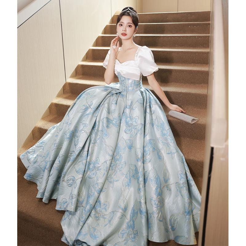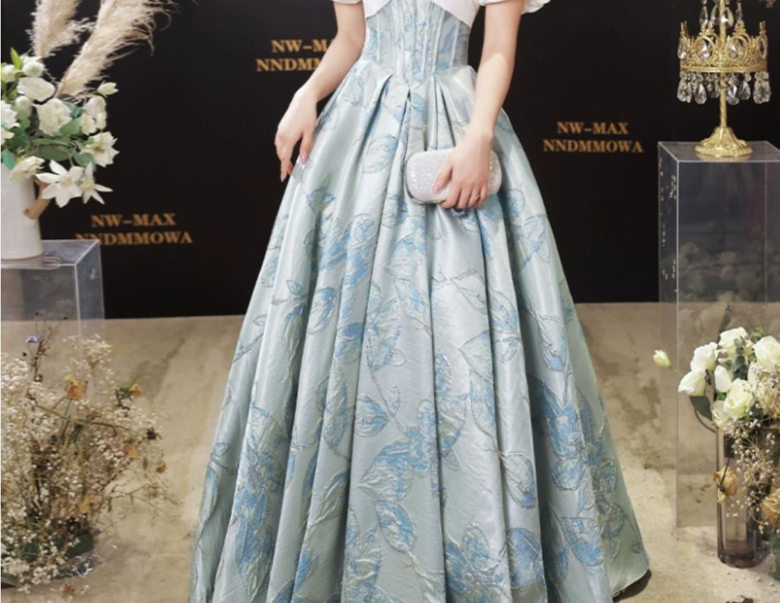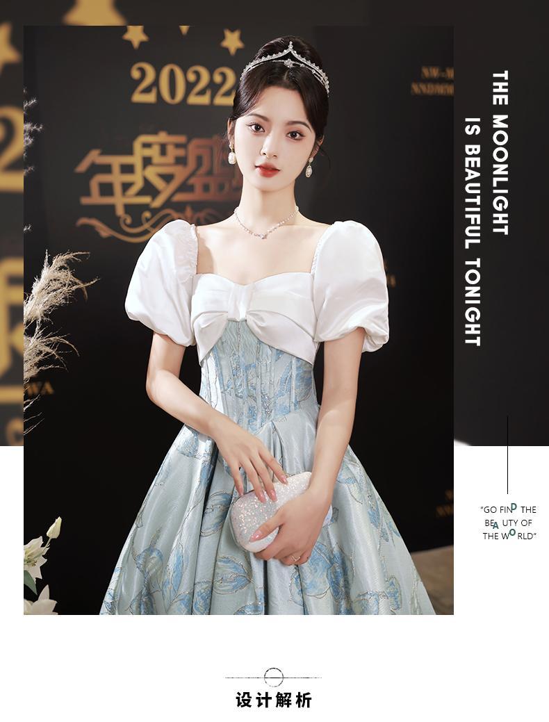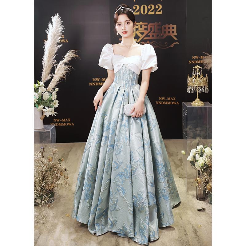 一字肩蓝色晚礼服女高级感连衣裙高端轻奢小众法式成人礼裙子夏季