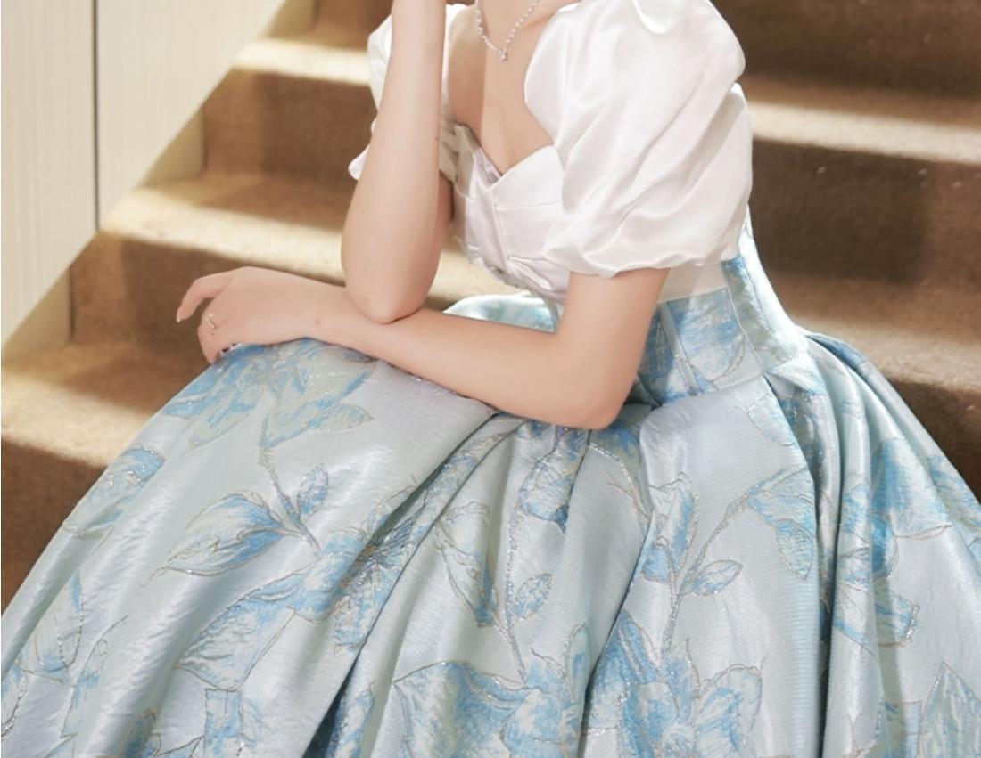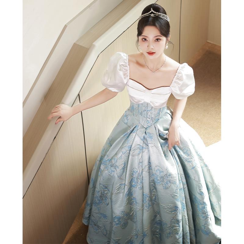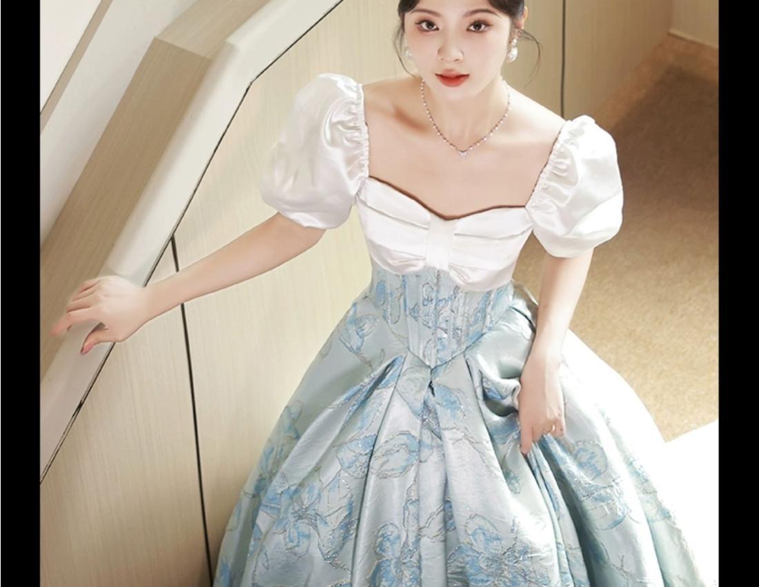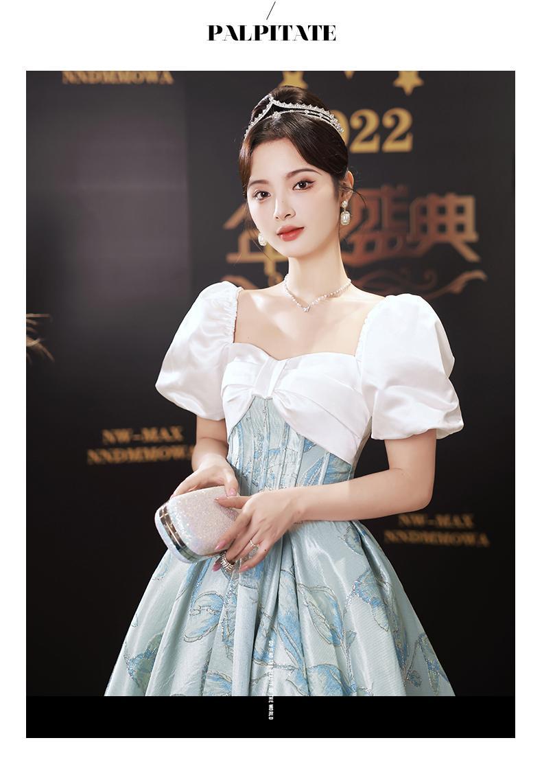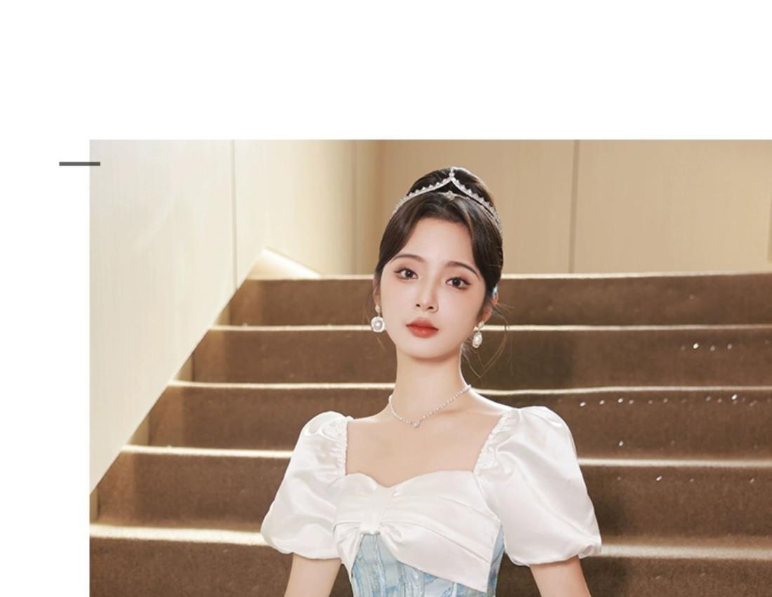 一字肩蓝色晚礼服女高级感连衣裙高端轻奢小众法式成人礼裙子夏季