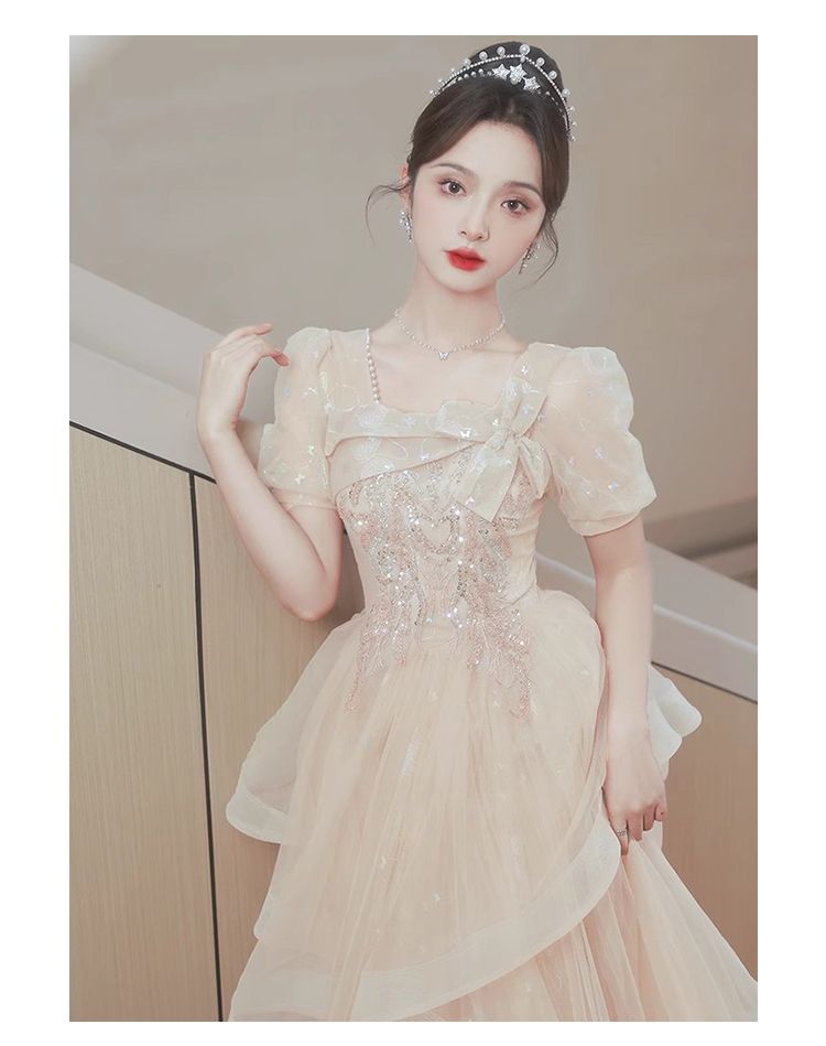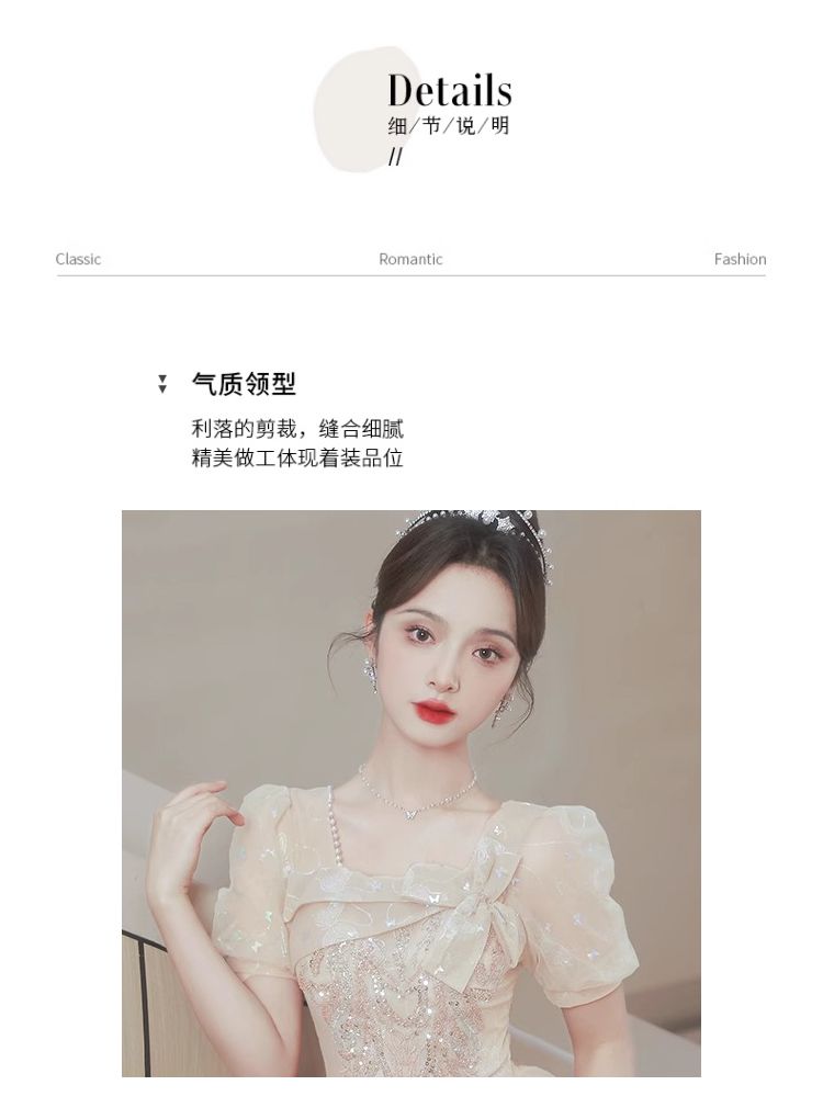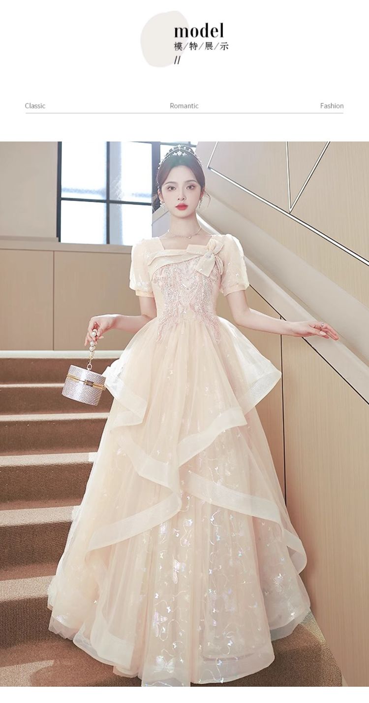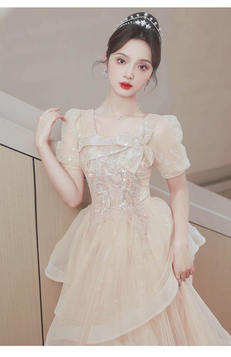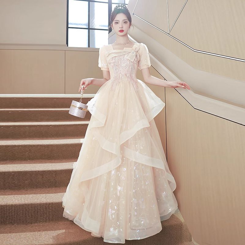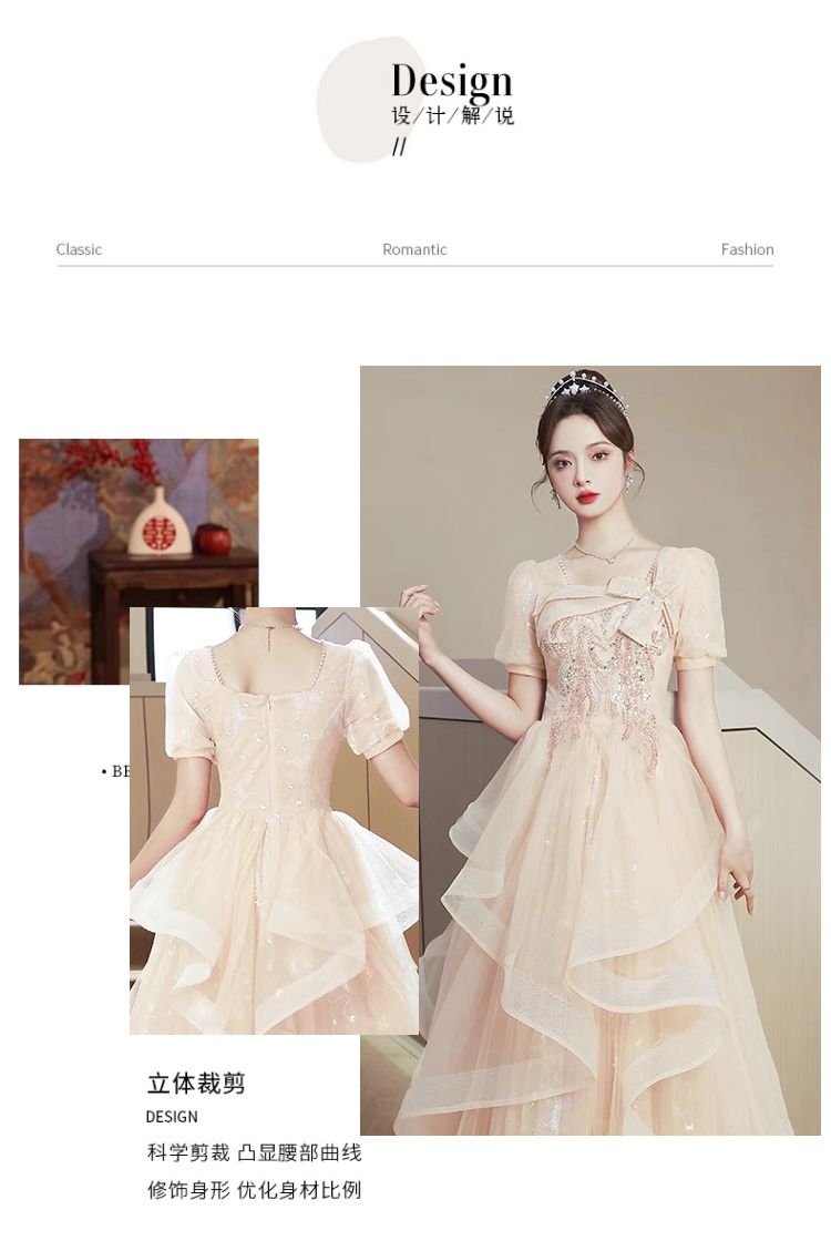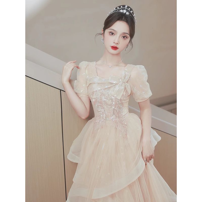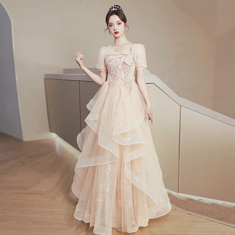 香槟色晚礼服裙女2024新款高级感小众气质毕业典礼礼服日常可穿夏
