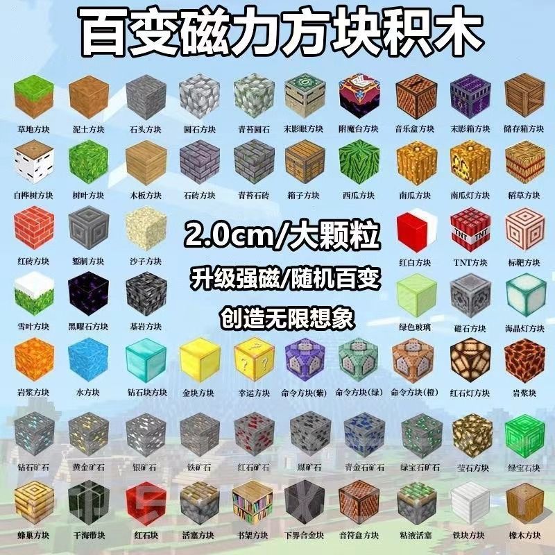 我的世界MC磁力方块积木强磁吸铁石磁铁男孩儿童益智拼装玩具礼物