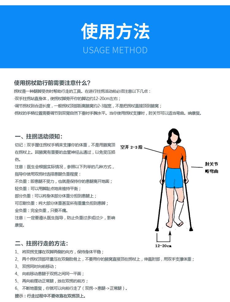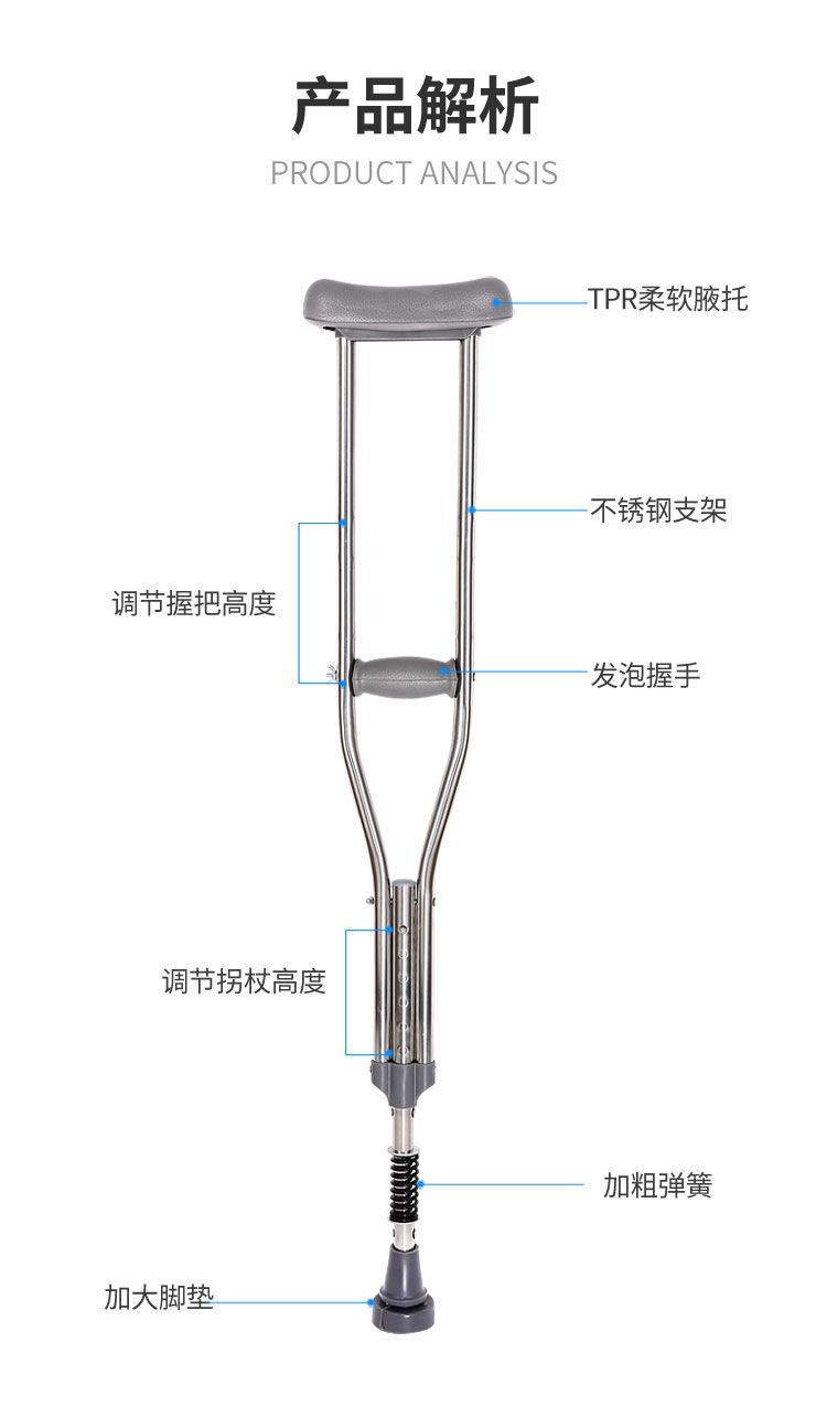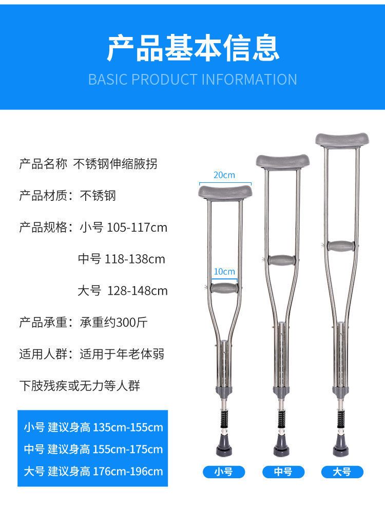 拐杖腋下拐不锈钢双拐防滑残疾人骨折轻便可调高度老人老年人拐扙