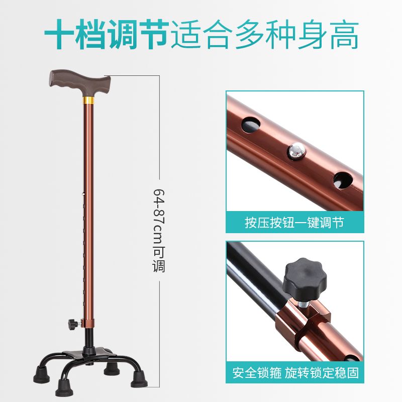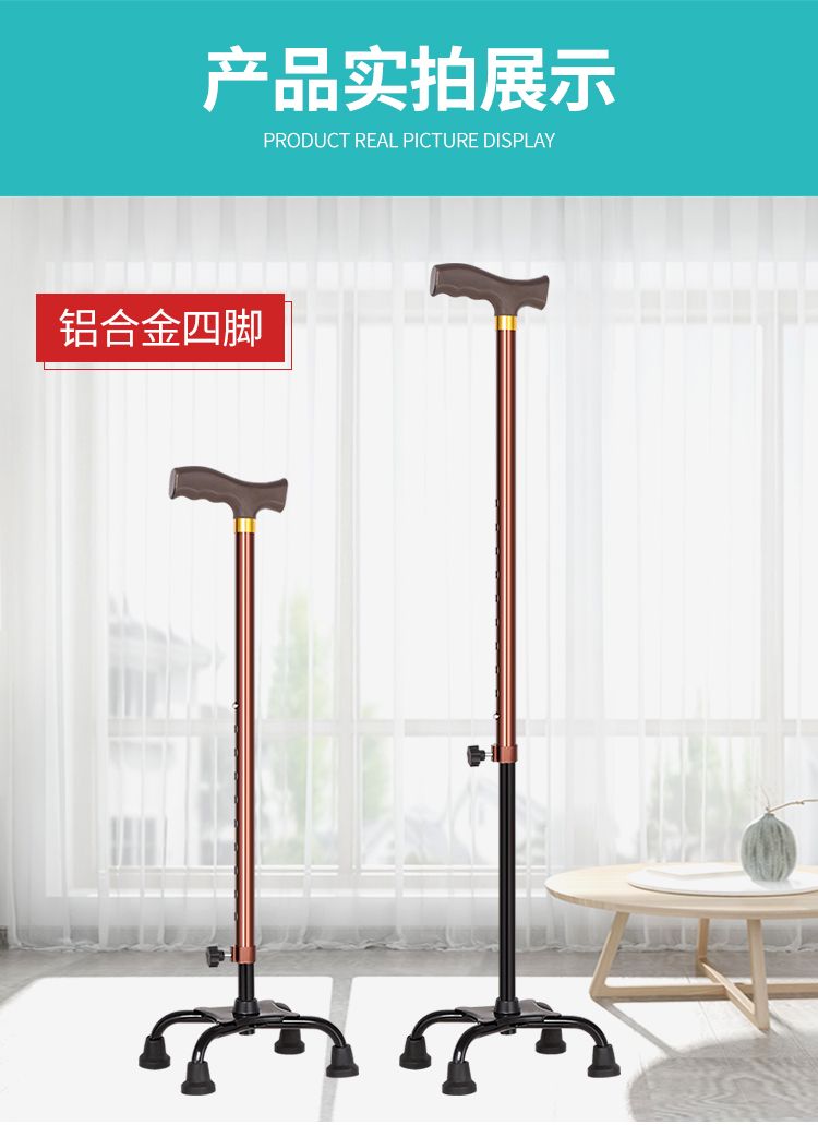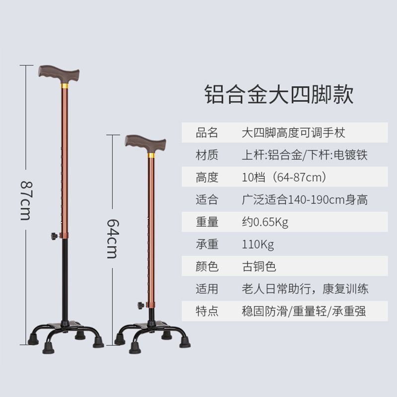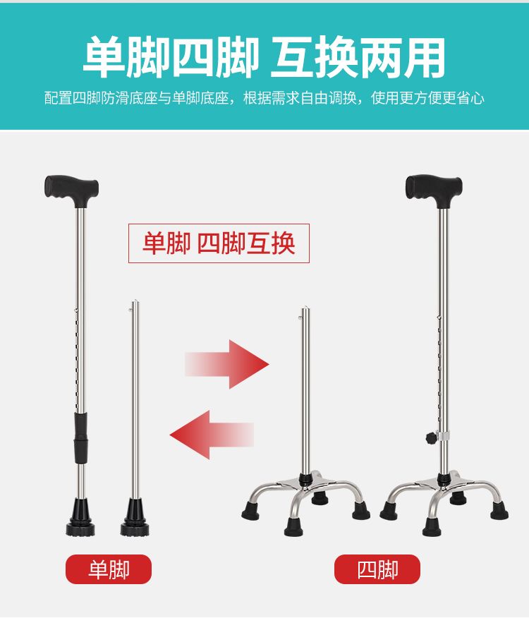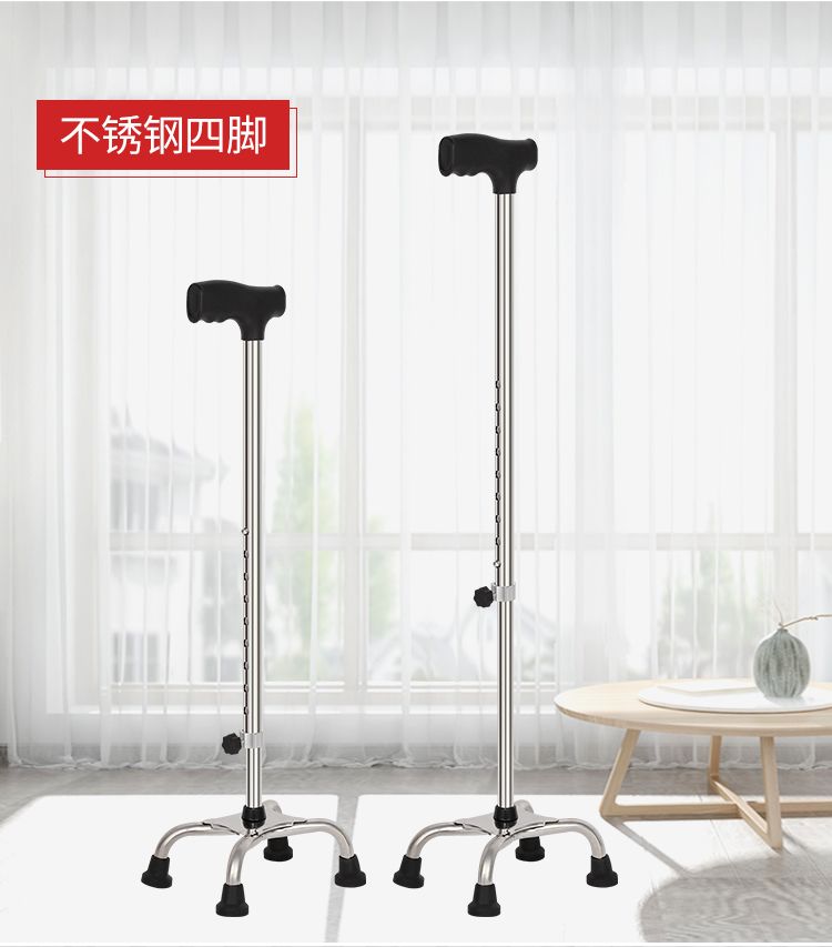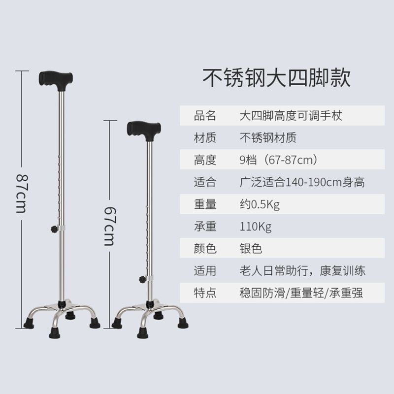 老人拐杖 残疾人四角拐杖不锈钢加厚拐棍老年可调节轻便防滑手杖
