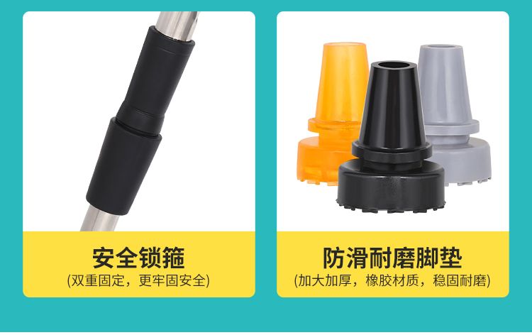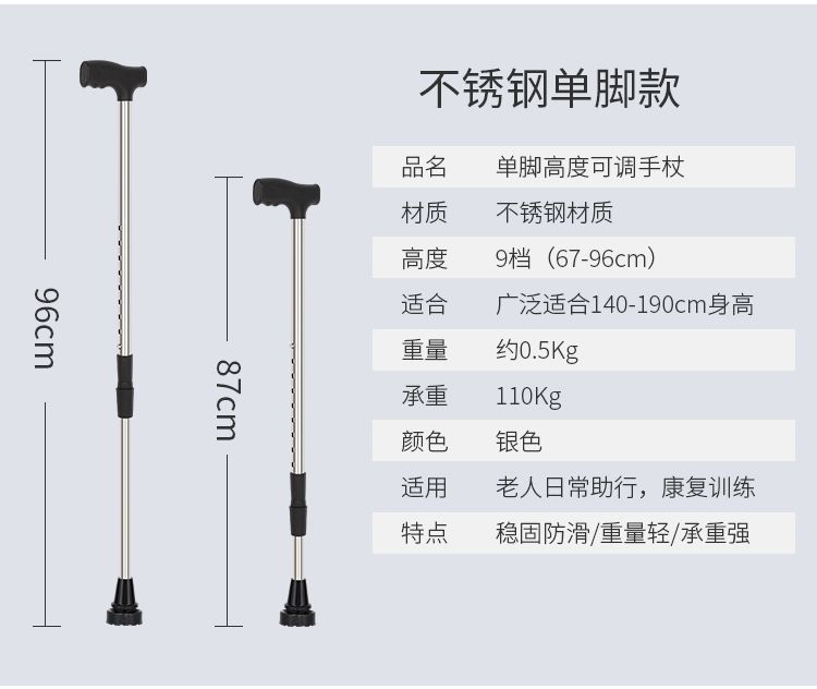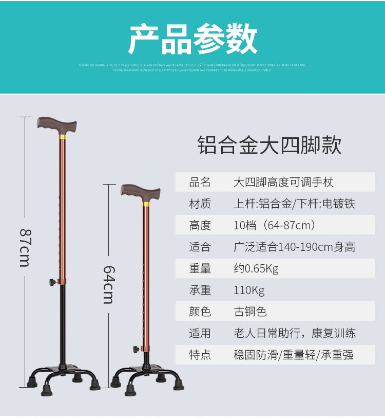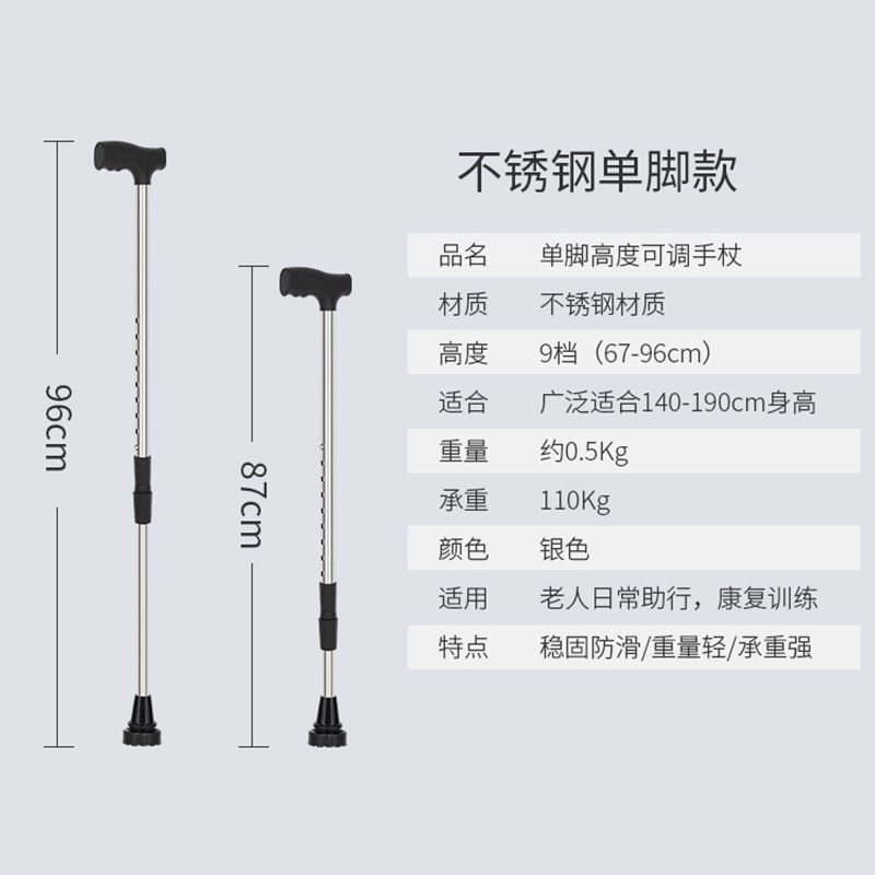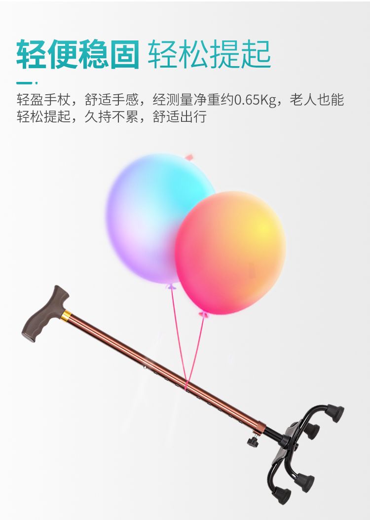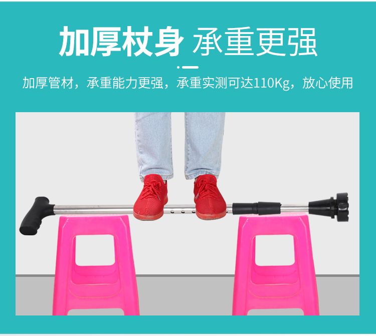 老人拐杖 残疾人四角拐杖不锈钢加厚拐棍老年可调节轻便防滑手杖
