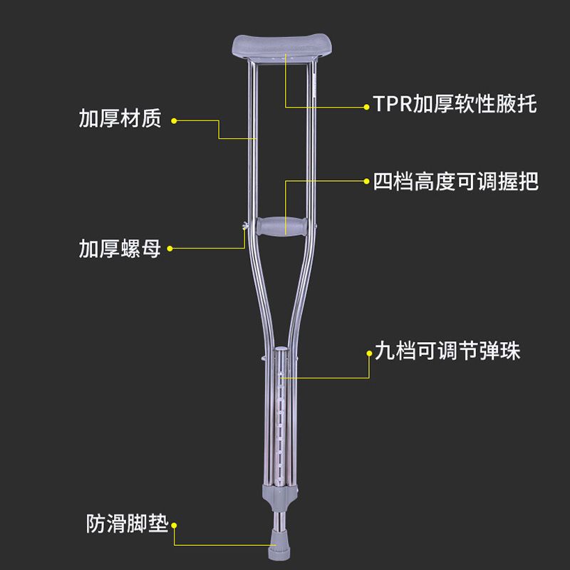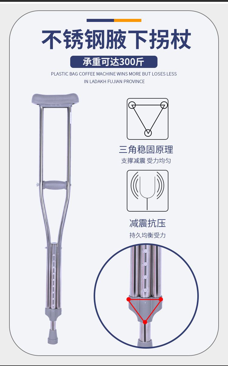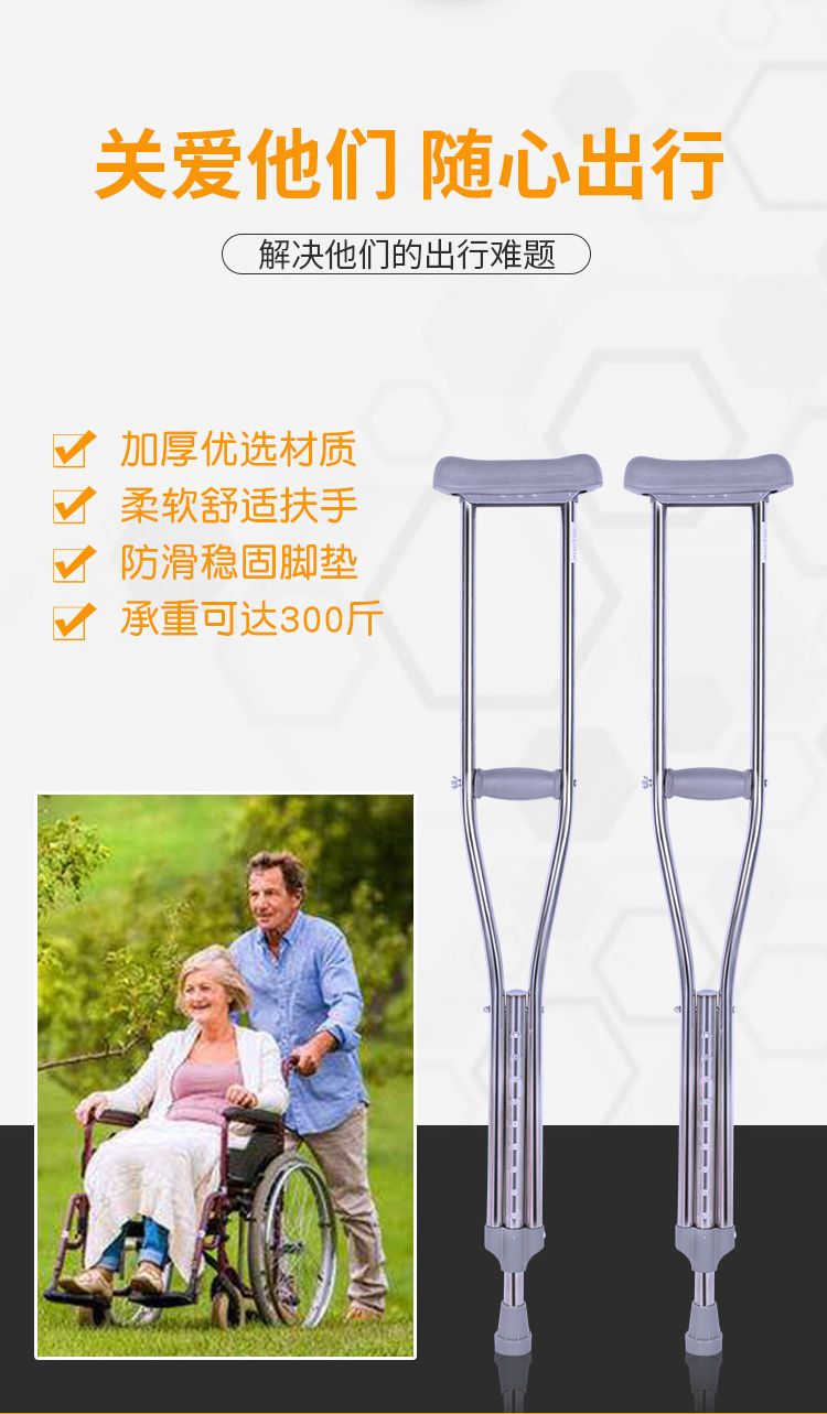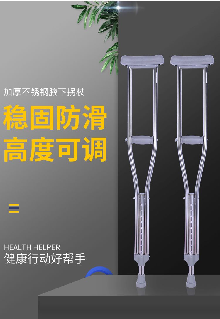 医用拐杖不锈钢拐杖腋下双拐骨折残疾老人拐杖可调节伸缩加厚拐杖