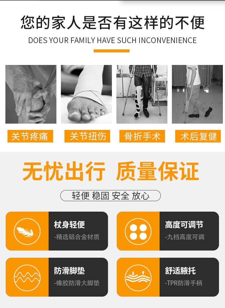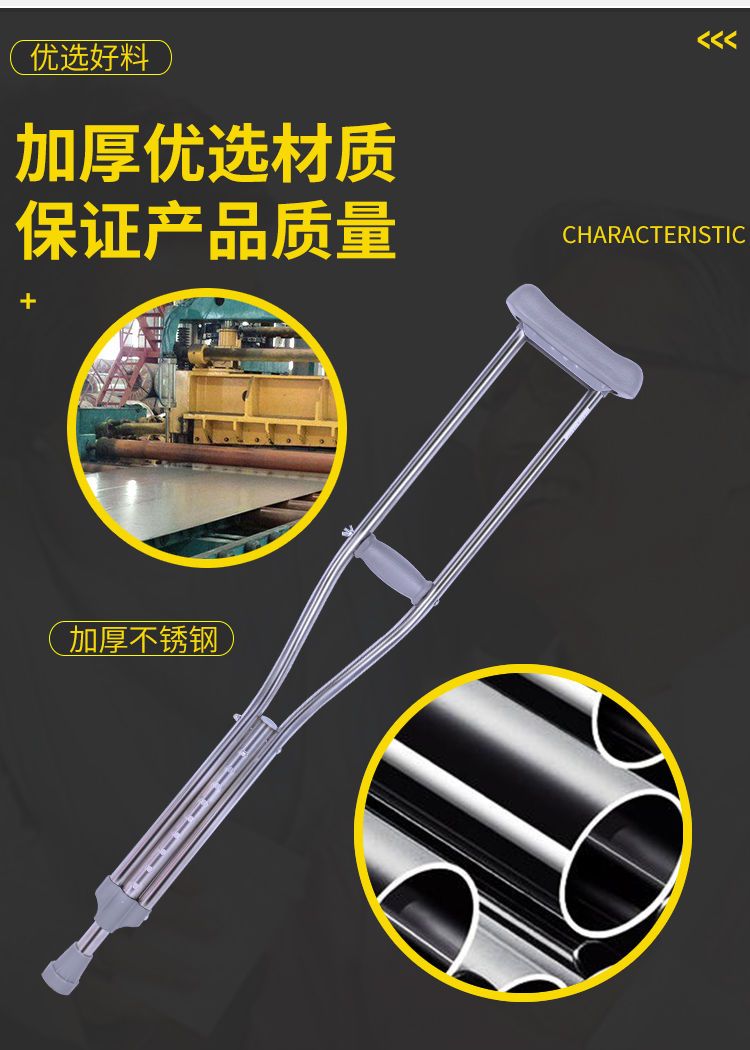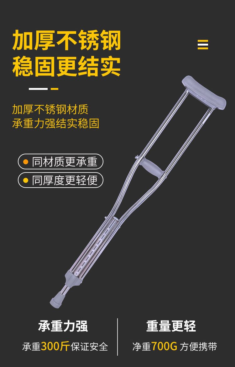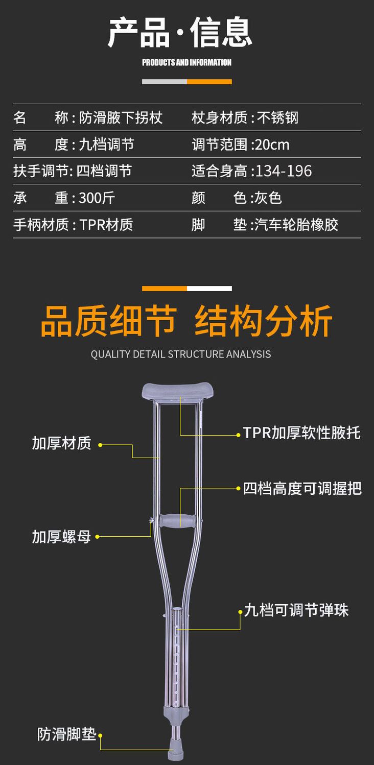 医用拐杖不锈钢拐杖腋下双拐骨折残疾老人拐杖可调节伸缩加厚拐杖