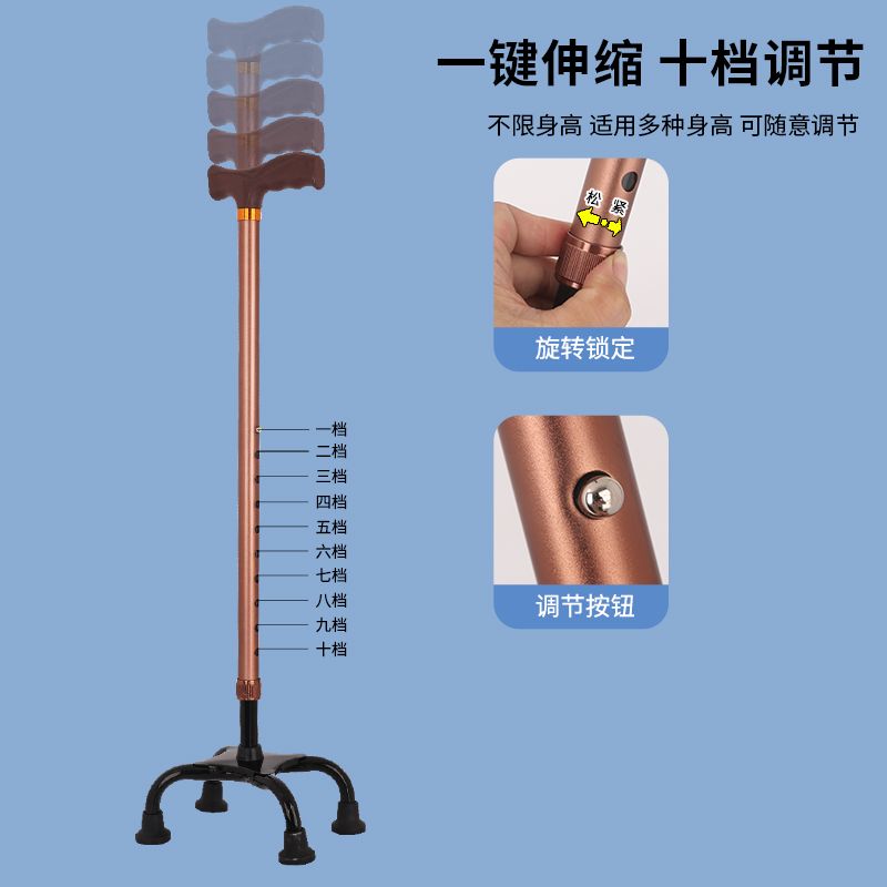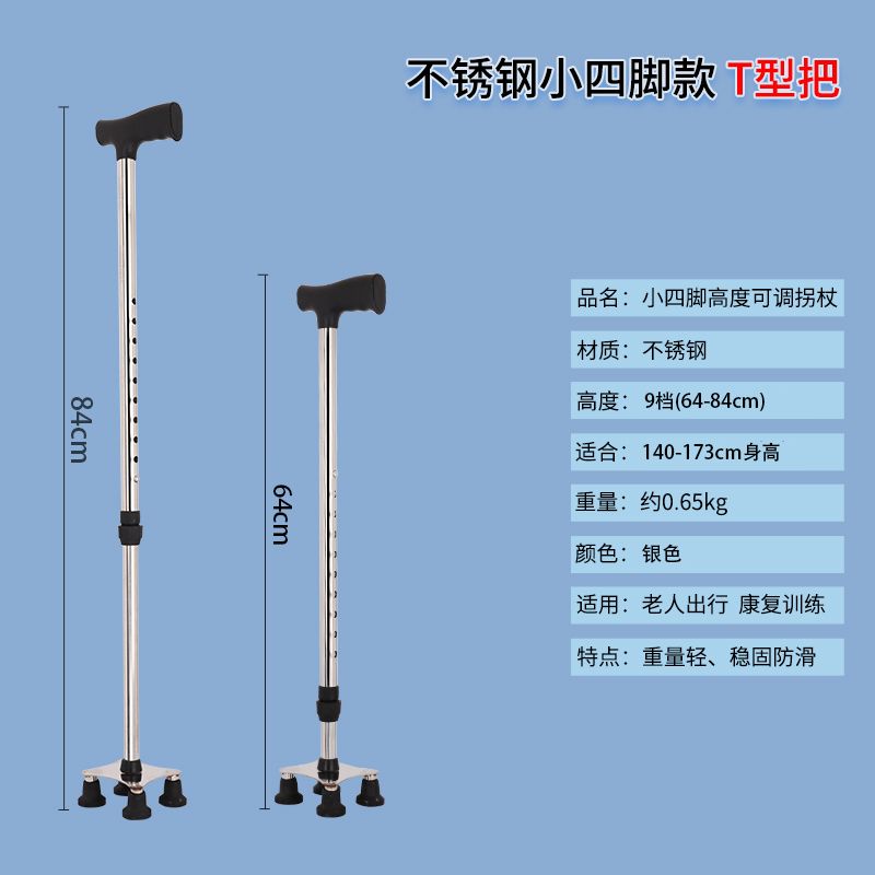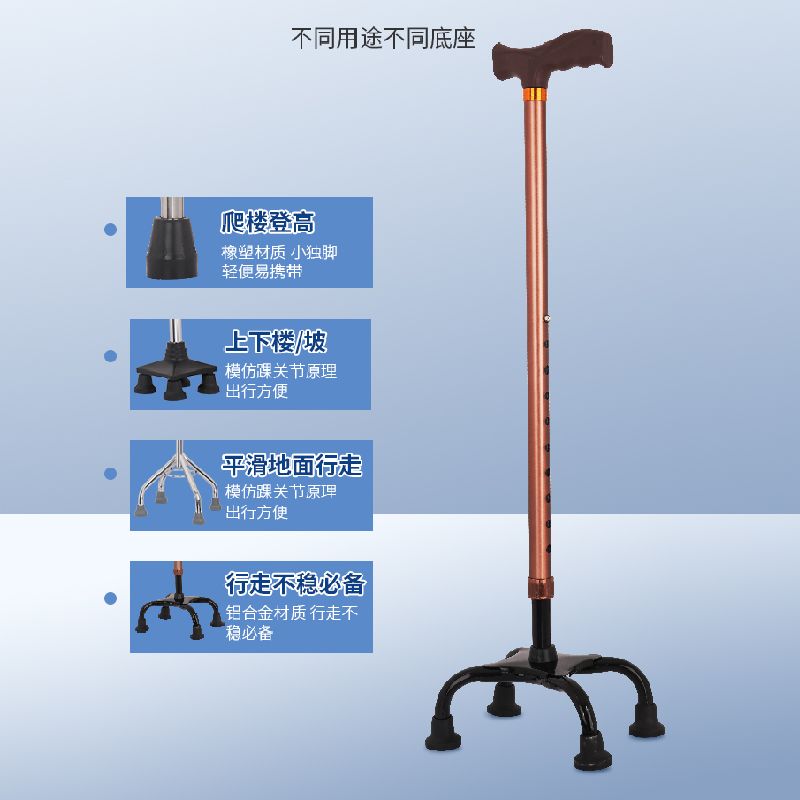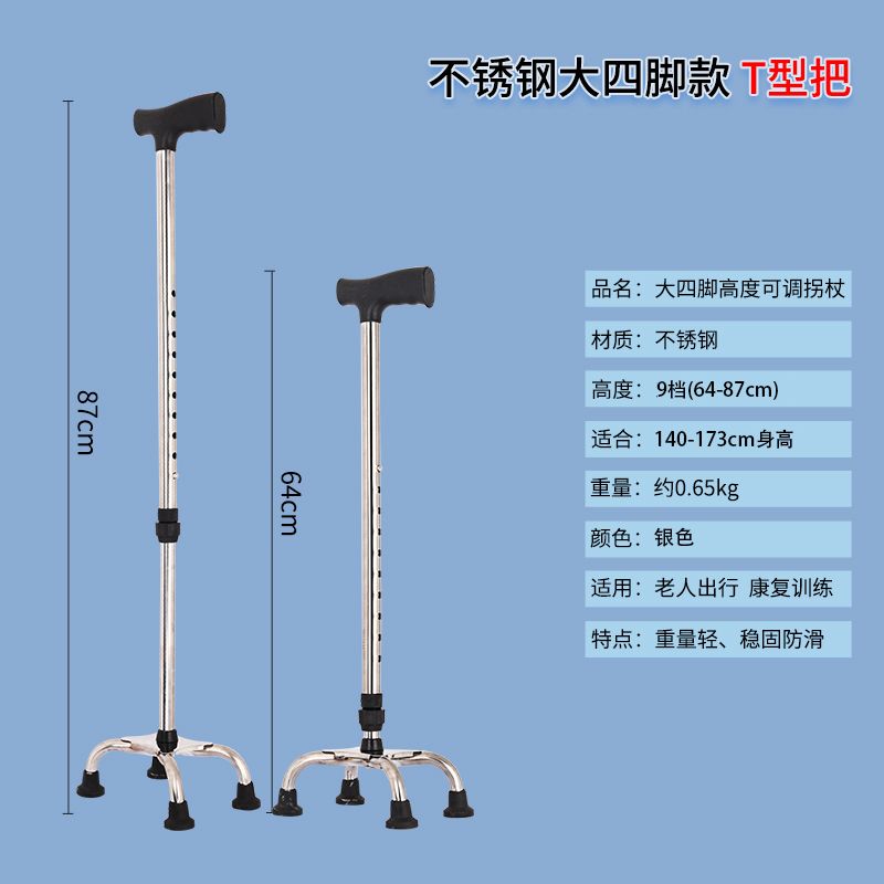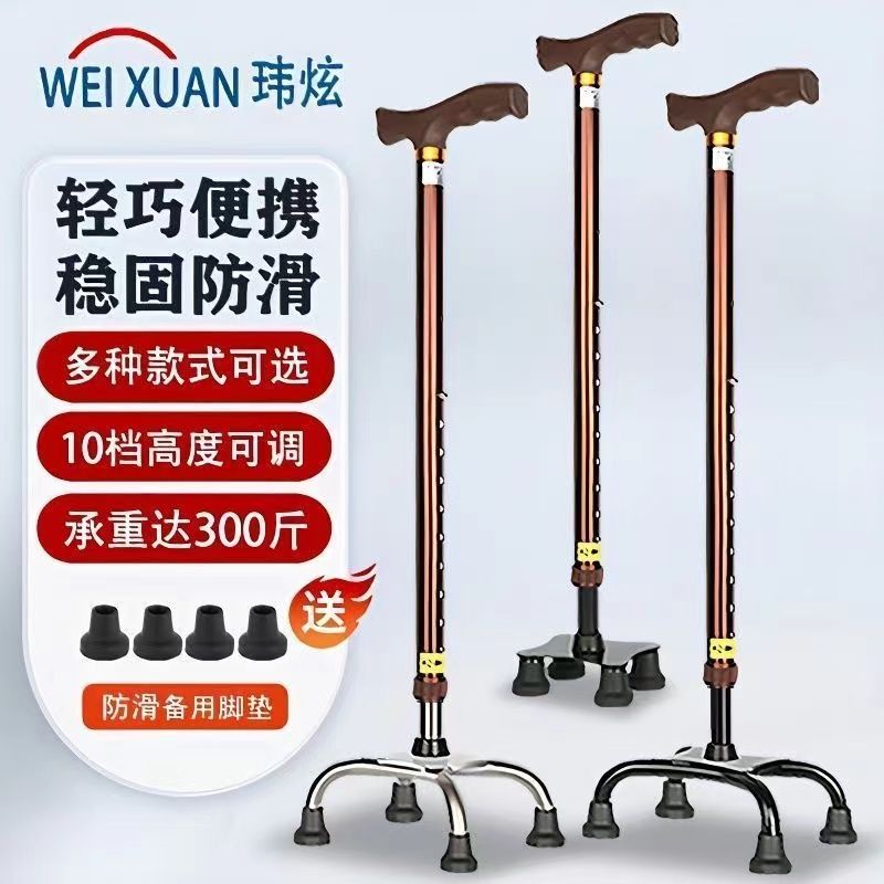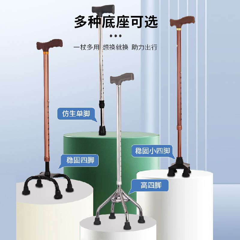 老年人拐杖骨折年轻人残疾老人四脚柺扙防滑轻便拐棍可调节助行器