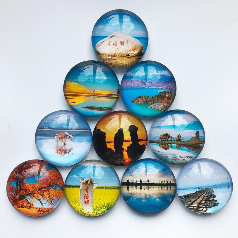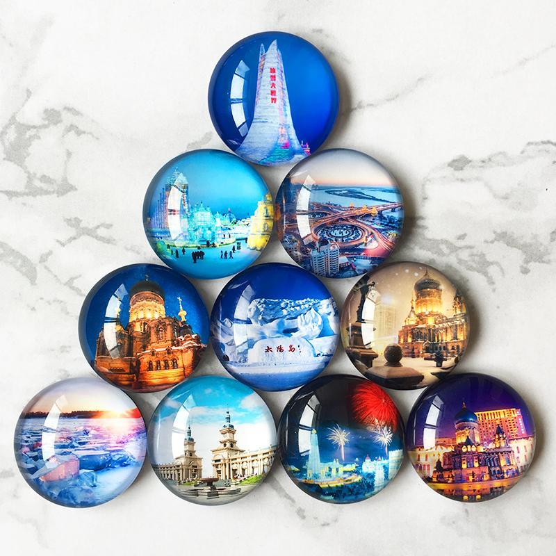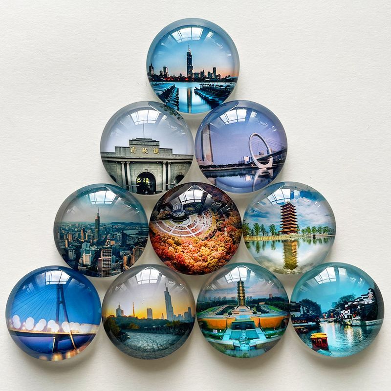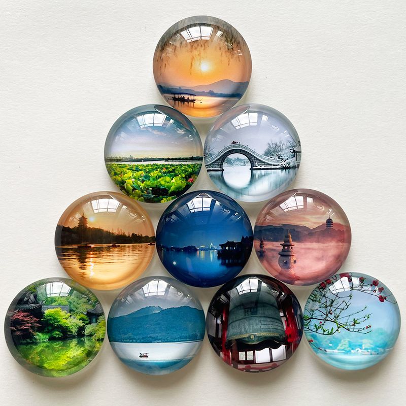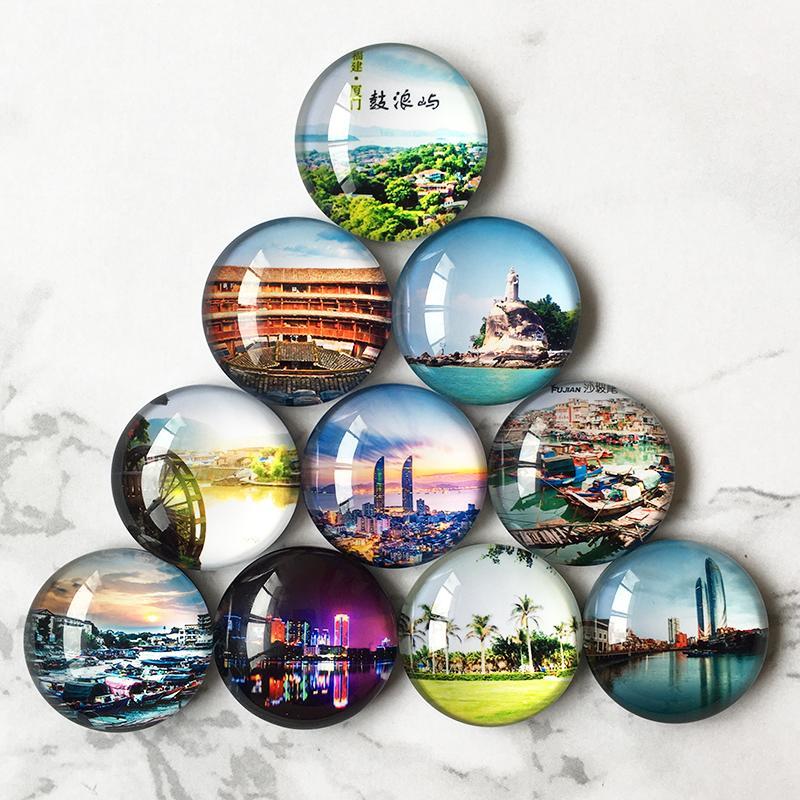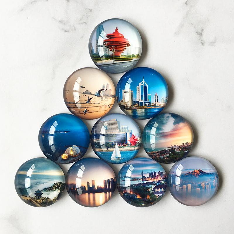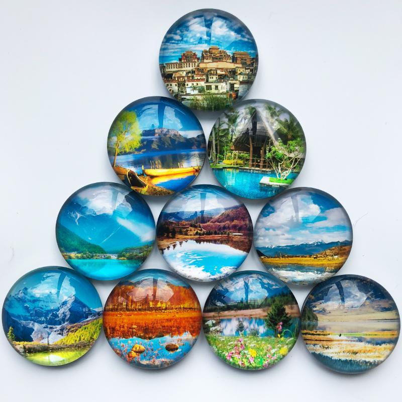 一套10枚创意水晶玻璃冰箱贴小清新磁贴磁力贴装饰贴diy定制风景