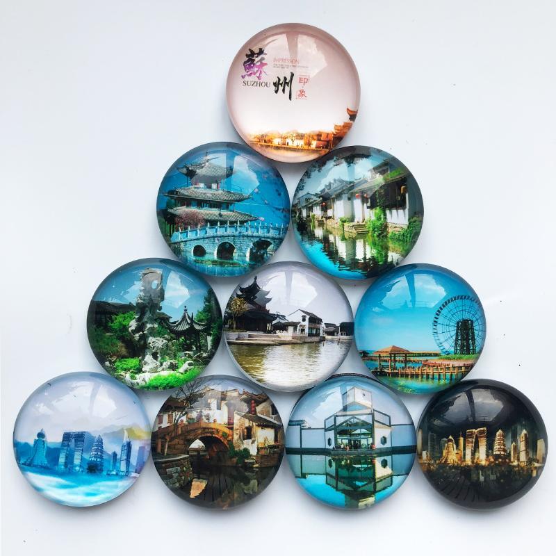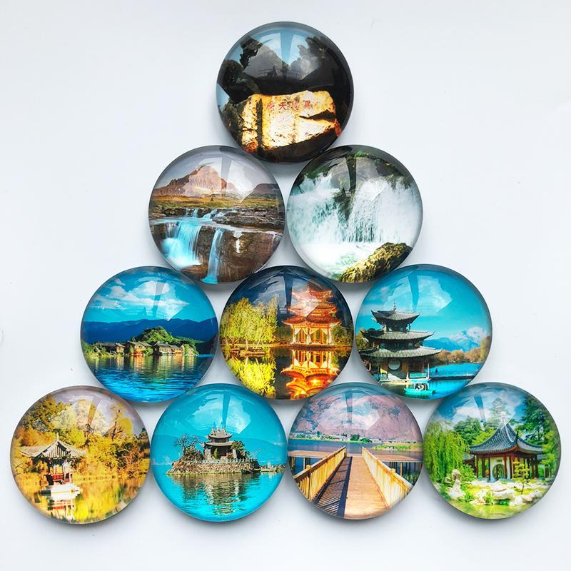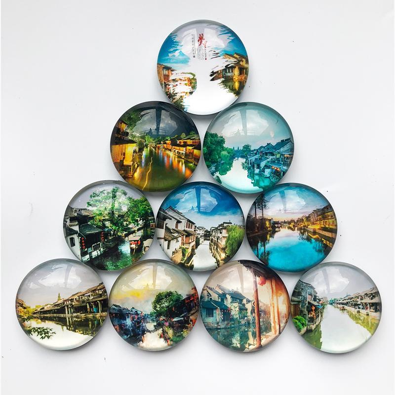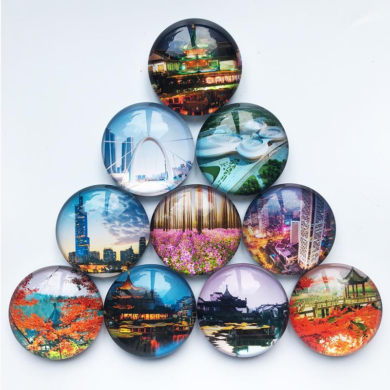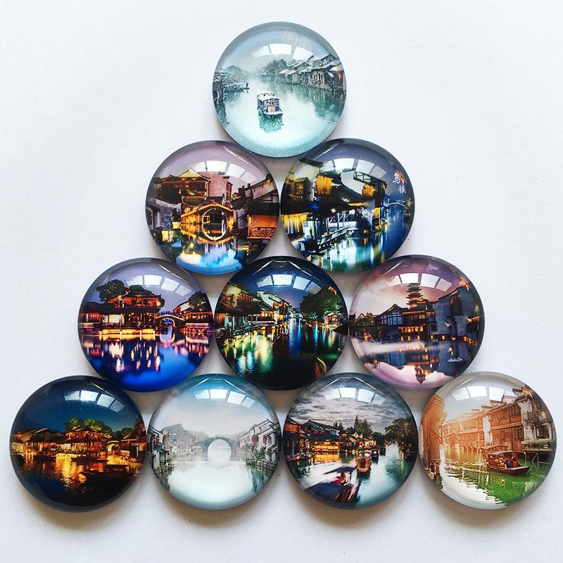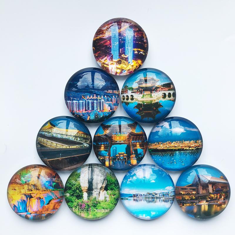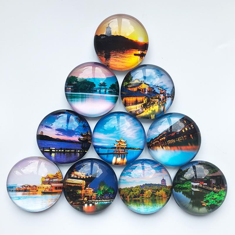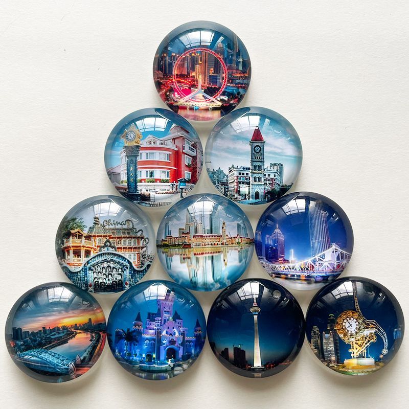 一套10枚创意水晶玻璃冰箱贴小清新磁贴磁力贴装饰贴diy定制风景