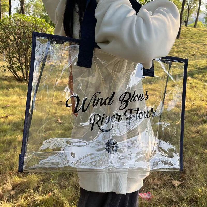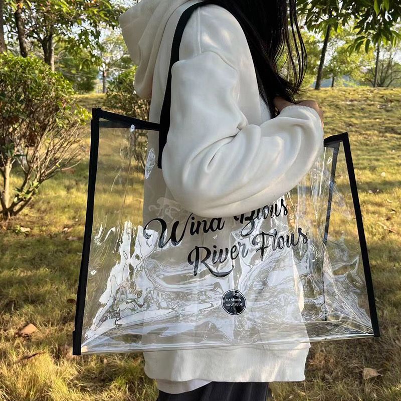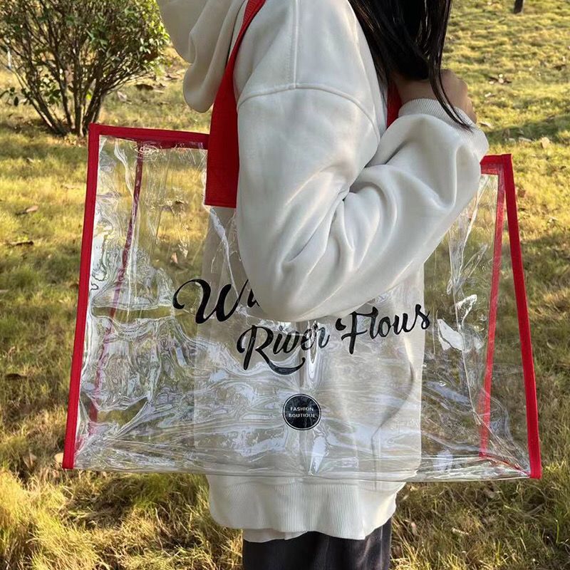 韩国果冻包大容量网红沙滩包透明防水手提干湿分离游泳装备收纳包