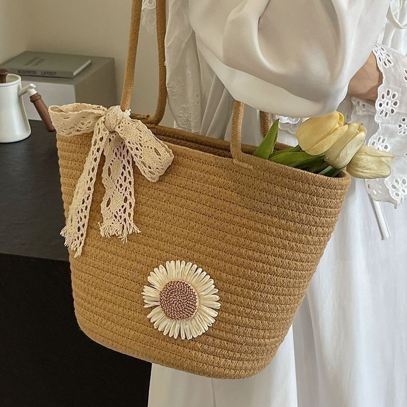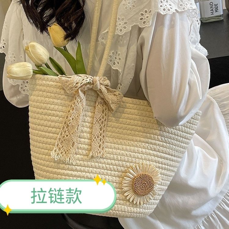 手工时尚编织新款包棉绳度假托特大容量单肩通勤沙滩夏季编织