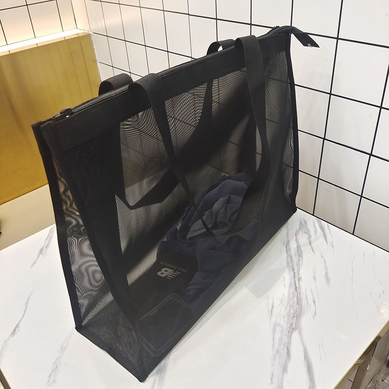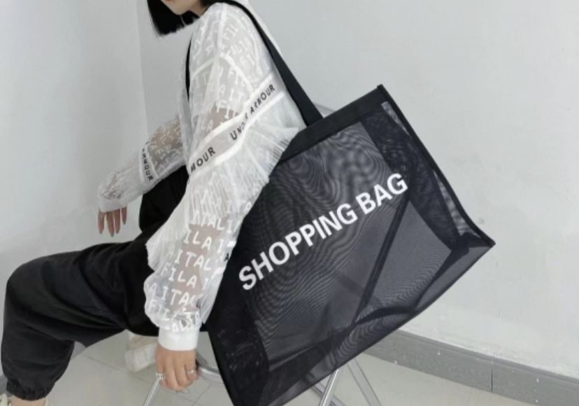 网纱购物袋大容量尼龙透明商场沙滩健身瑜伽网布单肩手提沙滩网格